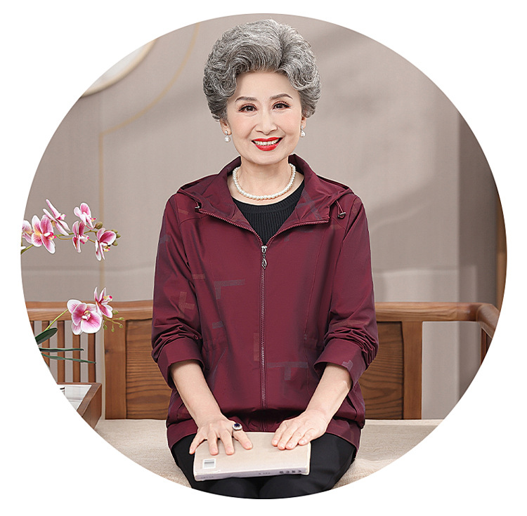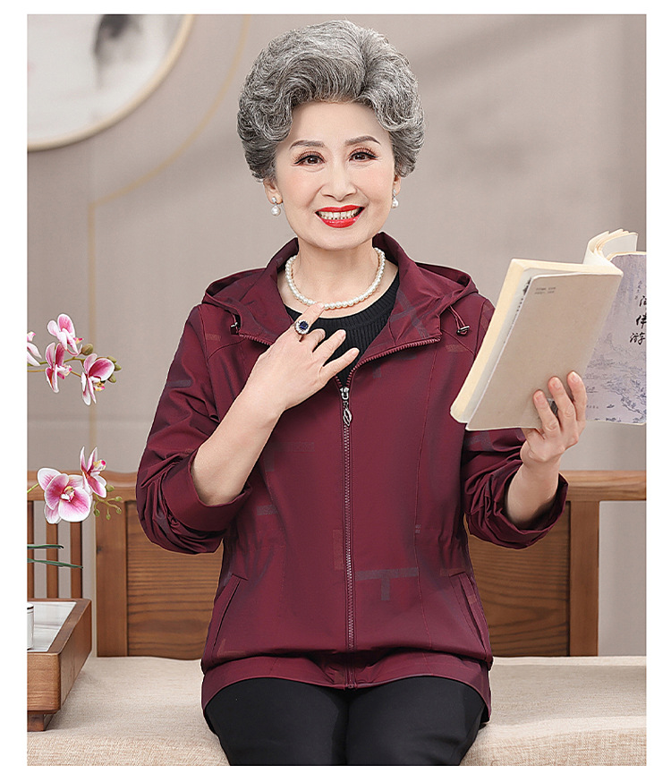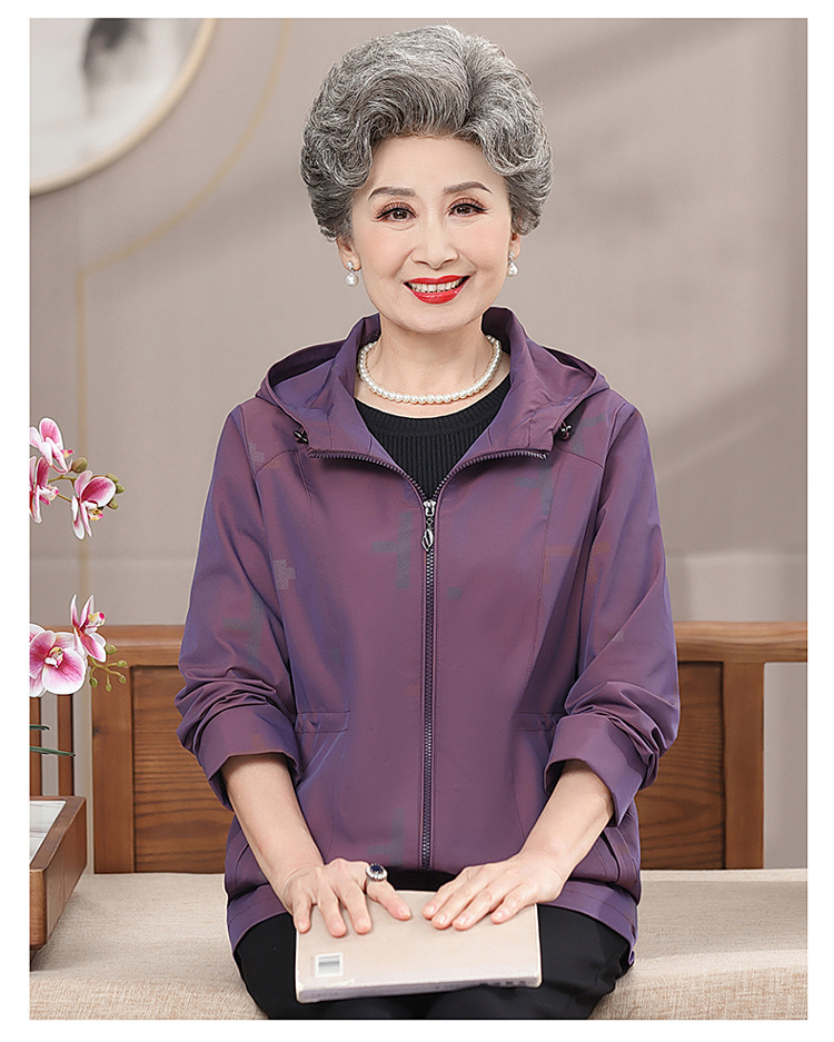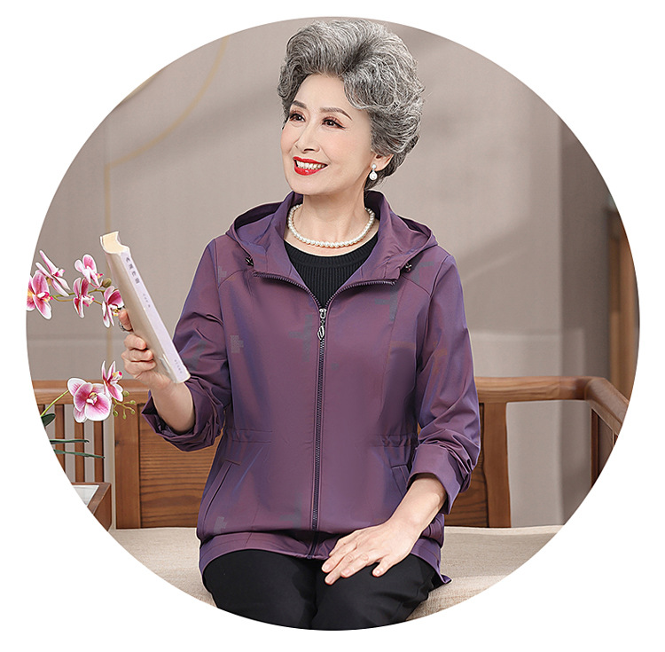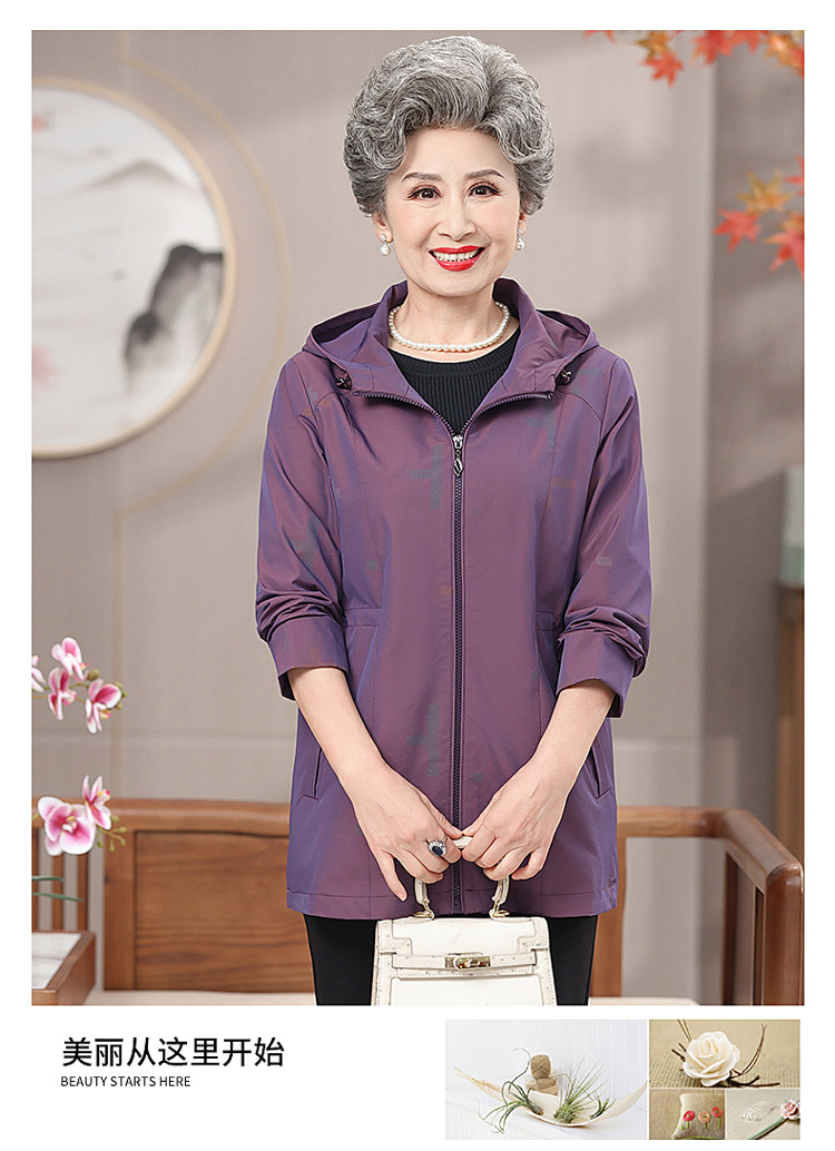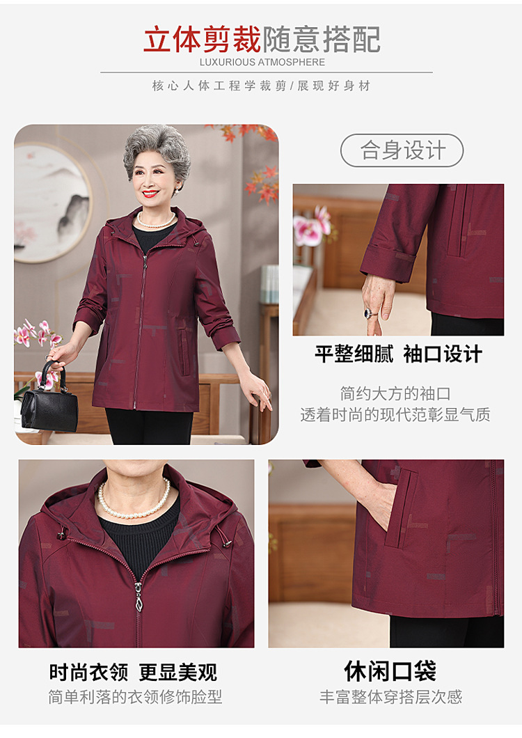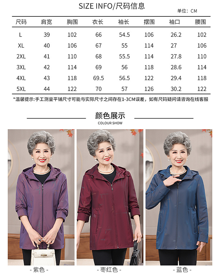 2024 봄 새로운 중년 및 노인 엄마 트렌치 코트 후드 느슨한 캐주얼 할머니 플러스 사이즈 재킷 탑