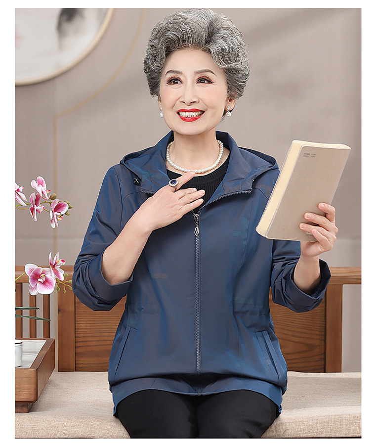 2025 봄 신상 중년 및 노년 여성용 윈드브레이커 후드 루즈핏 캐주얼 할머니용 대형 재킷 상의스토어 가기