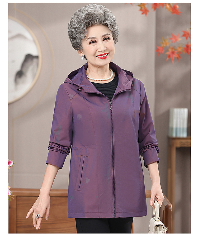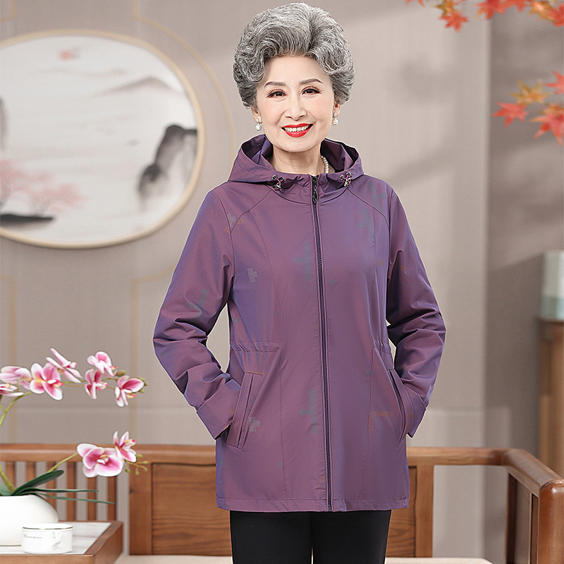 2025 봄 신상 중년 및 노년 여성용 윈드브레이커 후드 루즈핏 캐주얼 할머니용 대형 재킷 상의