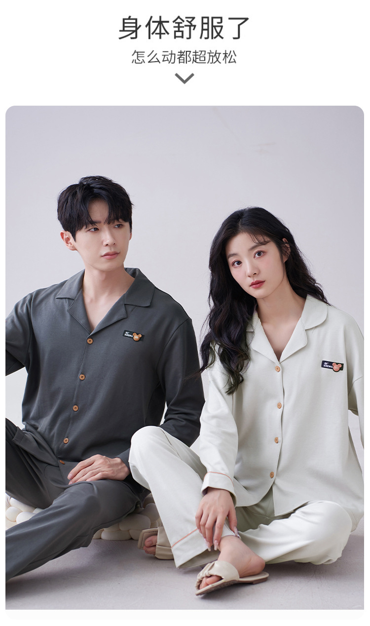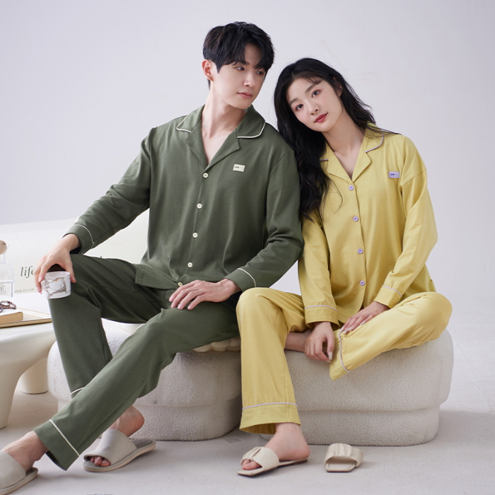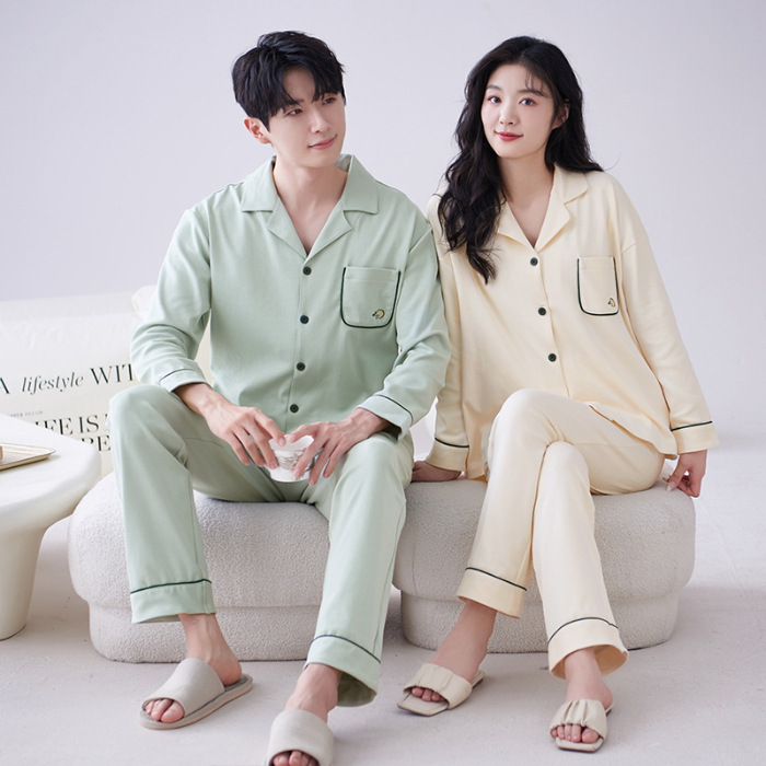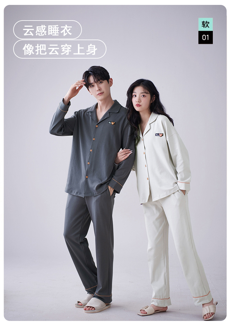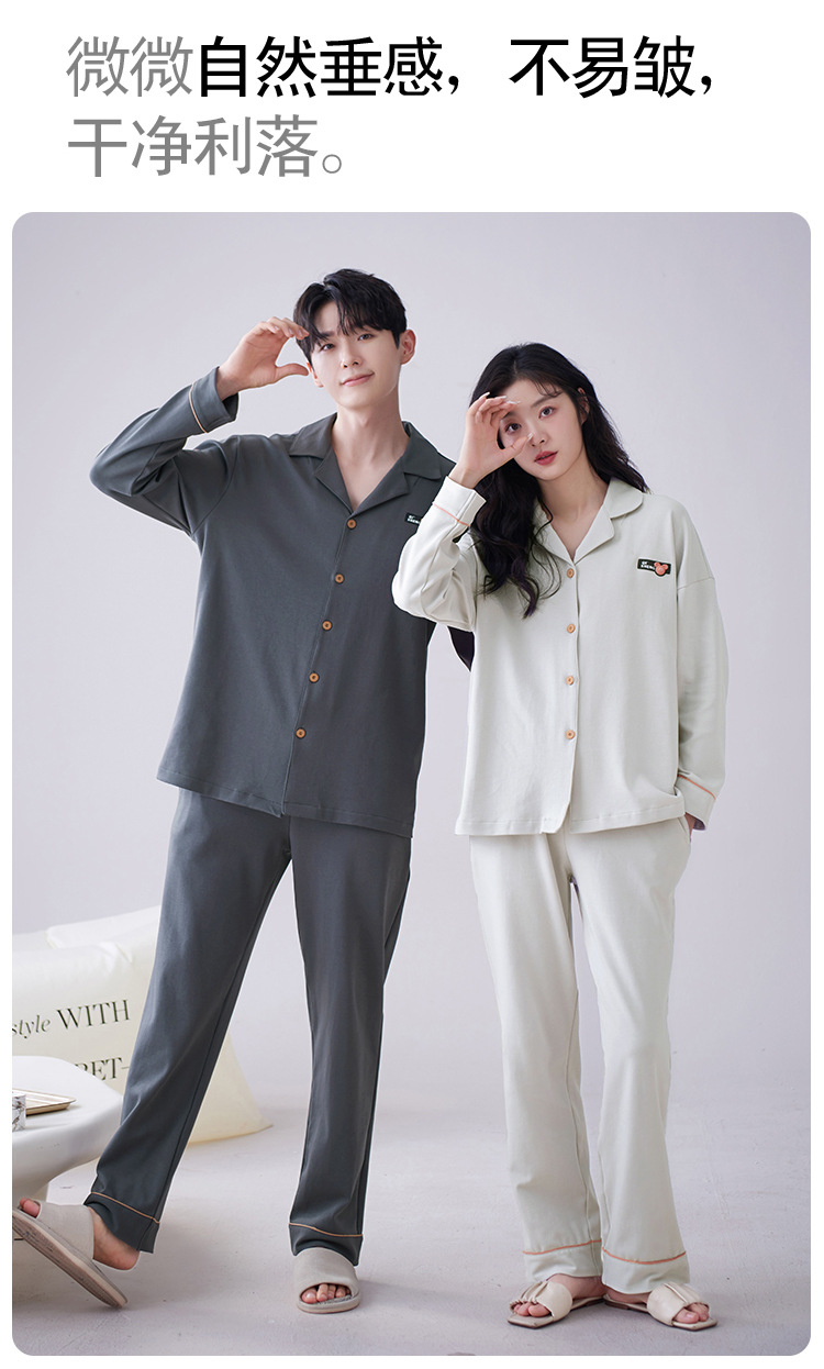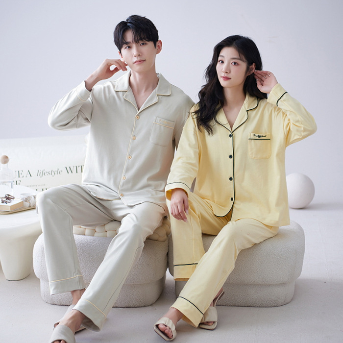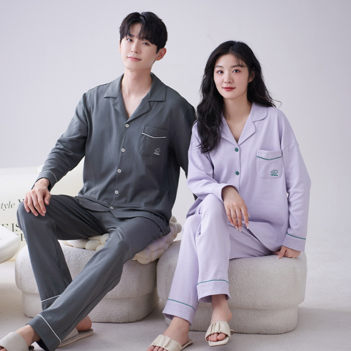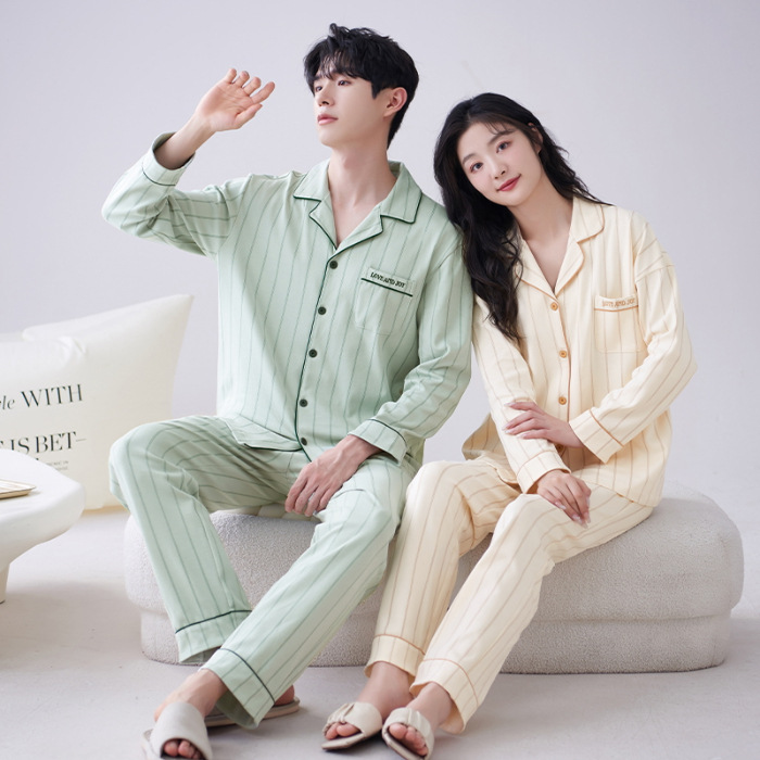 순수 코튼 커플 잠옷 2024 봄 새 7A 항균 면 긴 소매 남성용 홈 클래식 카디건 두 조각