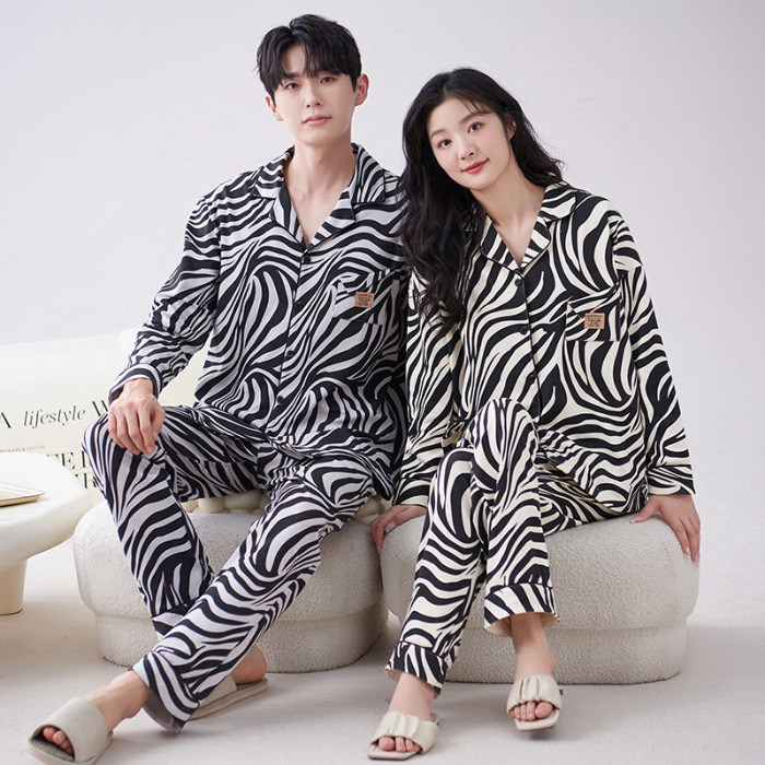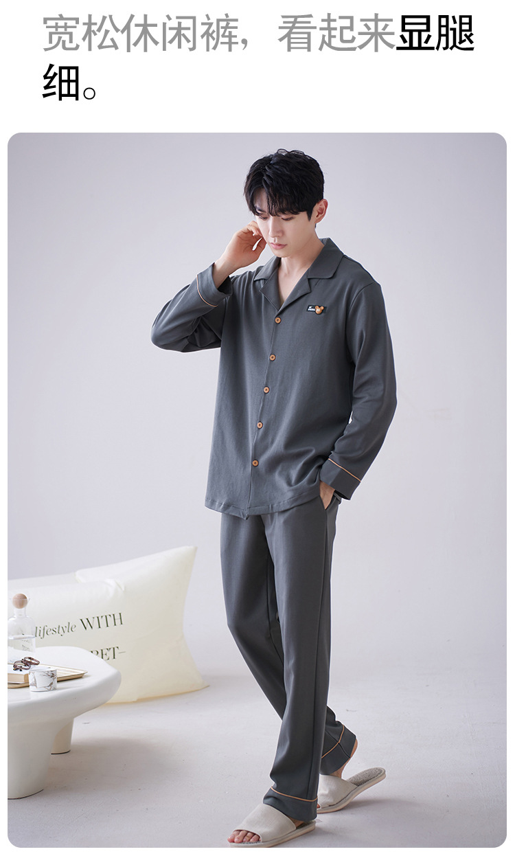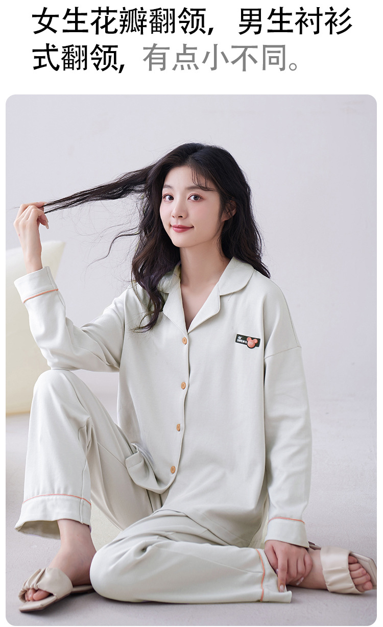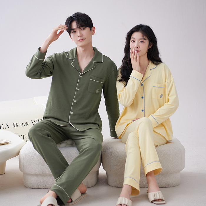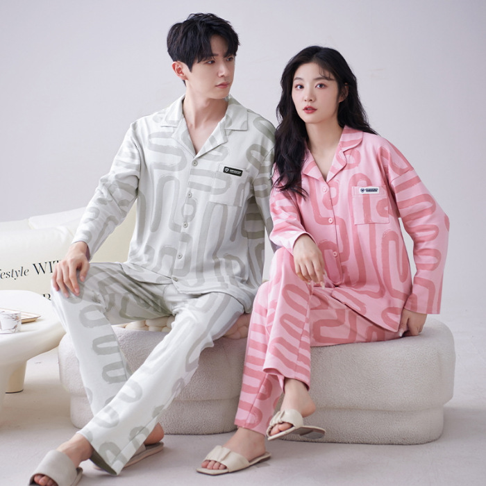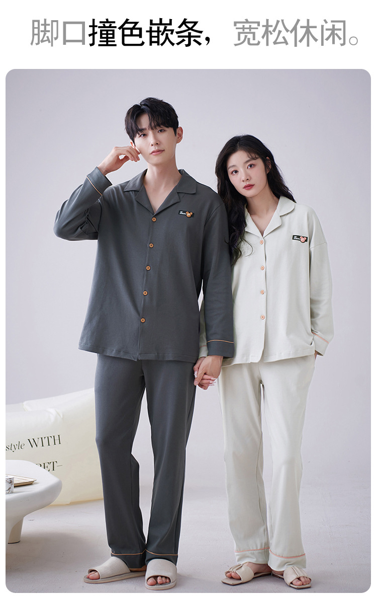 순수 코튼 커플 잠옷 2024 봄 새 7A 항균 면 긴 소매 남성용 홈 클래식 카디건 두 조각