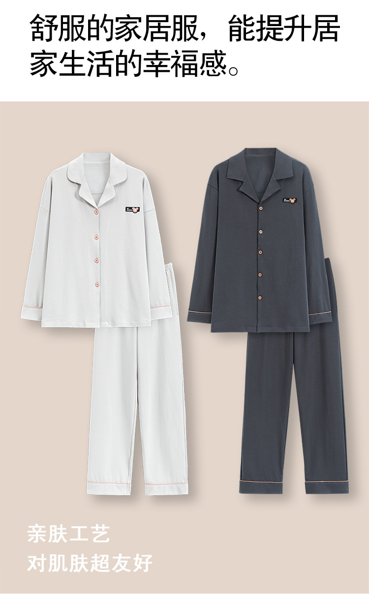 순수 코튼 커플 잠옷 2024 봄 새 7A 항균 면 긴 소매 남성용 홈 클래식 카디건 두 조각스토어 가기