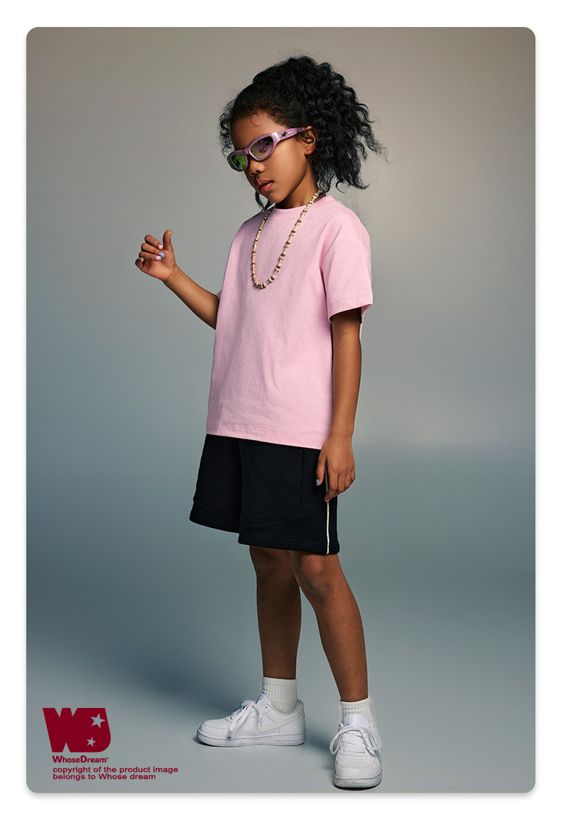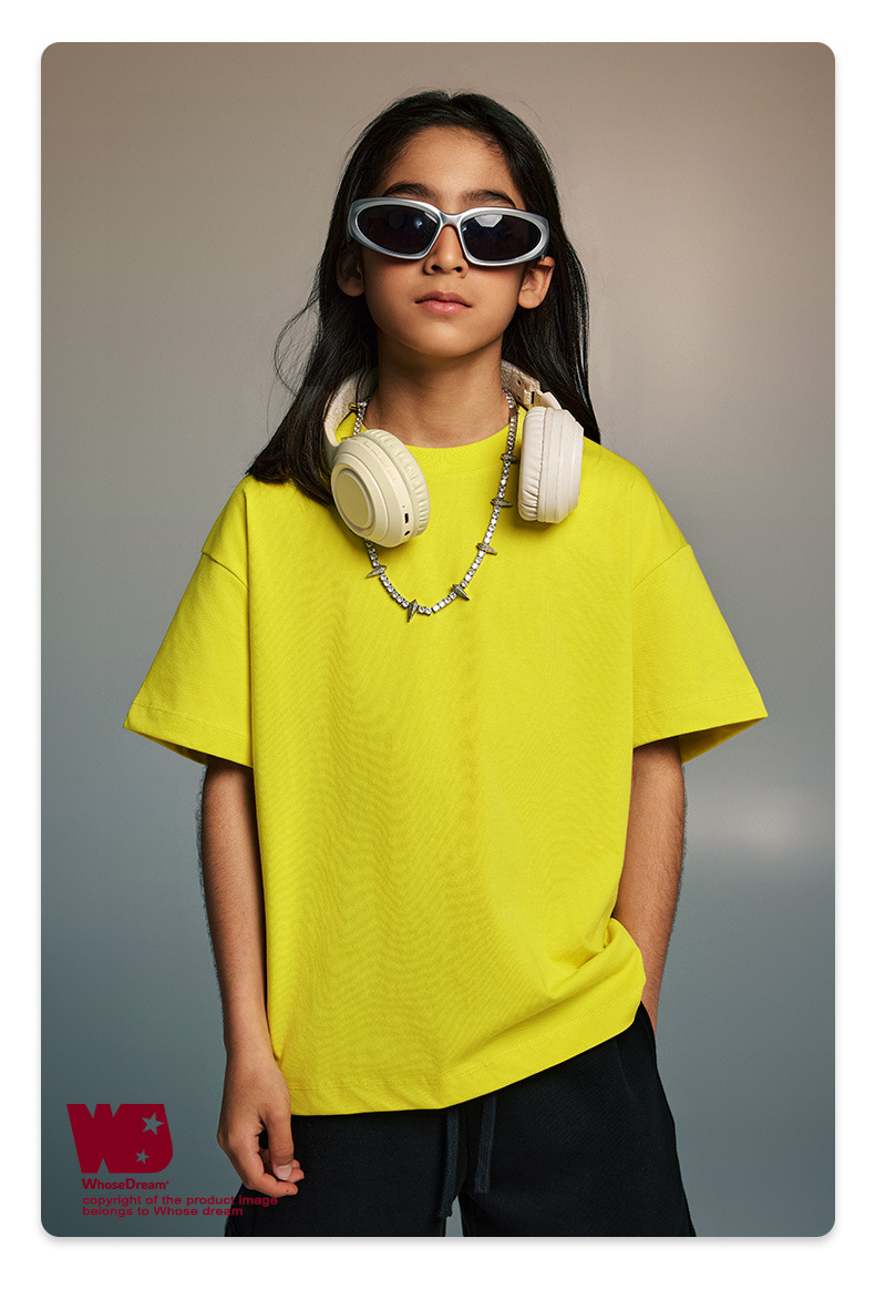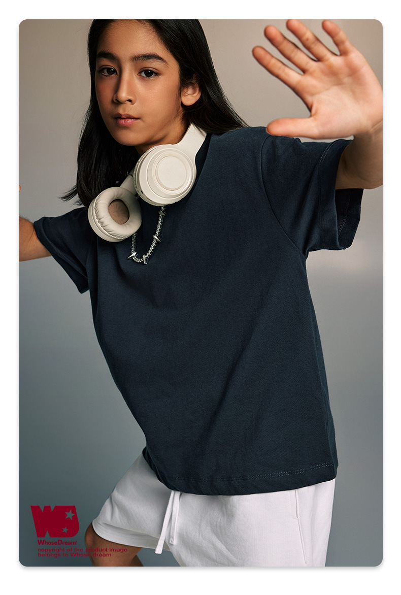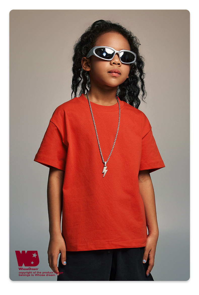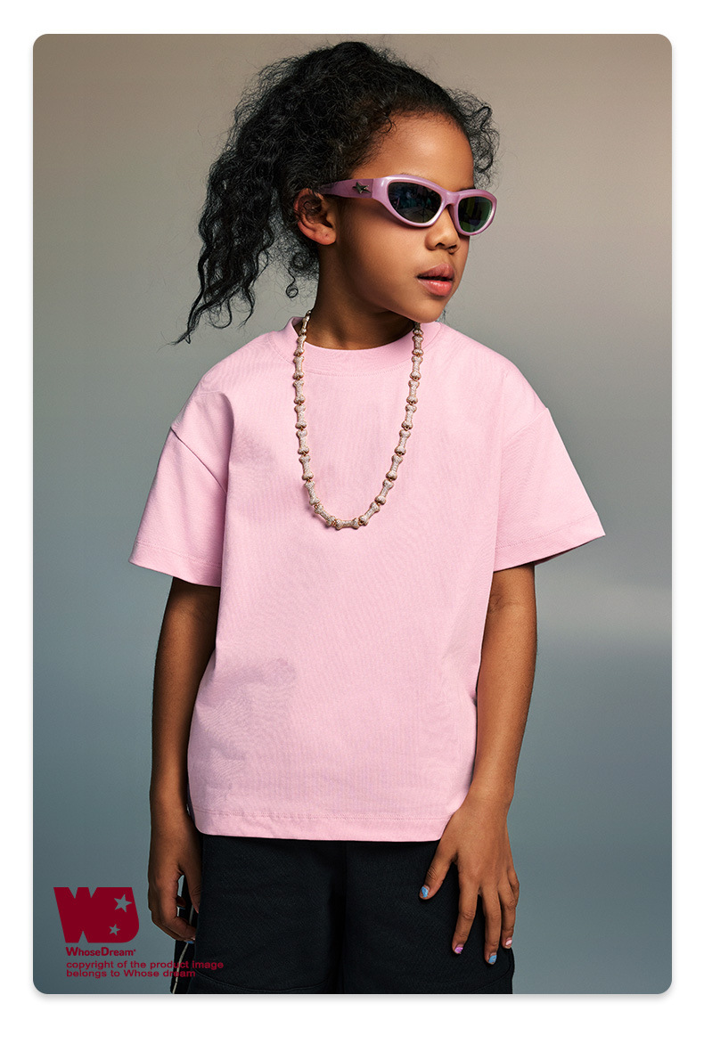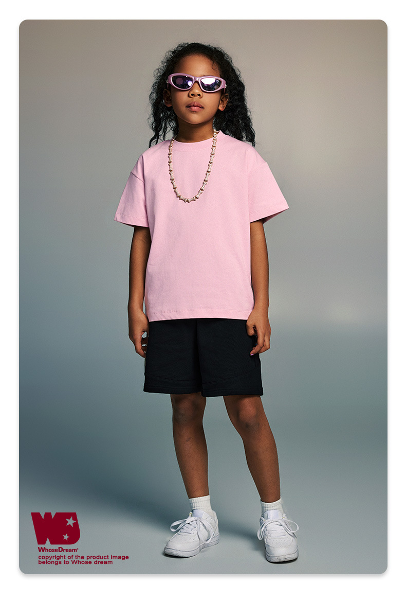 WD 아동복 2025 봄 여름 230g 기본 솔리드 컬러 라운드 넥 반팔 세컨드 흡수 속건 원단 트렌디 브랜드 티셔츠 다용도스토어 가기