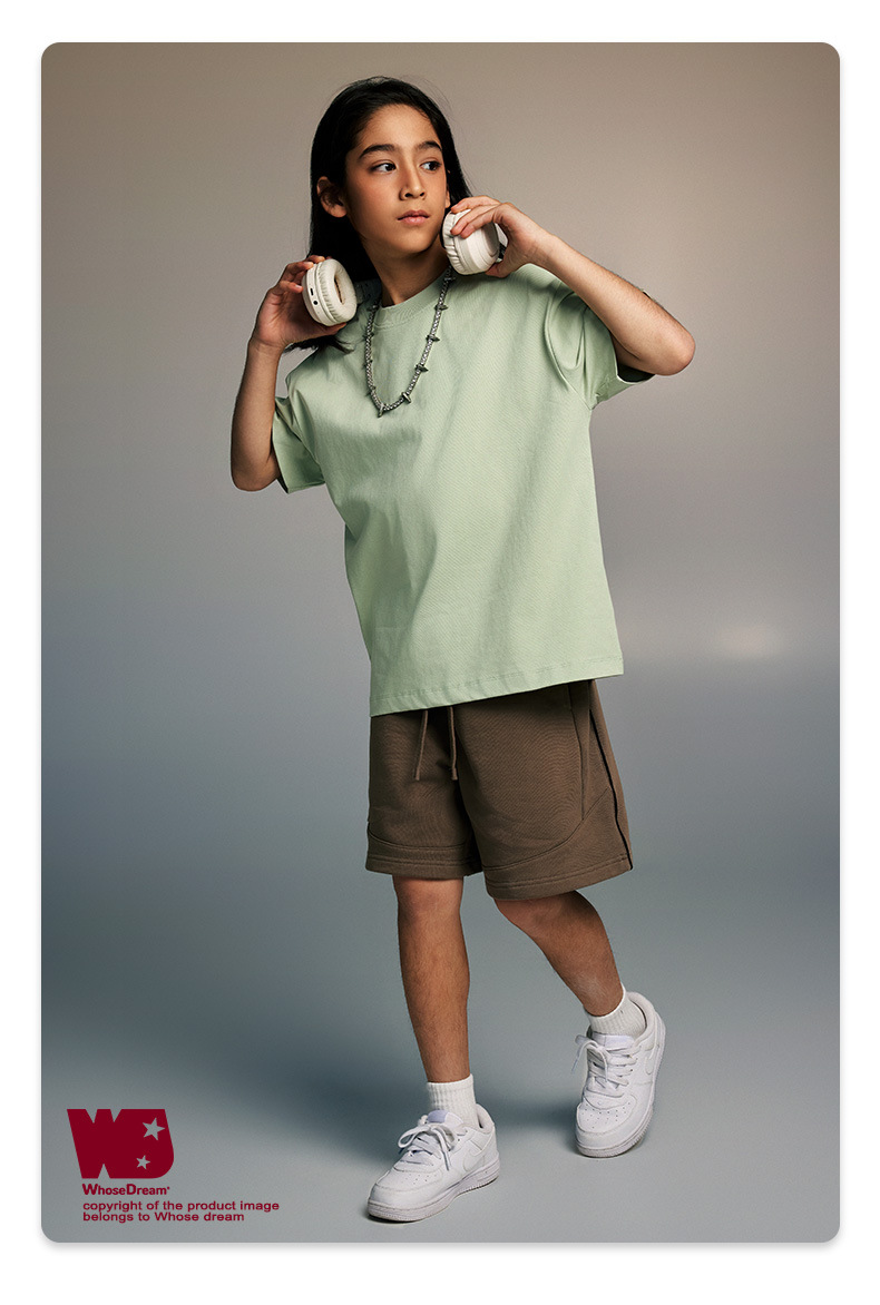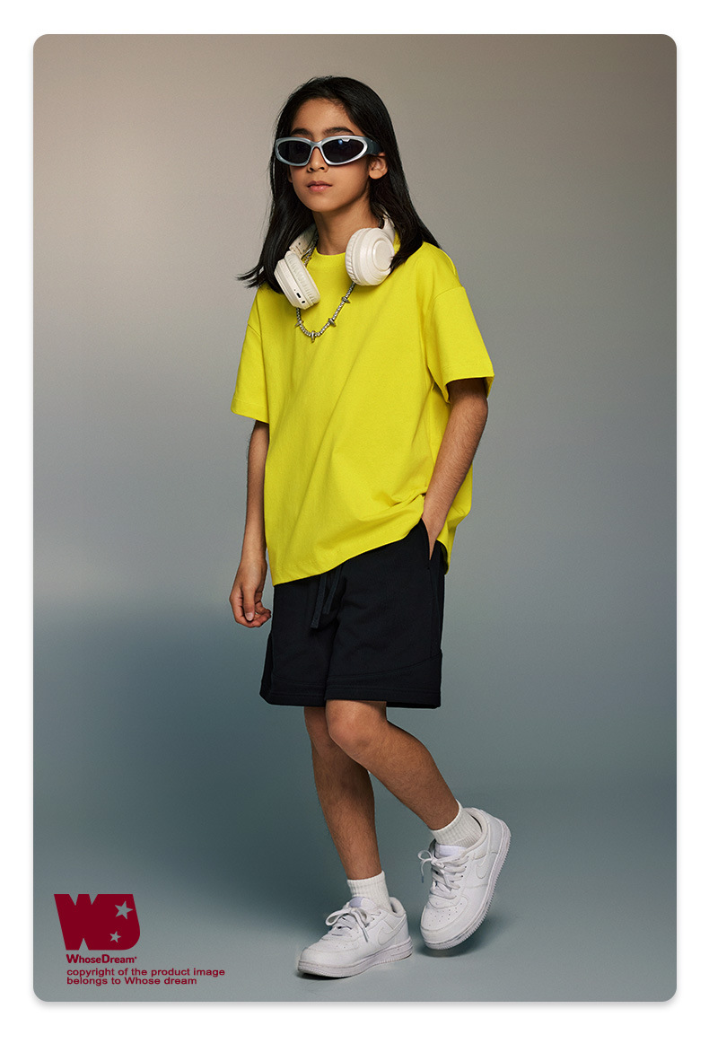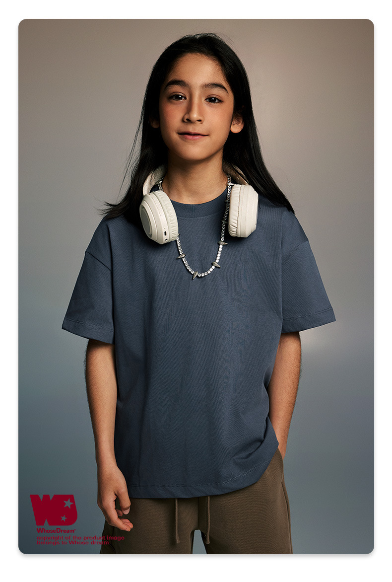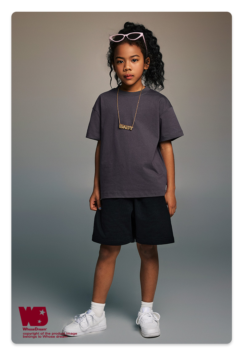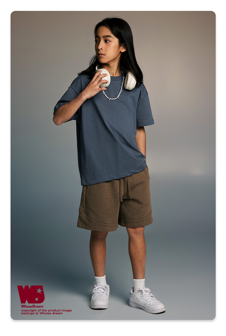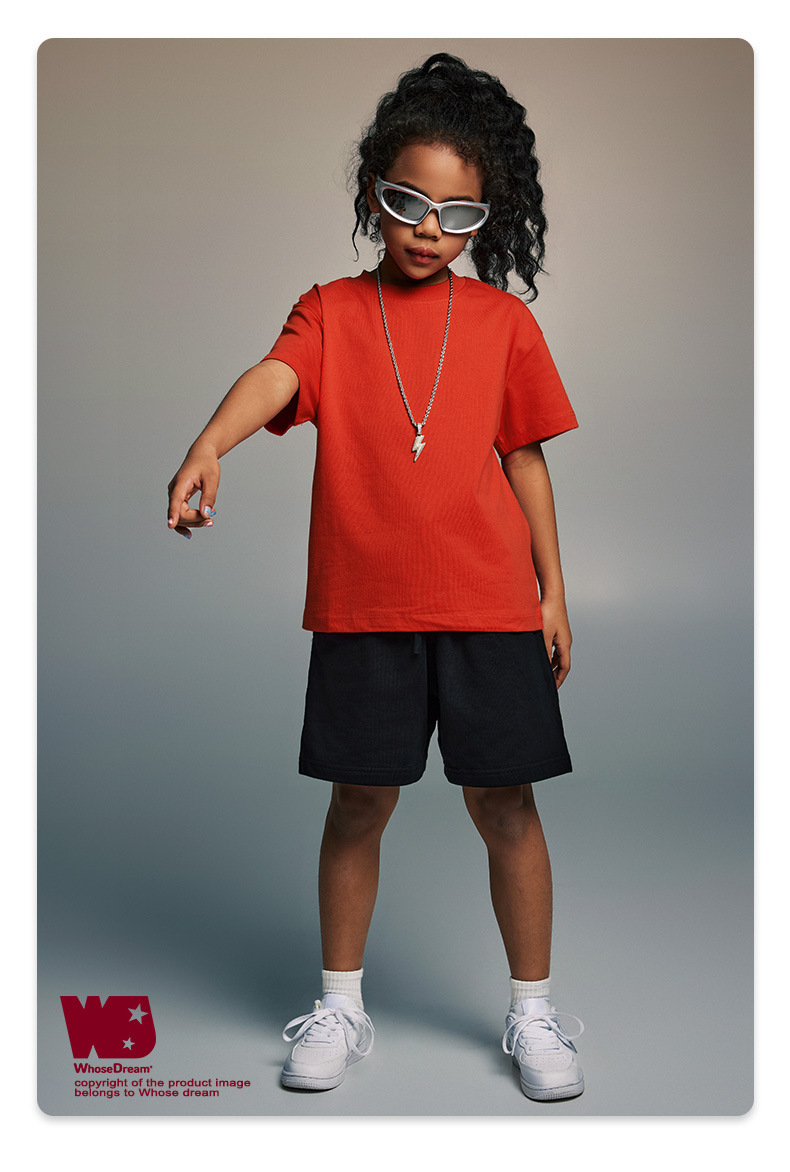 WD 아동복 2025 봄 여름 230g 기본 솔리드 컬러 라운드 넥 반팔 세컨드 흡수 속건 원단 트렌디 브랜드 티셔츠 다용도스토어 가기
