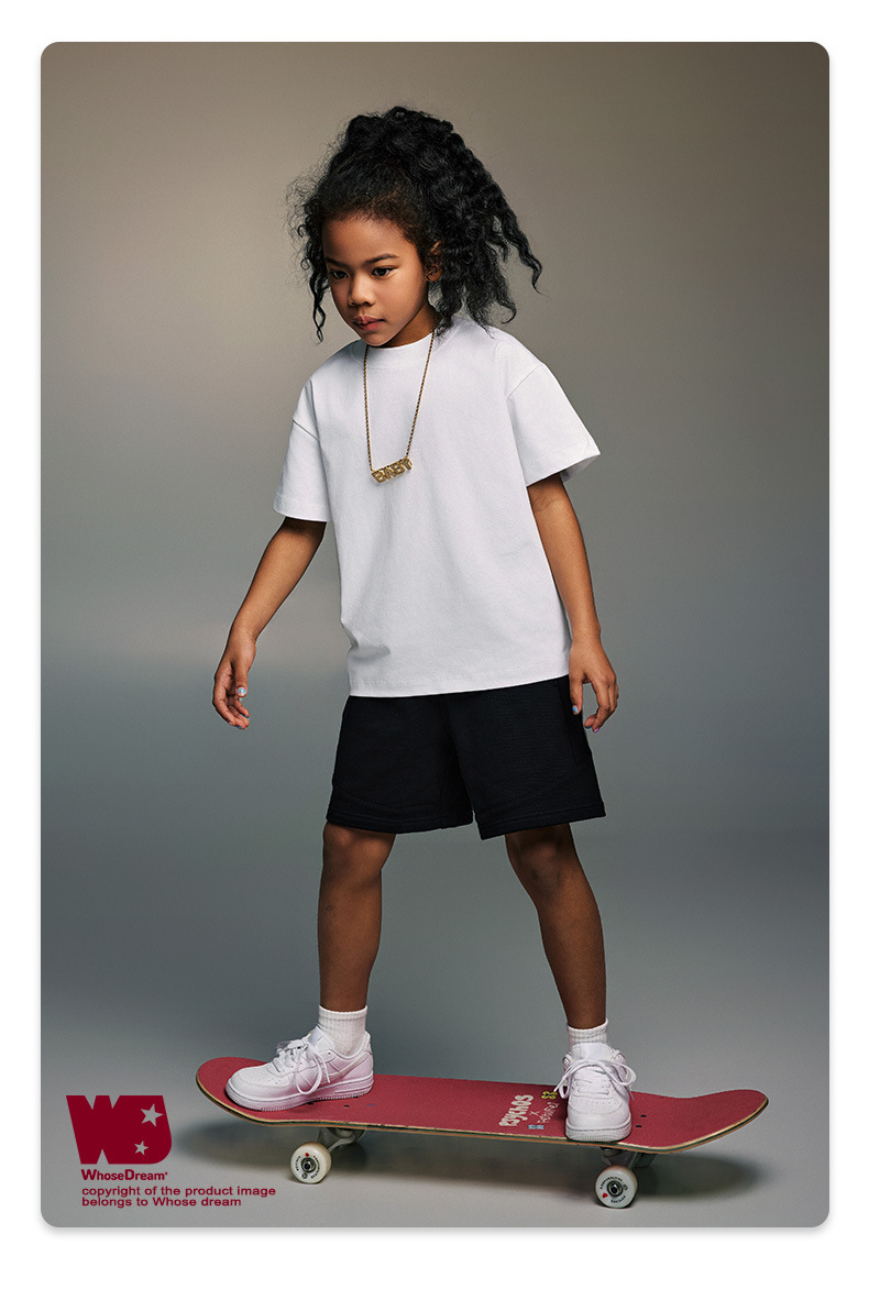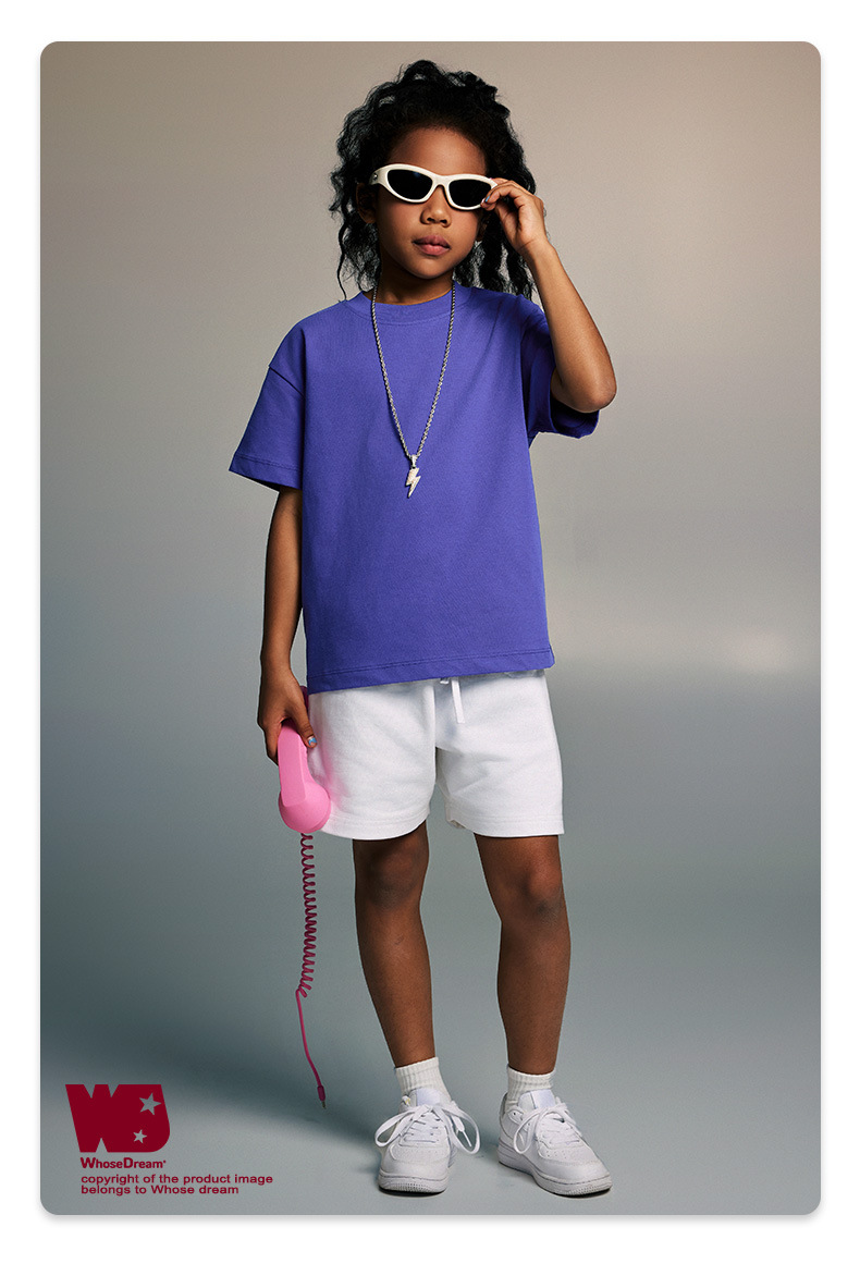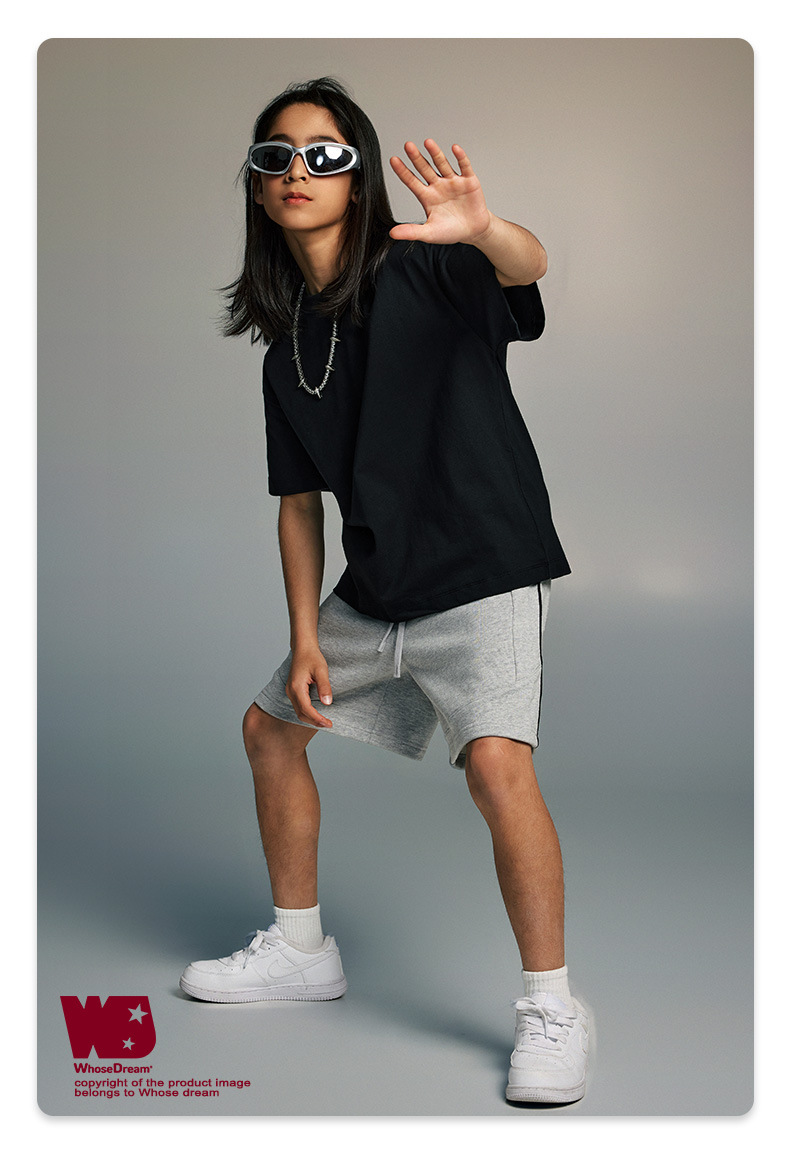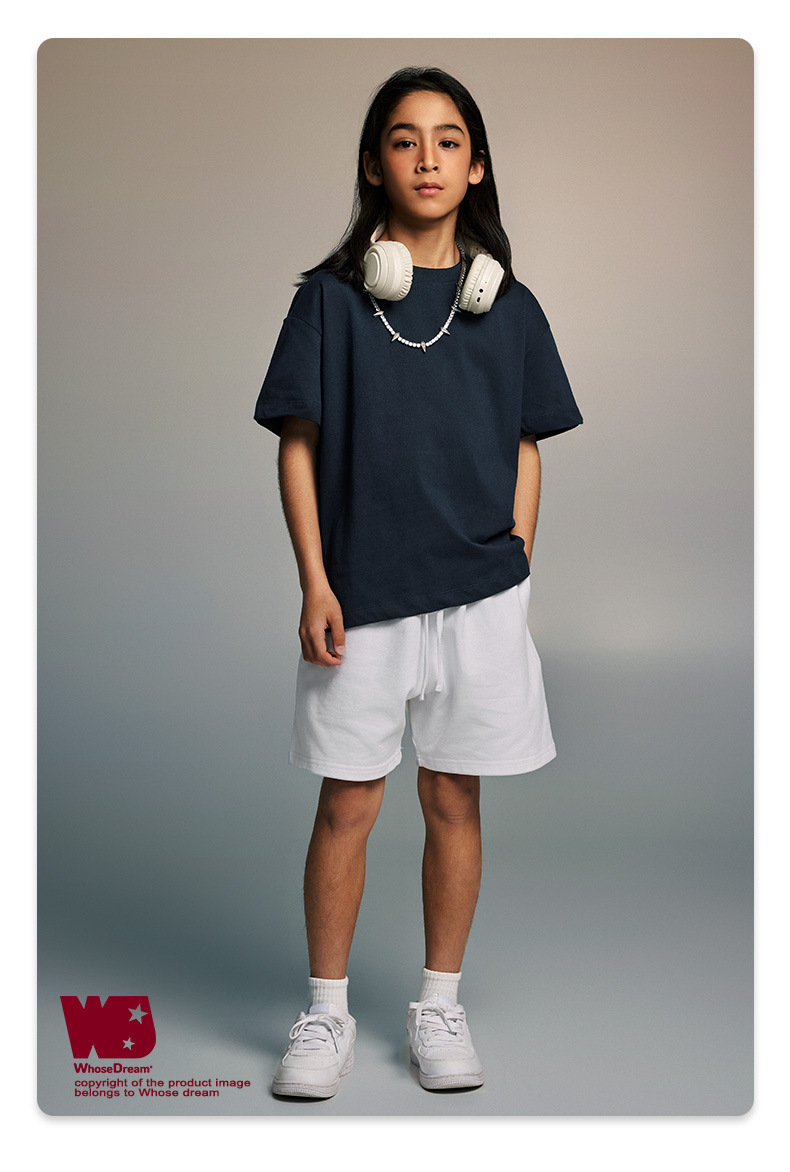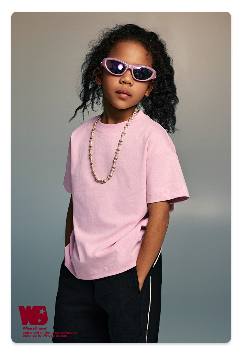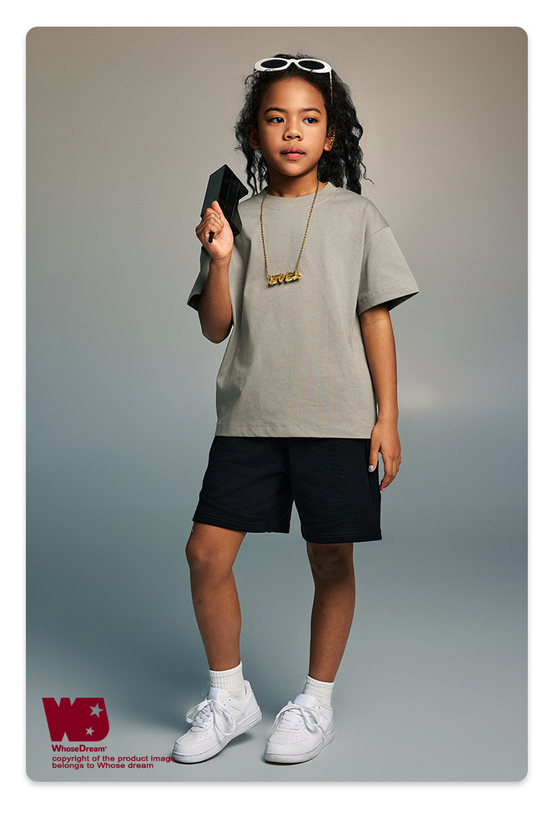 WD 아동복 2025 봄 여름 230g 기본 솔리드 컬러 라운드 넥 반팔 세컨드 흡수 속건 원단 트렌디 브랜드 티셔츠 다용도스토어 가기