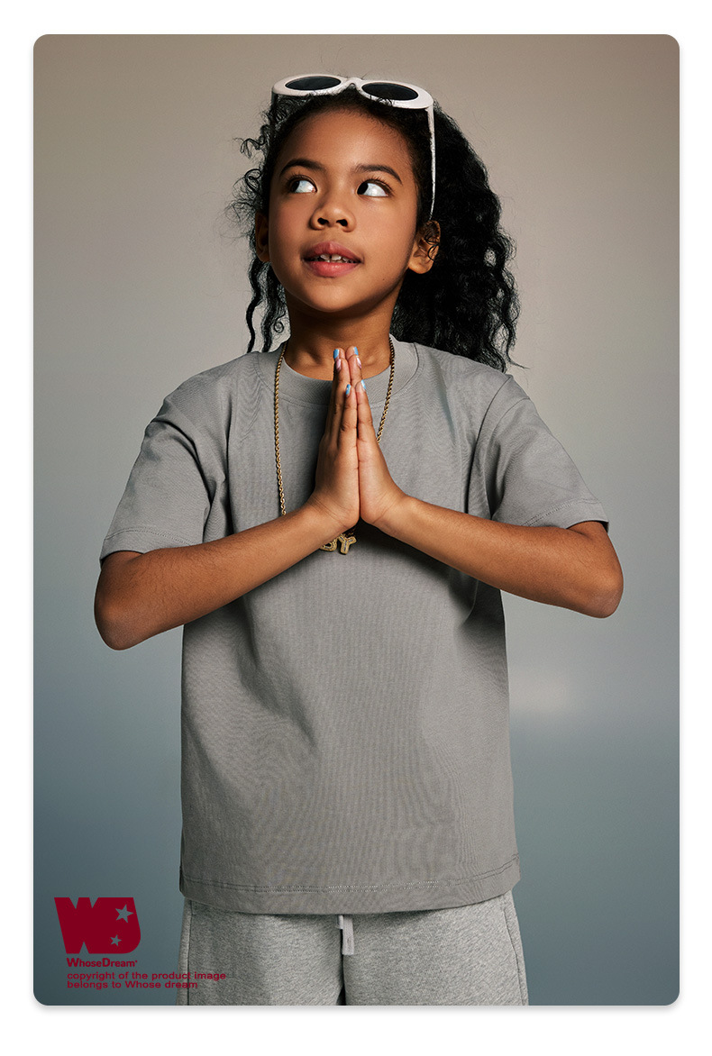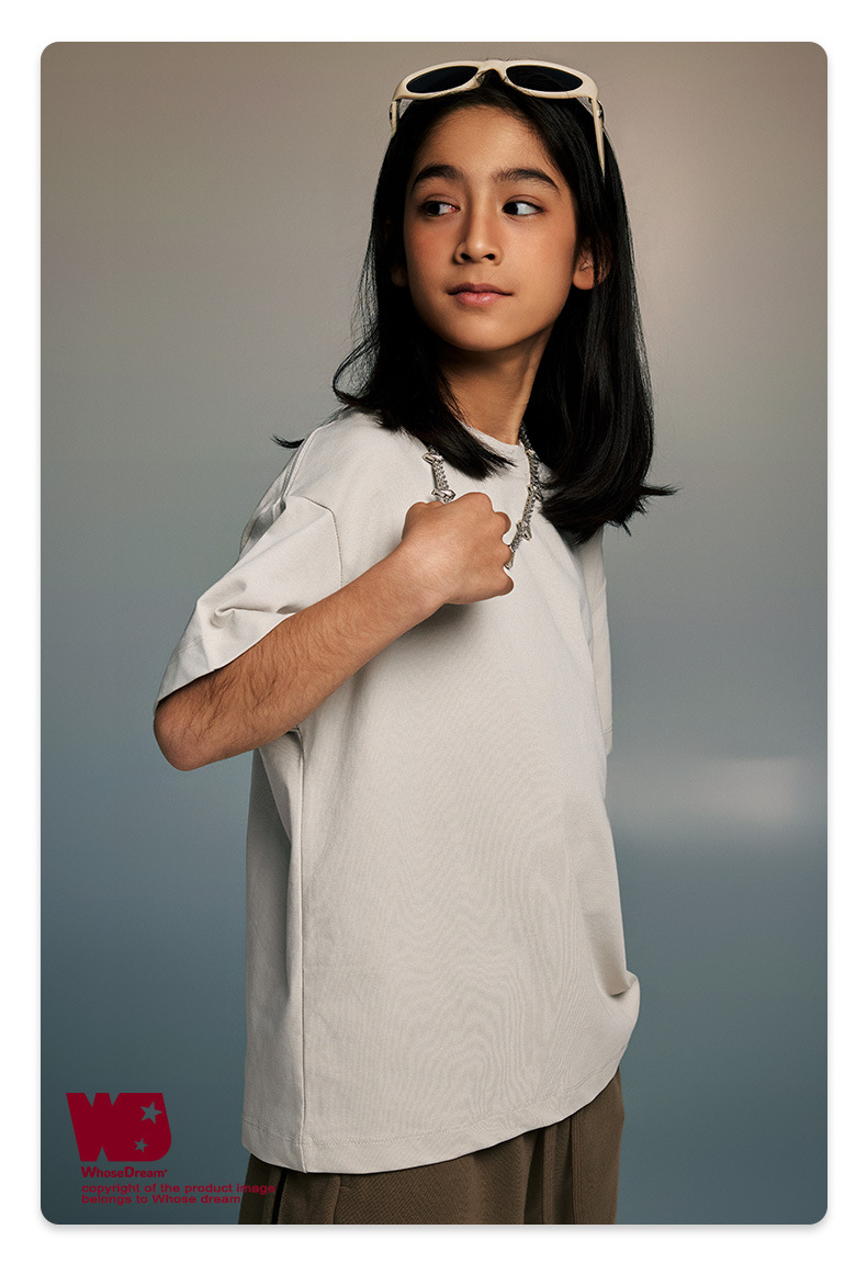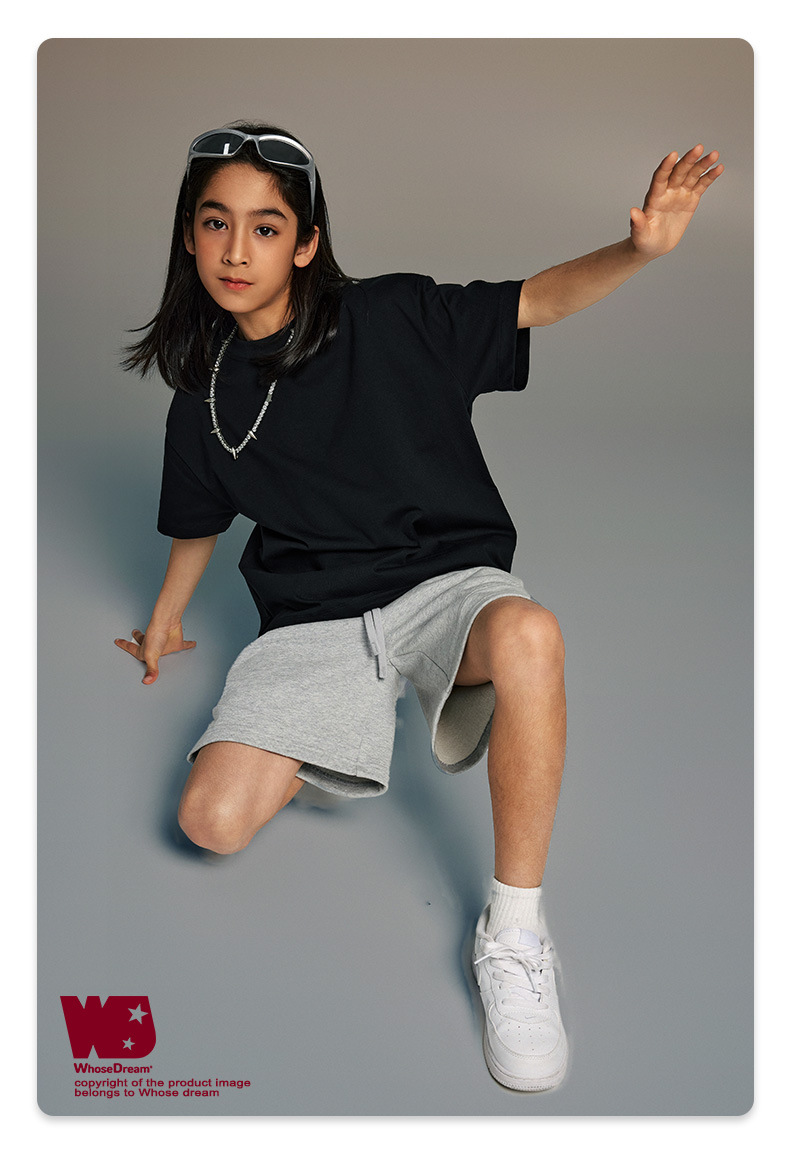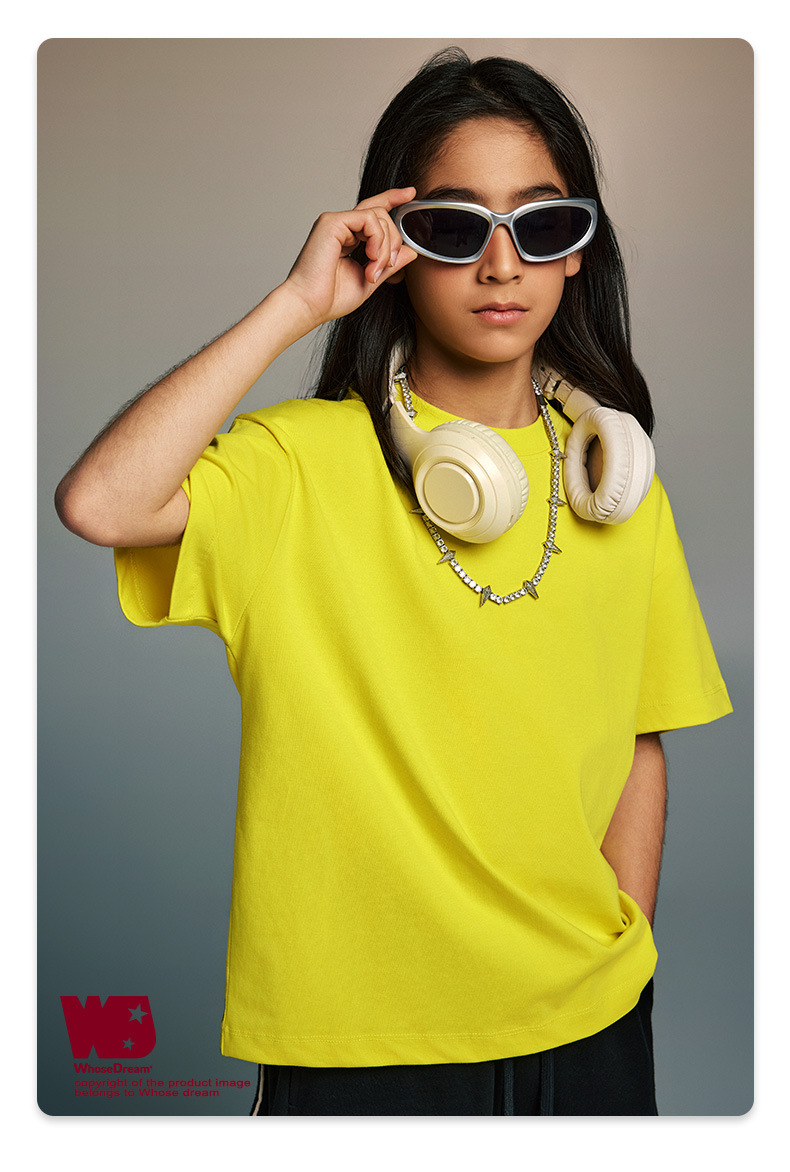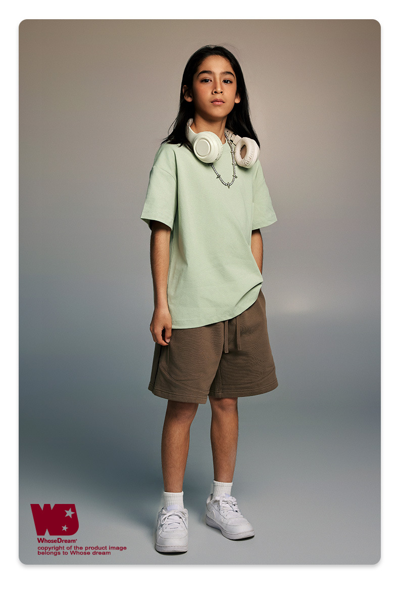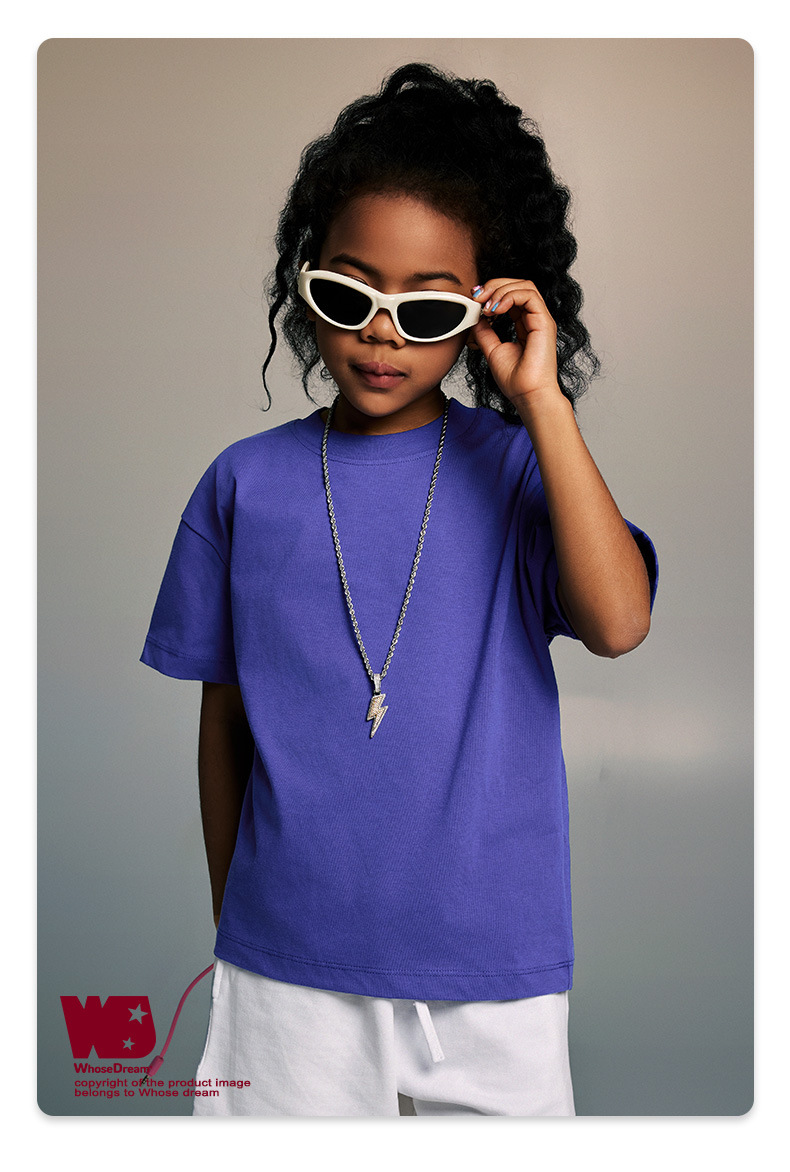 WD 아동복 2025 봄 여름 230g 기본 솔리드 컬러 라운드 넥 반팔 세컨드 흡수 속건 원단 트렌디 브랜드 티셔츠 다용도스토어 가기