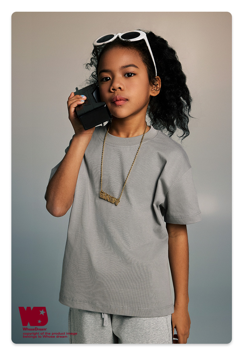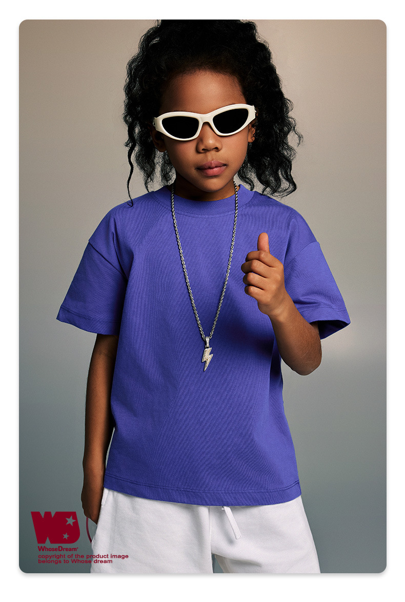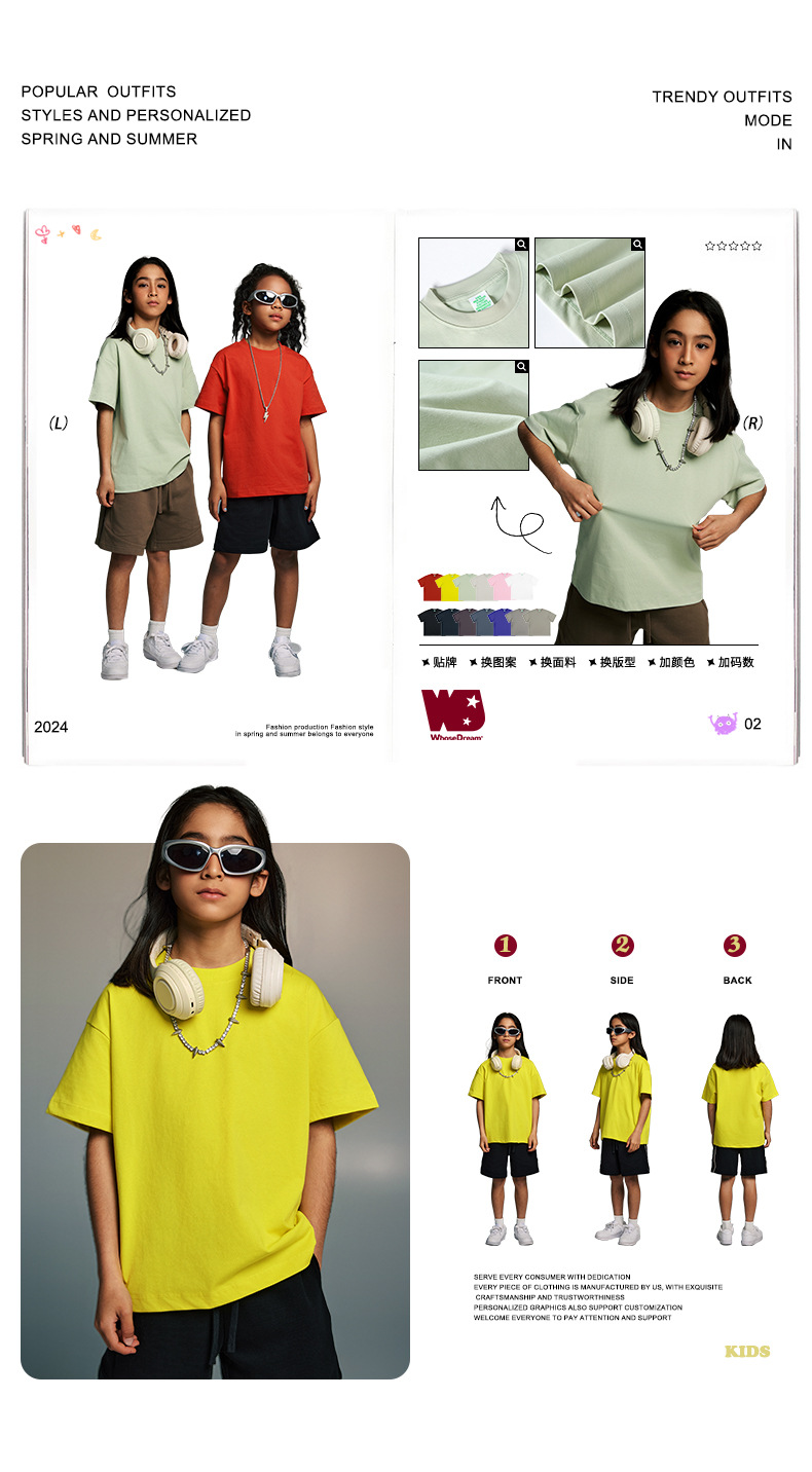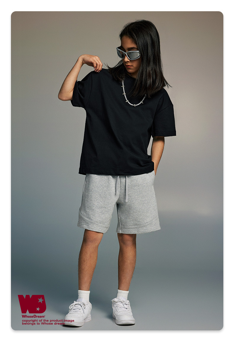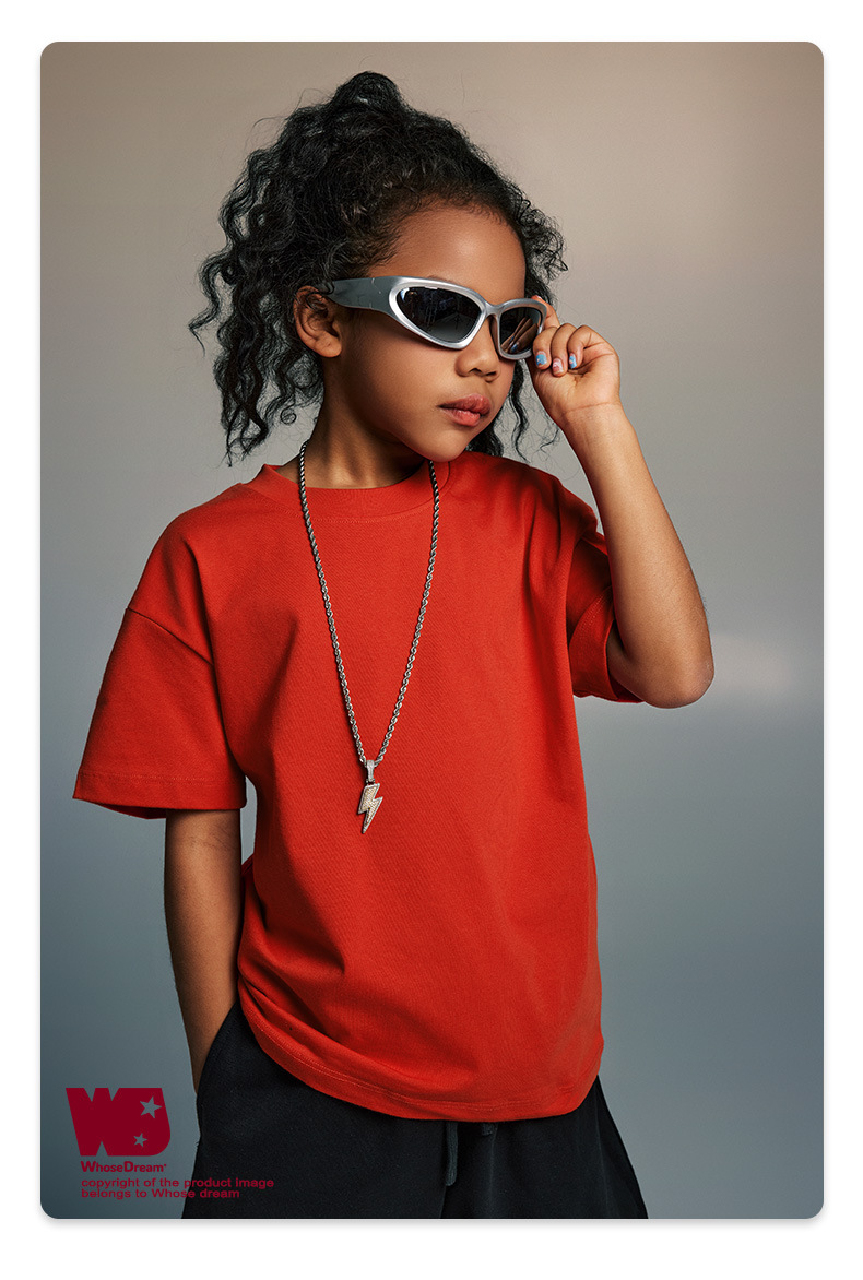WD 아동복 2025 봄 여름 230g 기본 솔리드 컬러 라운드 넥 반팔 세컨드 흡수 속건 원단 트렌디 브랜드 티셔츠 다용도스토어 가기