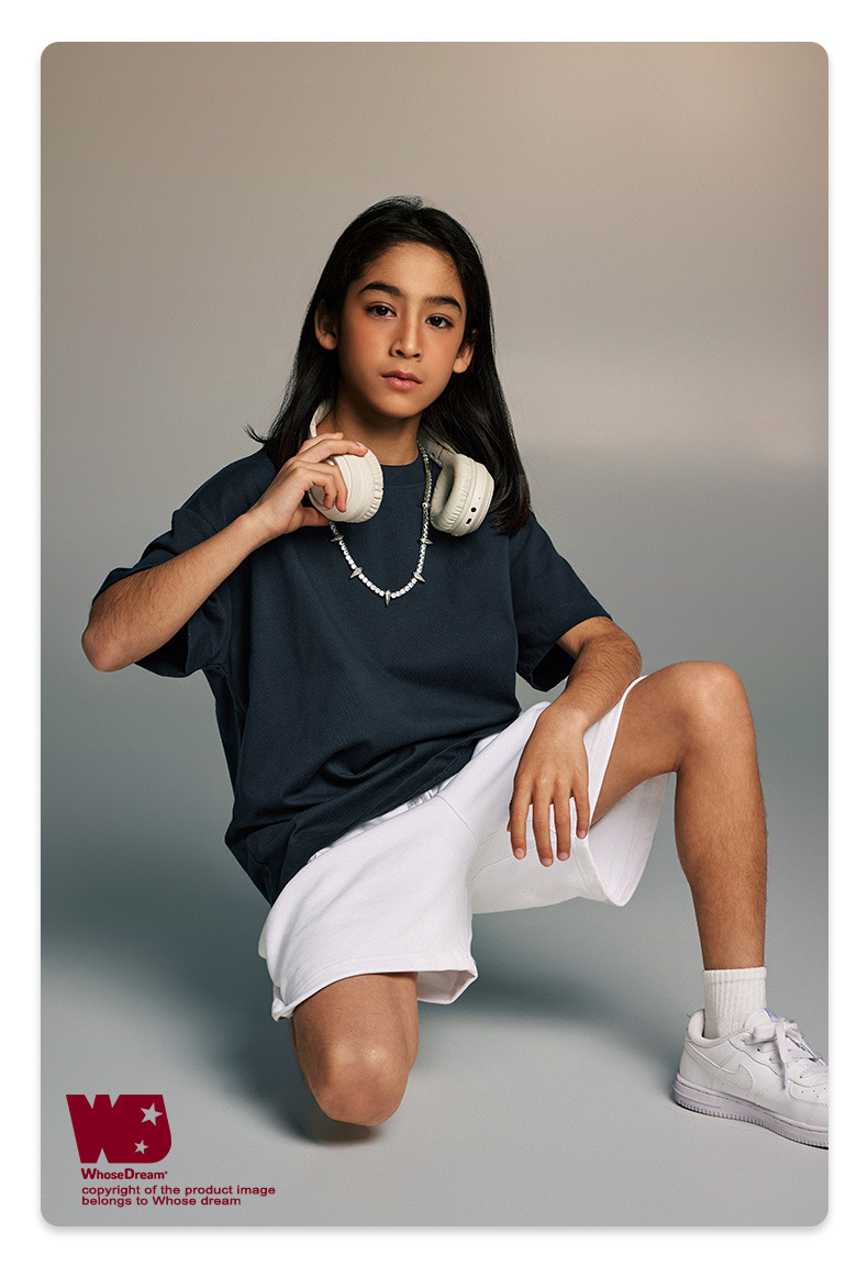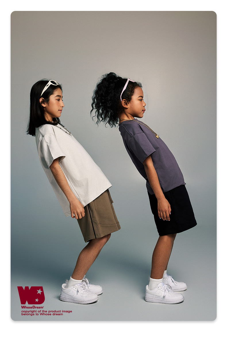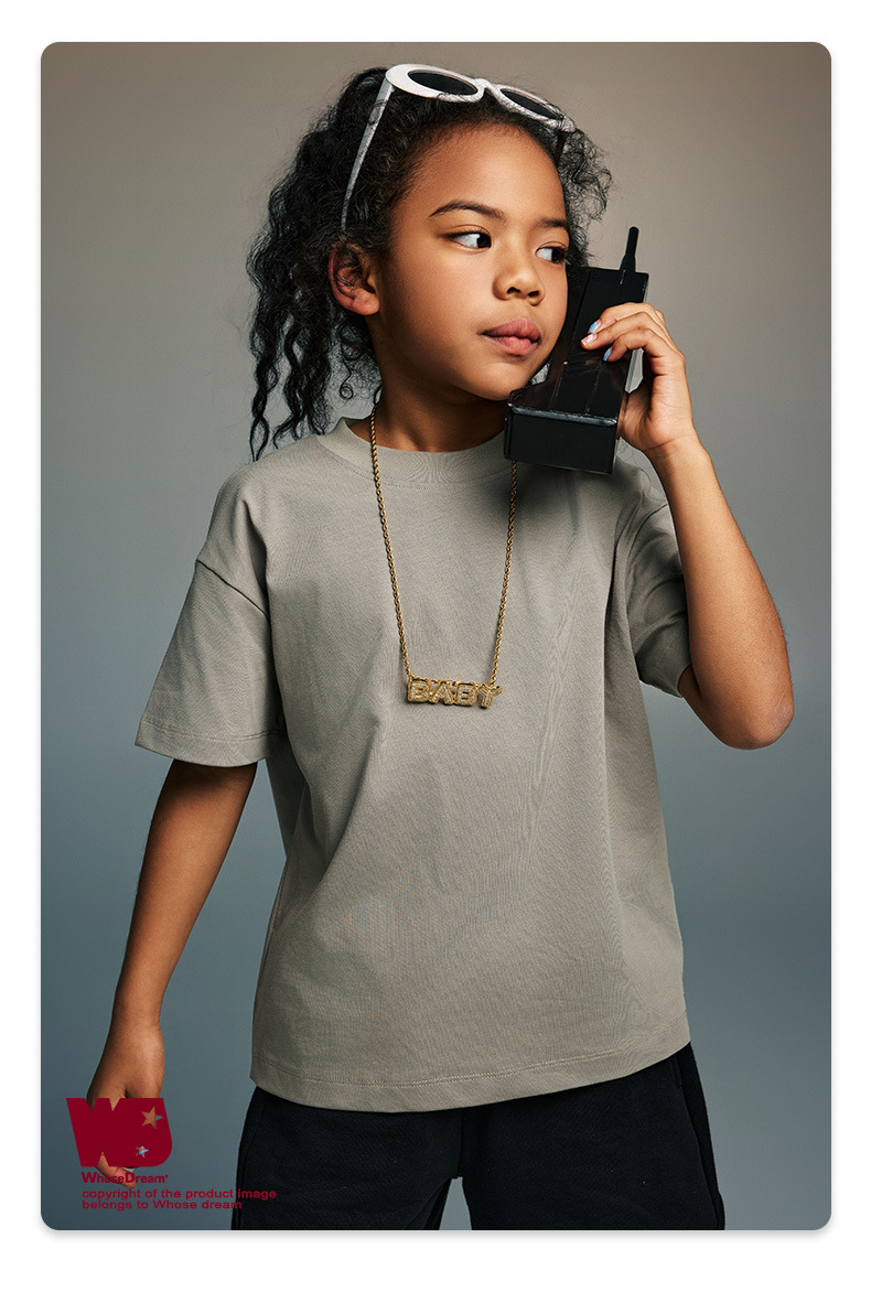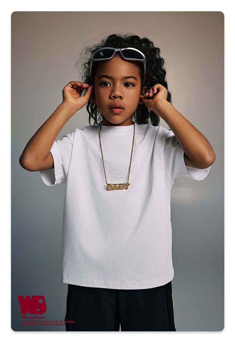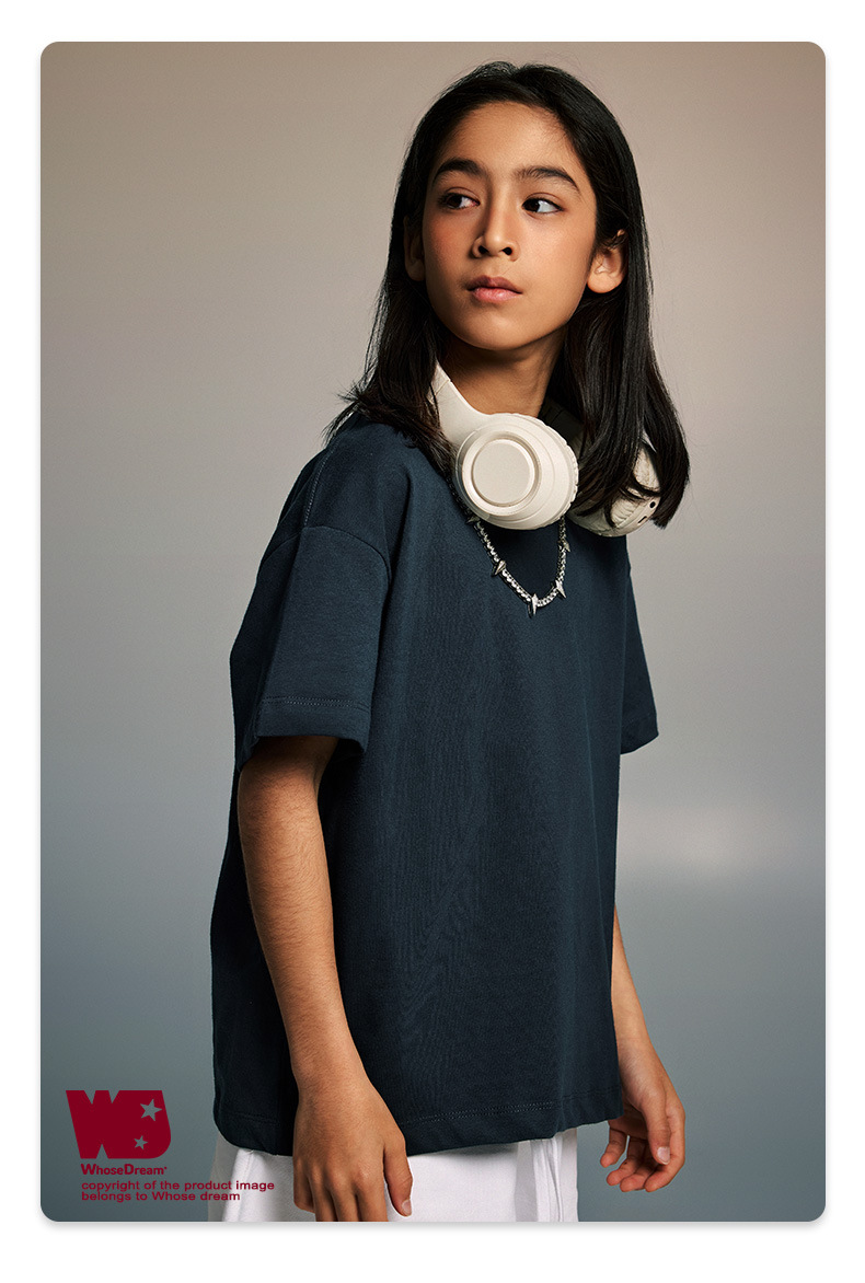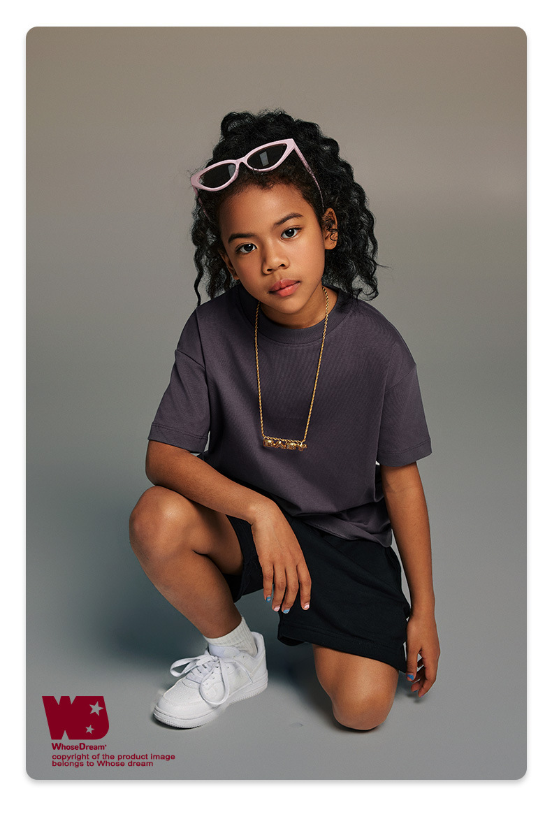 WD 아동복 2025 봄 여름 230g 기본 솔리드 컬러 라운드 넥 반팔 세컨드 흡수 속건 원단 트렌디 브랜드 티셔츠 다용도스토어 가기