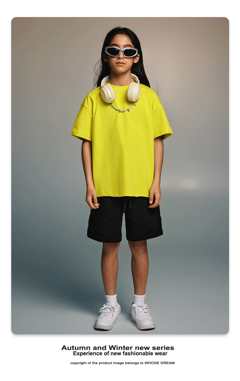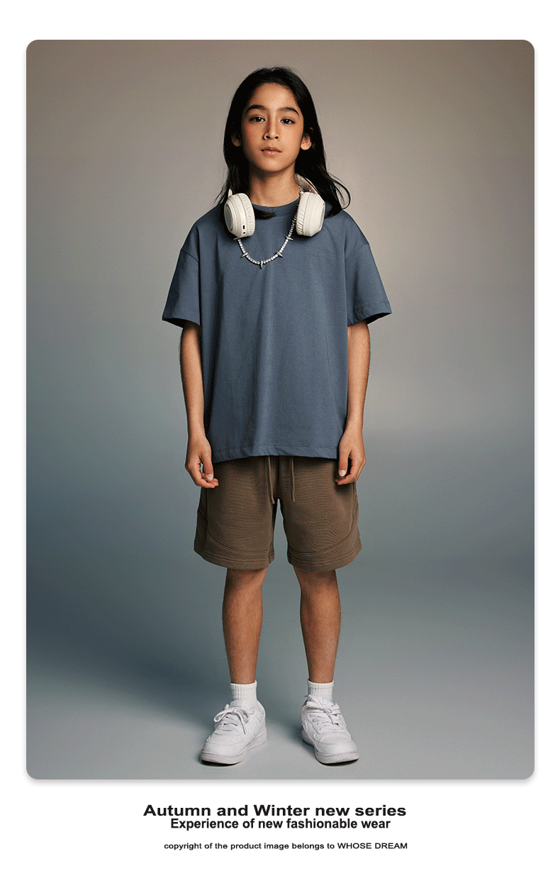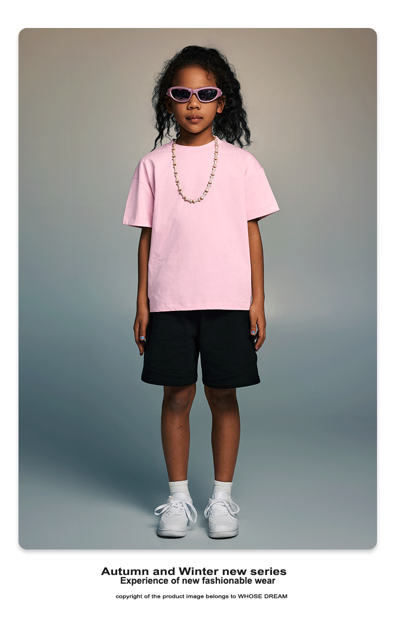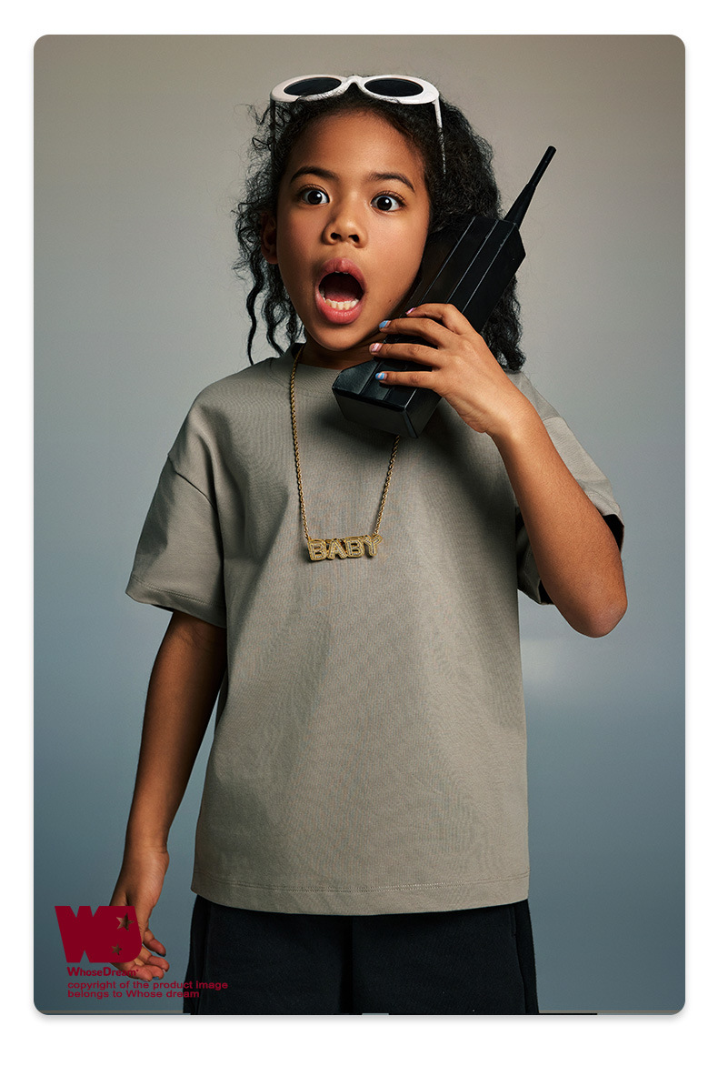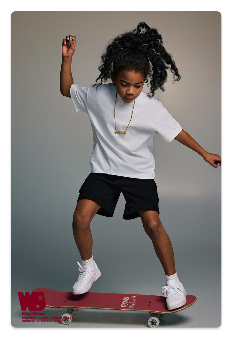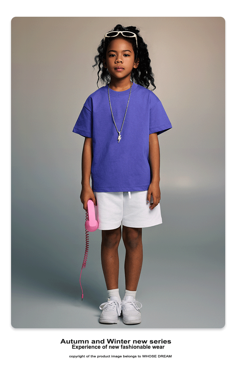 WD 아동복 2025 봄 여름 230g 기본 솔리드 컬러 라운드 넥 반팔 세컨드 흡수 속건 원단 트렌디 브랜드 티셔츠 다용도스토어 가기