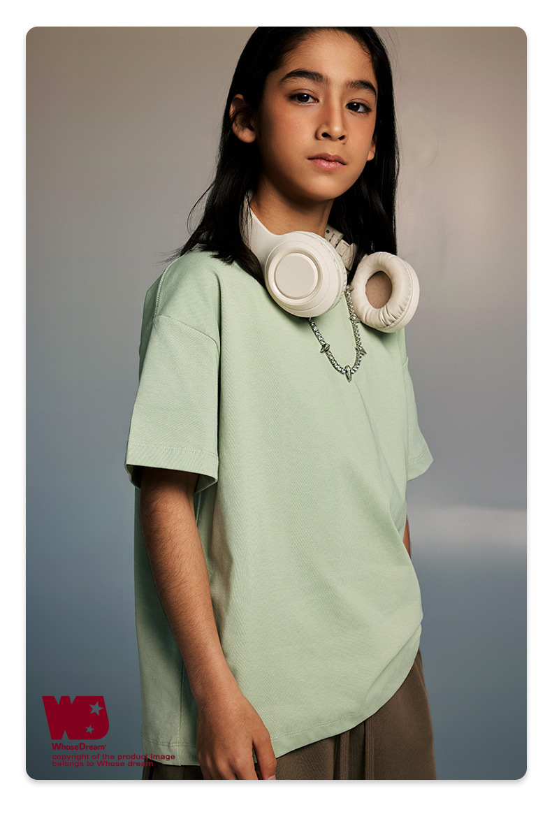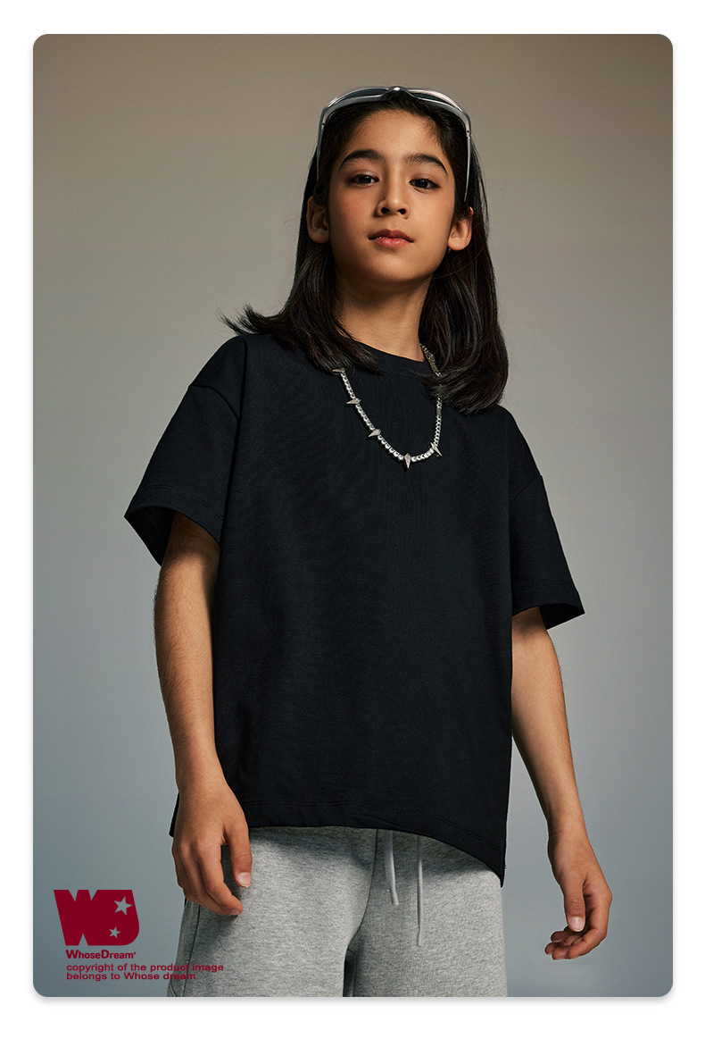WD 아동복 2025 봄 여름 230g 기본 솔리드 컬러 라운드 넥 반팔 세컨드 흡수 속건 원단 트렌디 브랜드 티셔츠 다용도