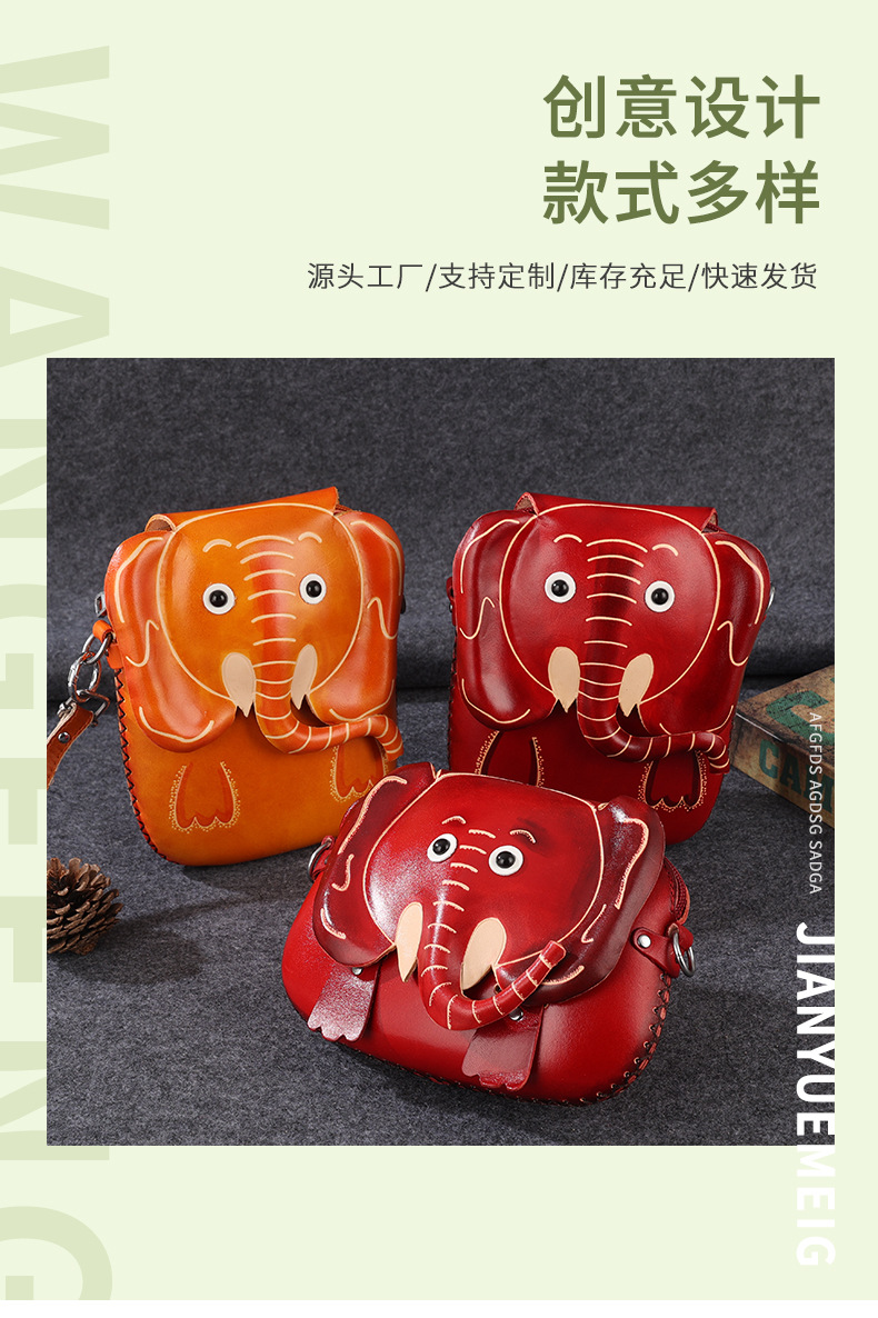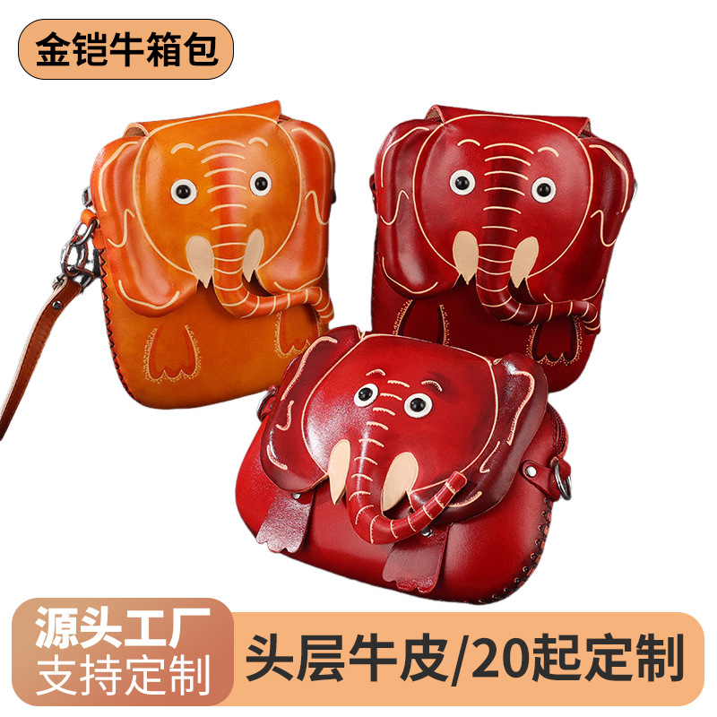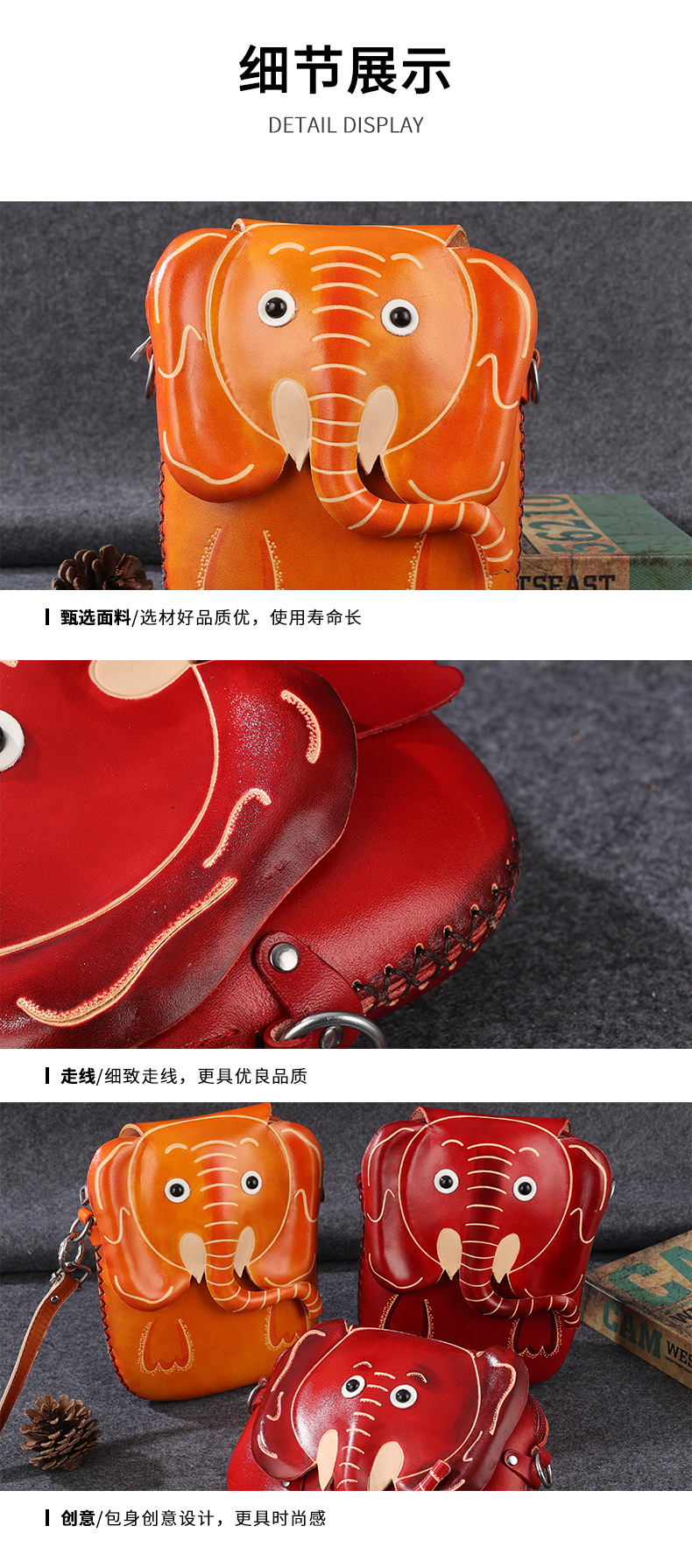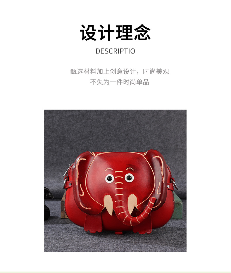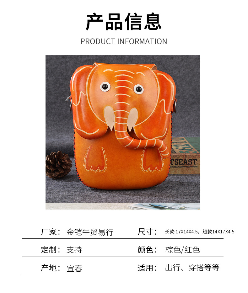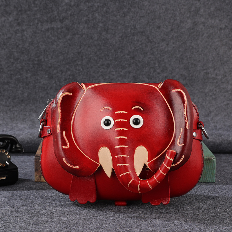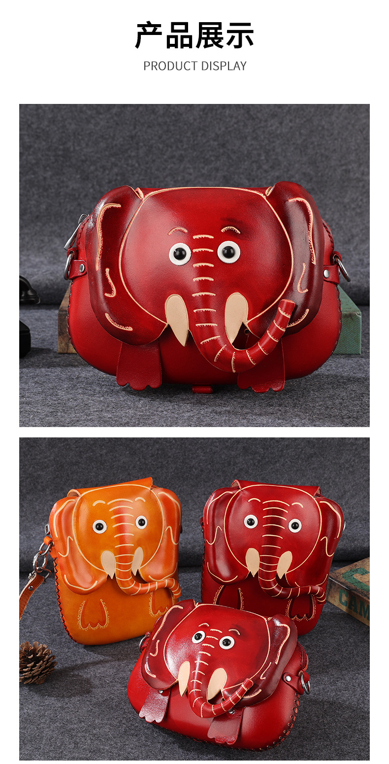 코끼리 동물 오렌지 레드 여성 가죽 표면 창조적 인 패션 여행 착용 가방 스타일 핸드백 메신저 가방 도매스토어 가기
