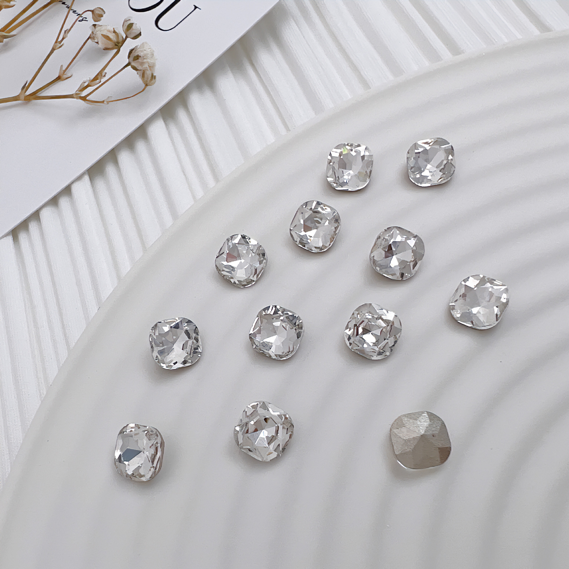 • 투명한 흰색 뾰족한 바닥 다이아몬드 8*8mm 뚱뚱한 사각형