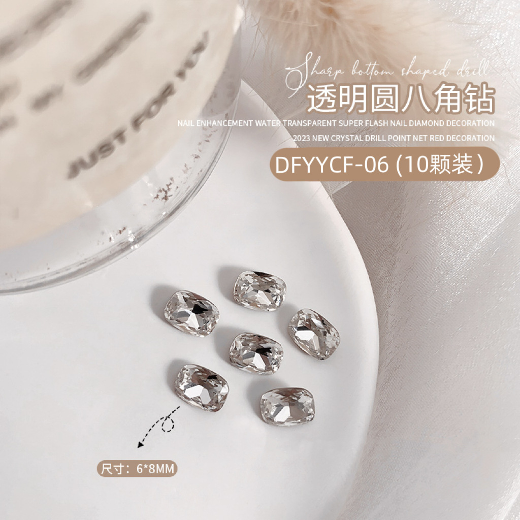 • 투명한 흰색 뾰족한 바닥 다이아몬드 6*8mm 직사각형 팔각형