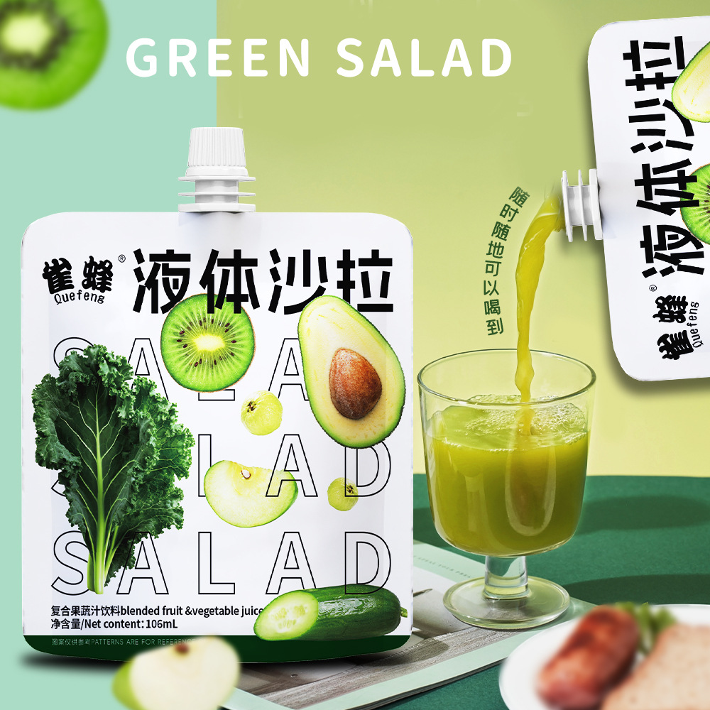 우와 맞춤형 액체 샐러드 프리 바이오 틱 과일 및 야채 주스 과일 및 야채 음료 식사 대체 액체 샐러드 흡입 입 가방 음료