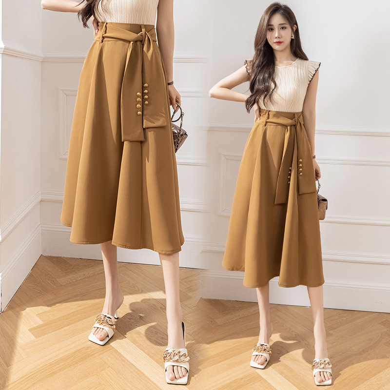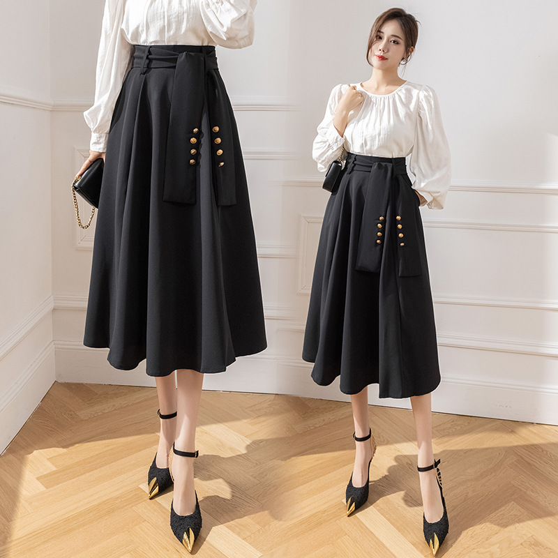 스커트 여성의 가을 높은 허리 우산 스커트 2024 새로운 스타일 스커트 중간 길이 A 라인 스커트 힙합 커버 슬림 반쪽 치마스토어 가기