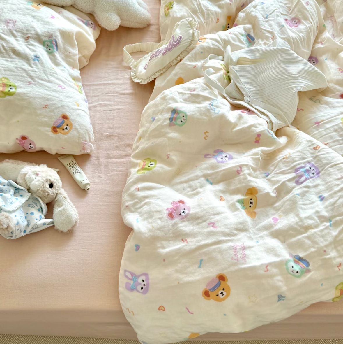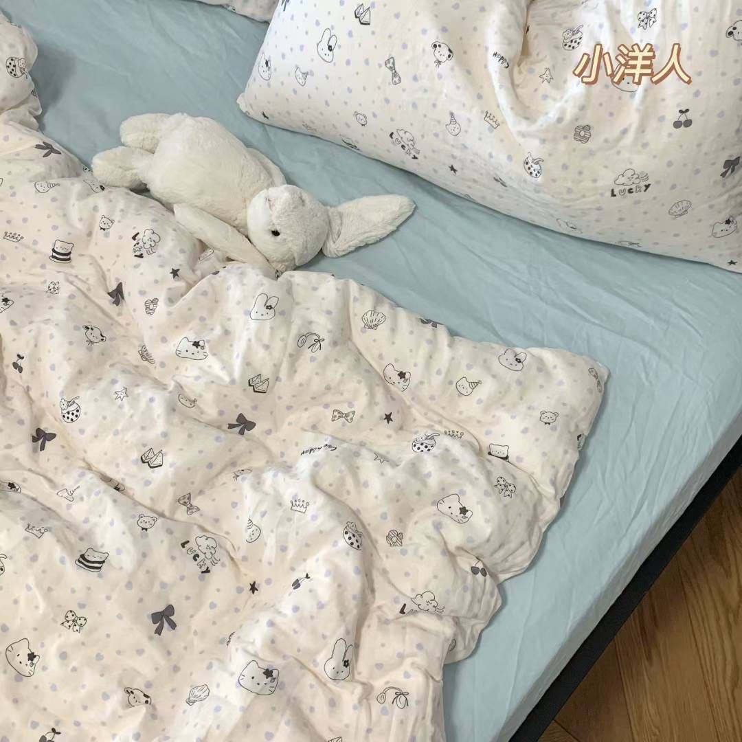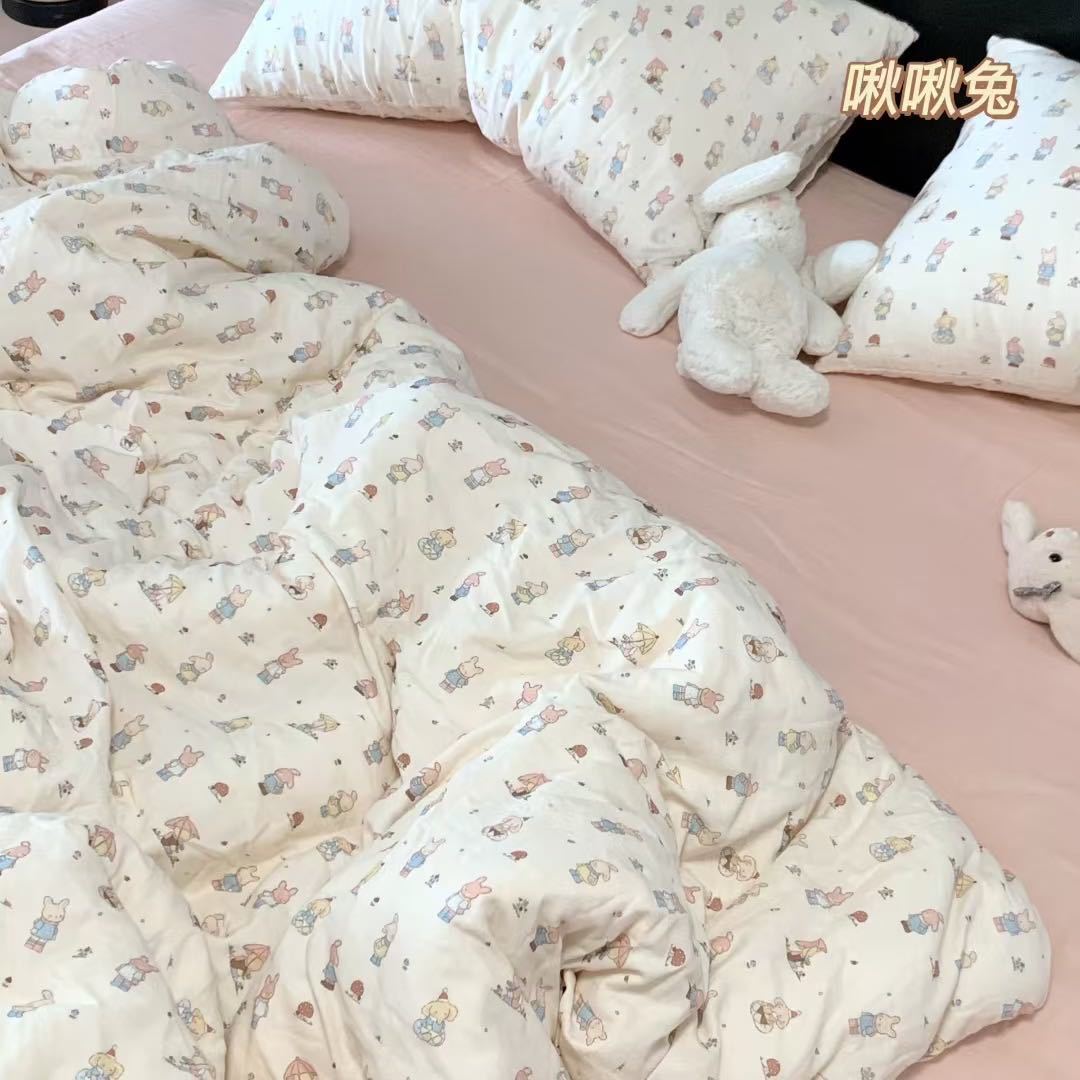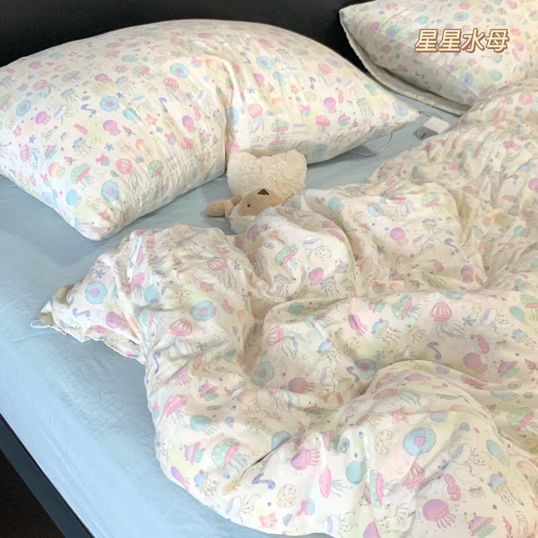 라이브 폭발 클래스 모성 및 유아 학년 코튼 더블 레이어 원사 4 피스 세트 학생 어린이 기숙사 3 피스 퀼트 커버