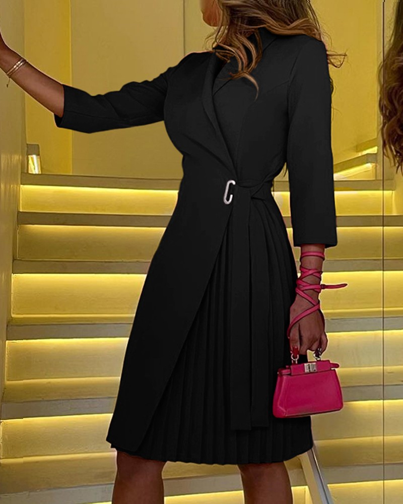 국경 간 대외 무역 유럽과 미국 여성 의류 아마존 2023 가을과 겨울 패션 기질 V 넥 스트랩 허리 주름 원피스스토어 가기