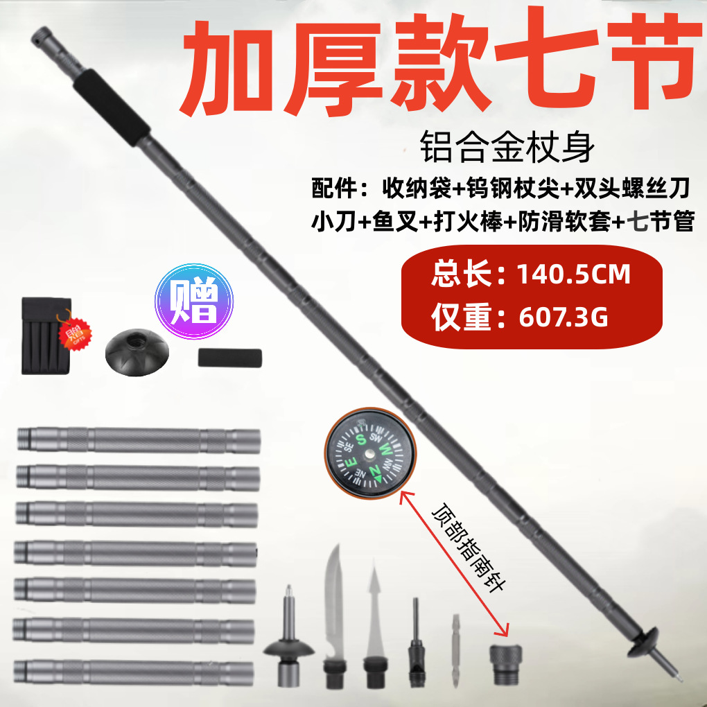 공장 직접 야외 다기능 트레킹 폴 접이식 알루미늄 합금 워킹 스틱 등산 스틱 손 싸움 장비스토어 가기
