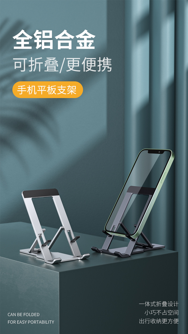 Chengrong 제조업체 초박형 휴대용 게으른 데스크탑 휴대 전화 홀더 접이식 크리 에이 티브 알루미늄 합금 태블릿 홀더