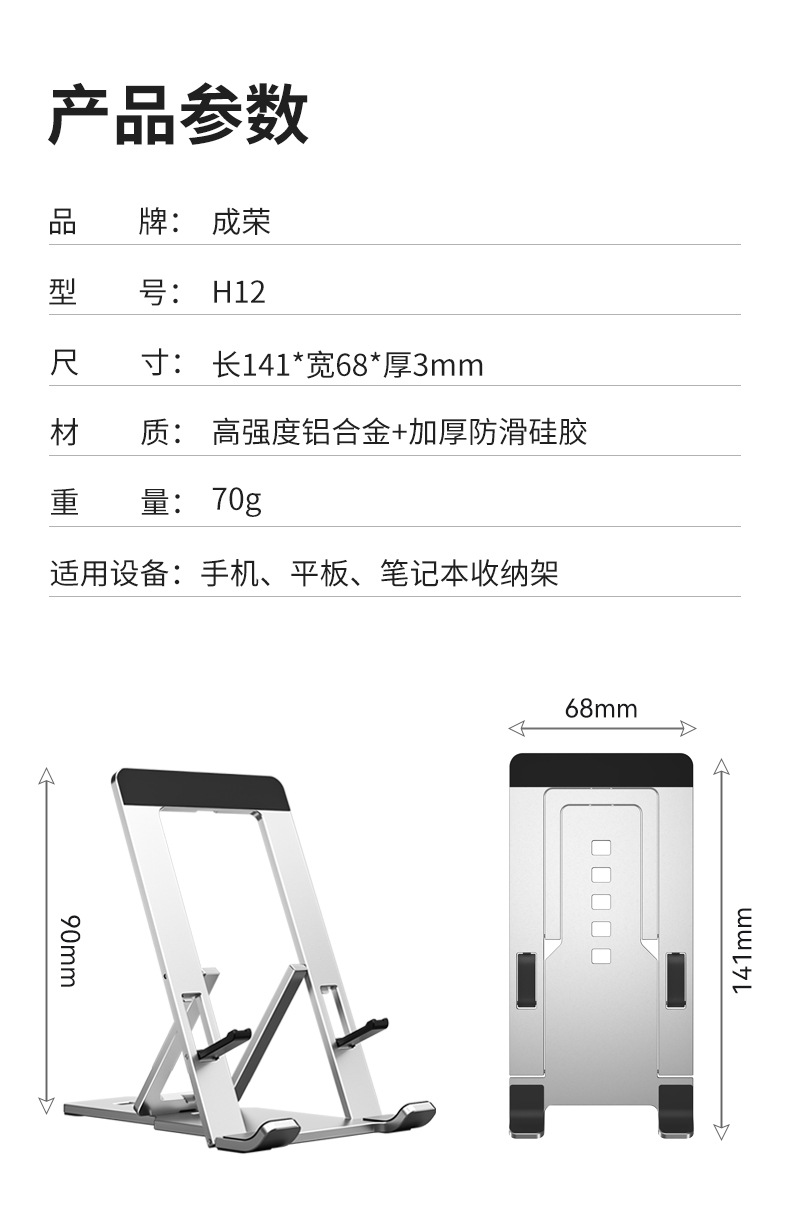 Chengrong 제조업체 초박형 휴대용 게으른 데스크탑 휴대 전화 홀더 접이식 크리 에이 티브 알루미늄 합금 태블릿 홀더스토어 가기