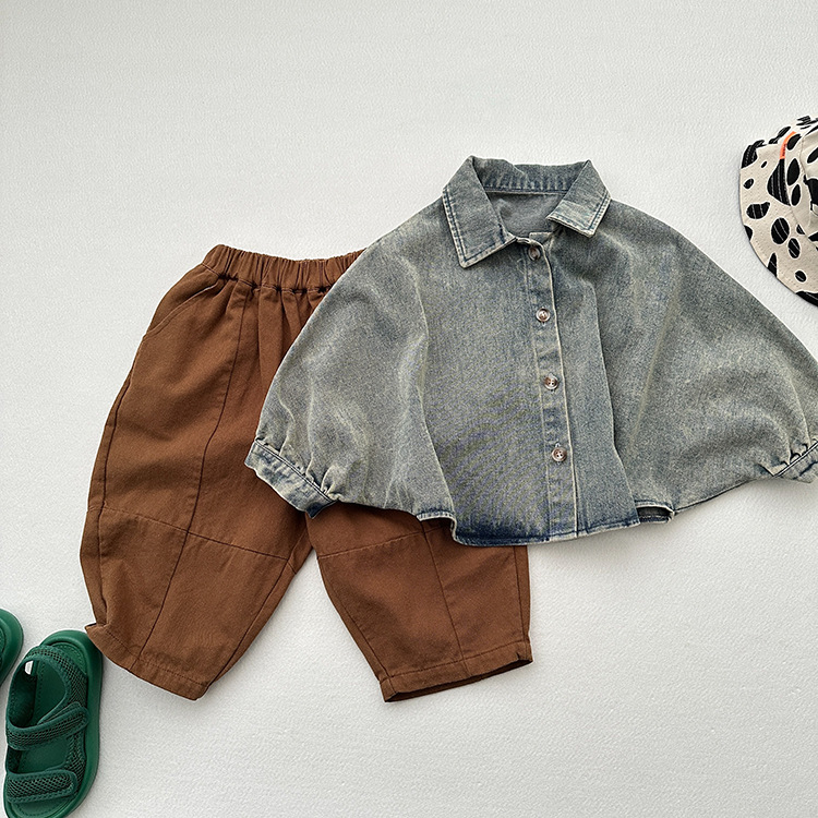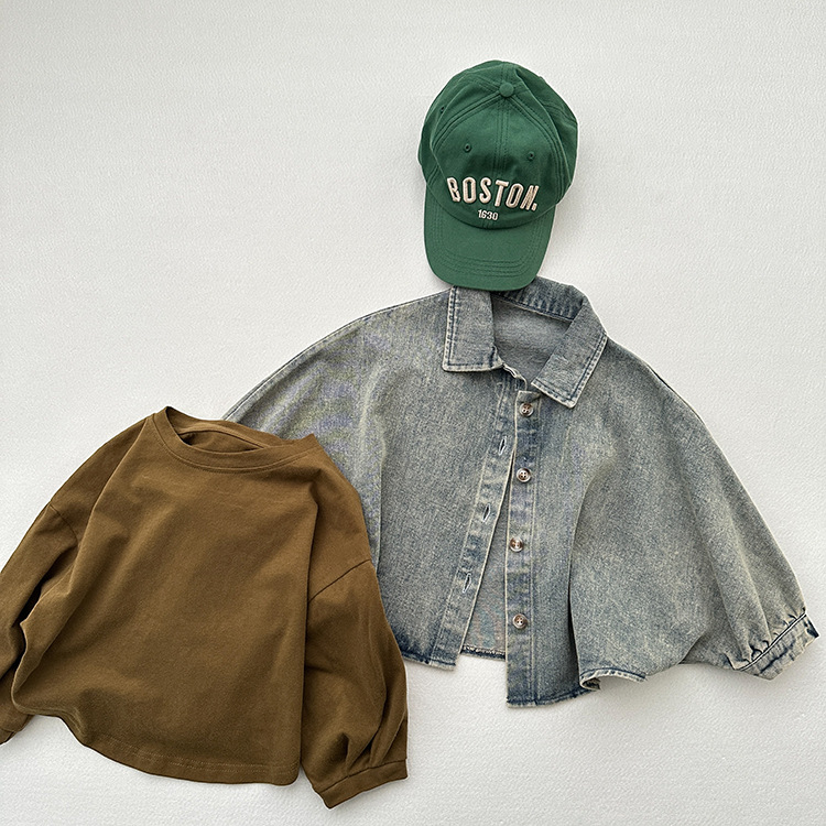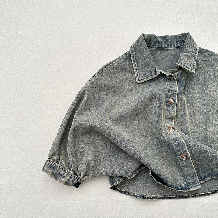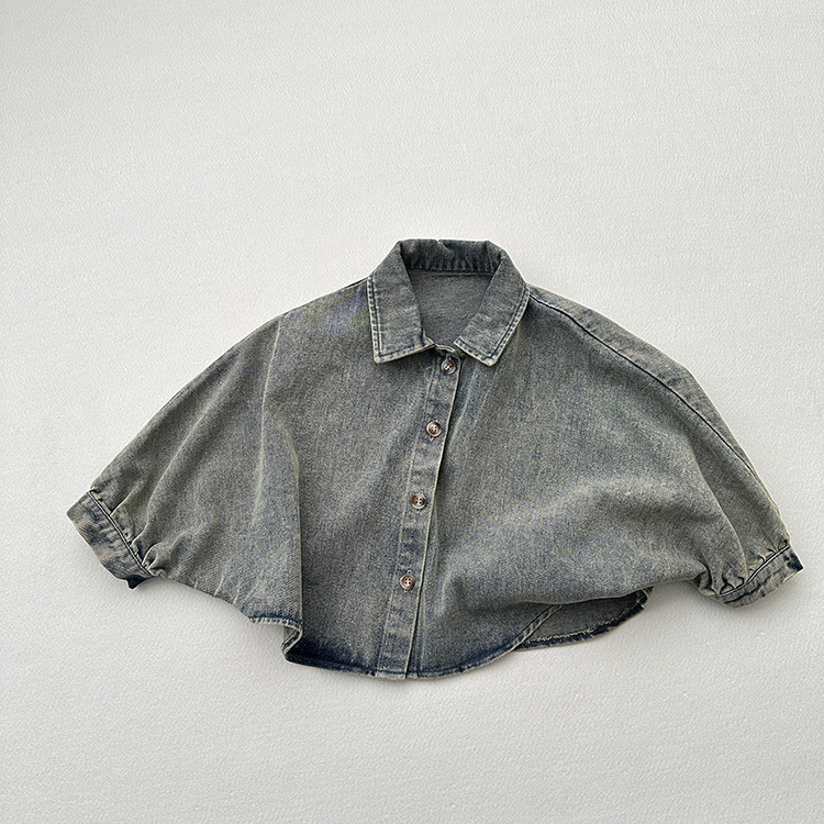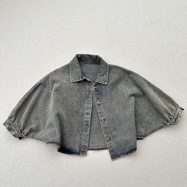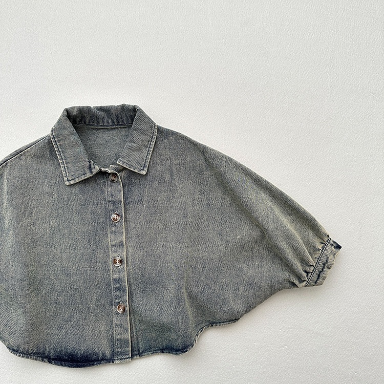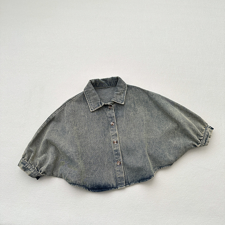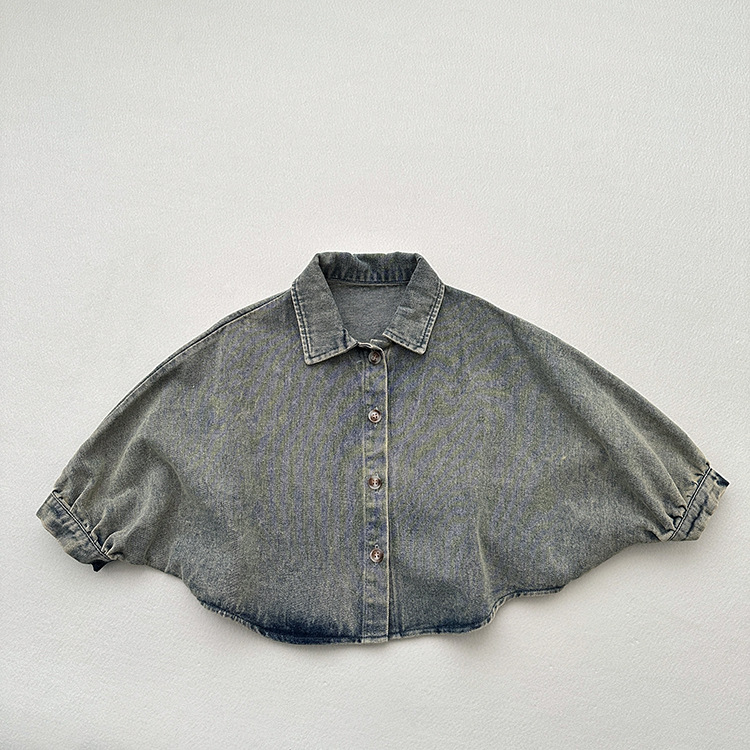 작은 톤 봄과 가을 새로운 어린이 넓은 데님 재킷 소년과 소녀 박쥐 소매 느슨한 데님 재킷 카디건