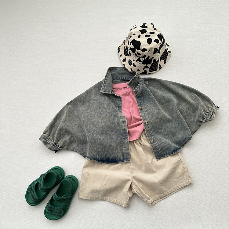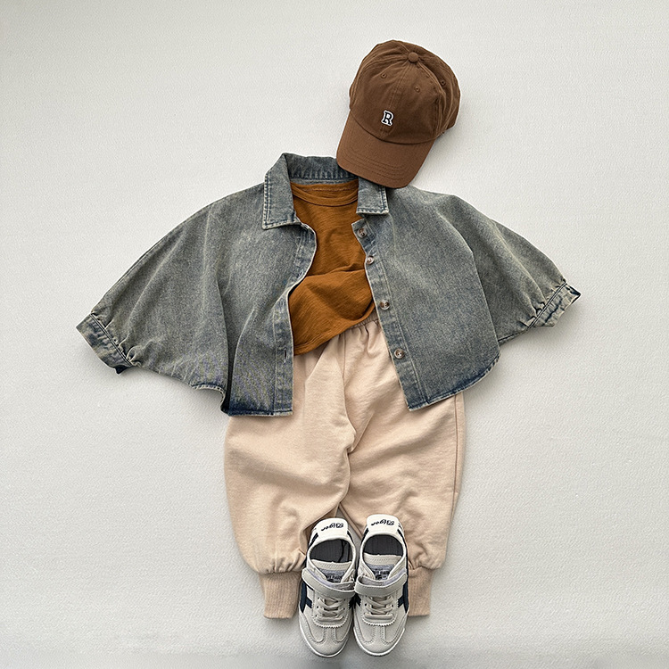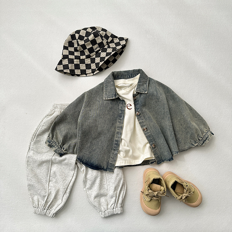 작은 톤 봄과 가을 새로운 어린이 넓은 데님 재킷 소년과 소녀 박쥐 소매 느슨한 데님 재킷 카디건스토어 가기