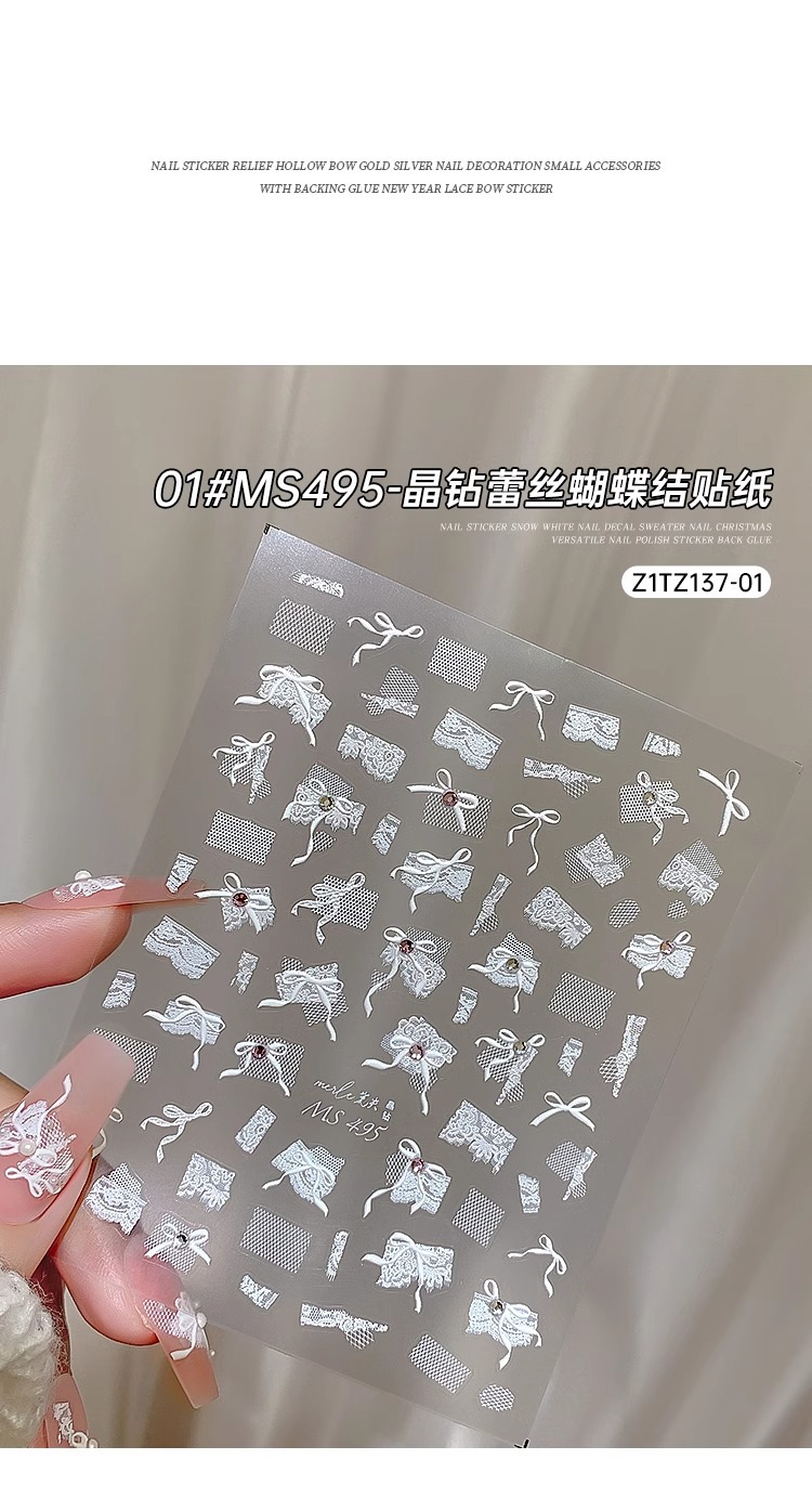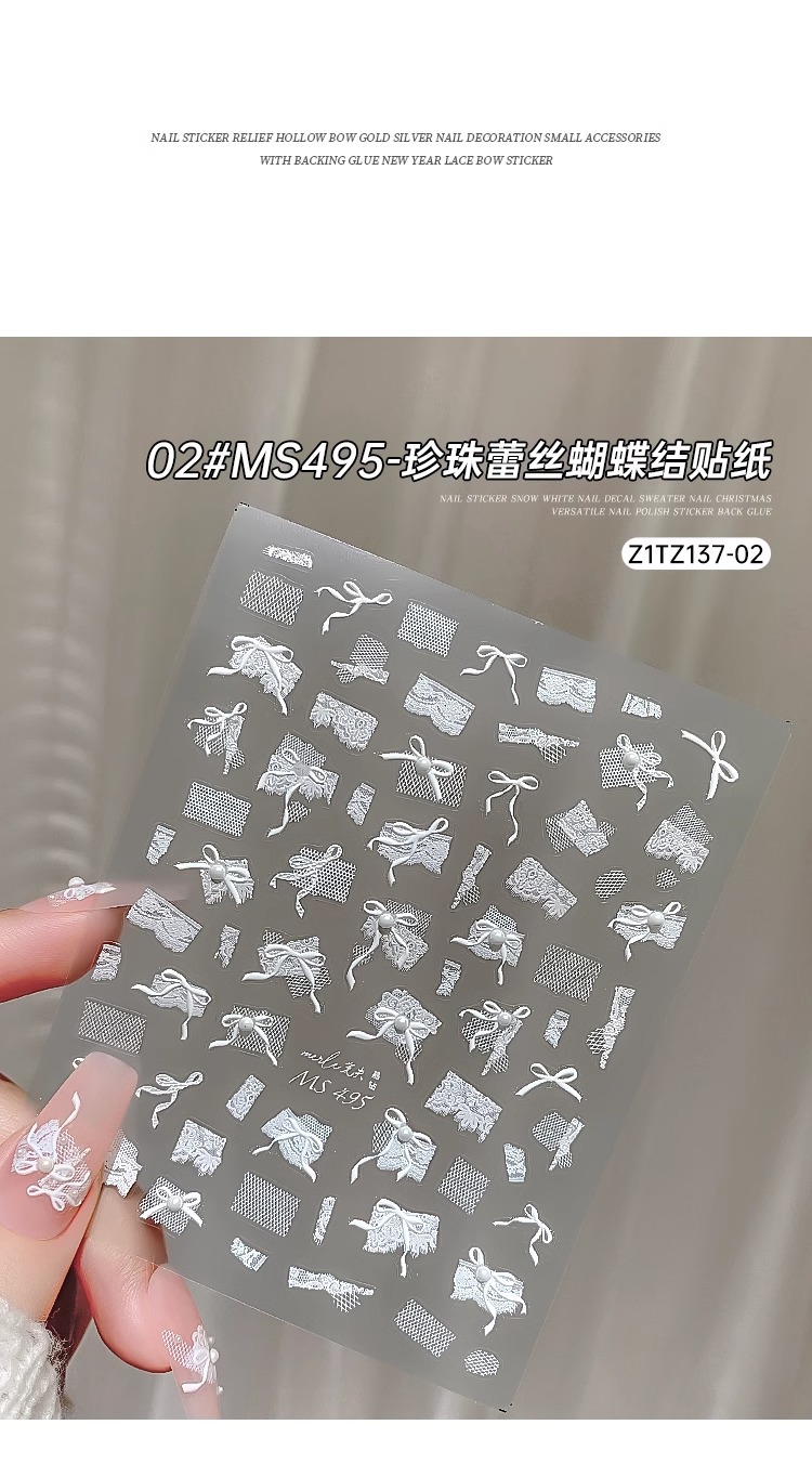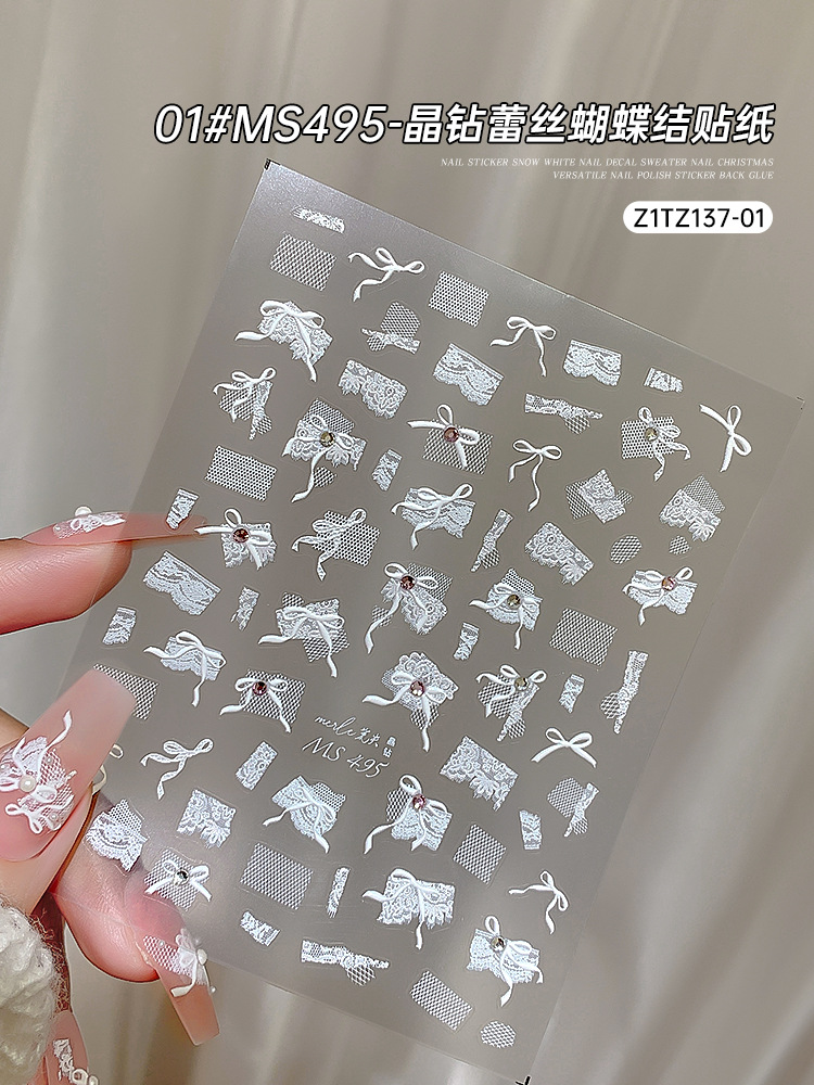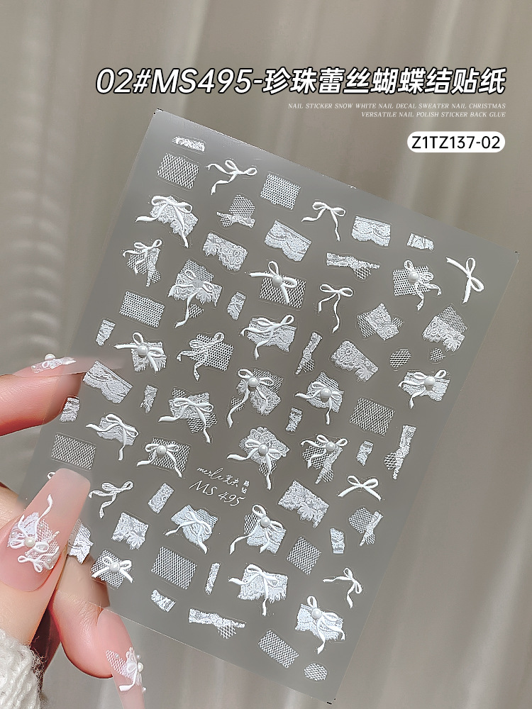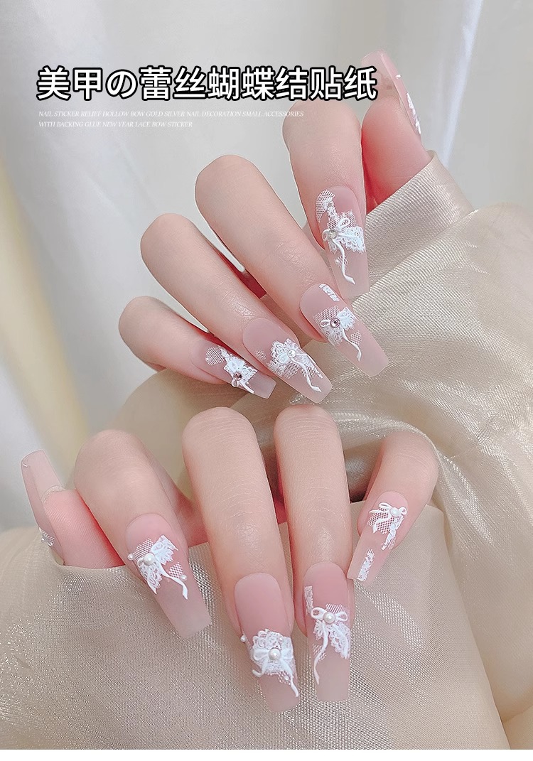 레이스 활 네일 아트 스티커 진주 크리스탈 다이아몬드 화이트 릴리프 접착 일본 3 차원 고급 네일 패치 장식