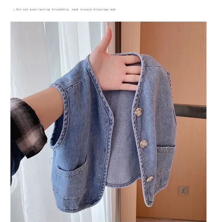 2024 봄과 가을 새로운 어린이 조끼 아기 올 매치 양복 조끼 트렌디 한 올 매치 소년 소녀 데님 조끼 유행스토어 가기