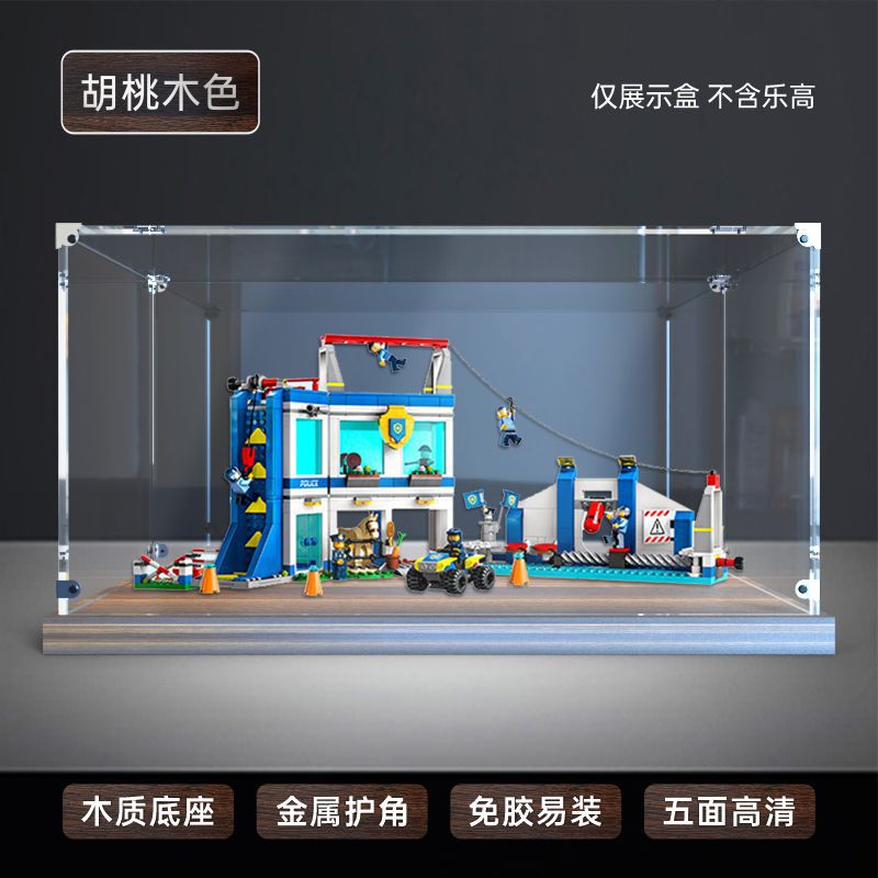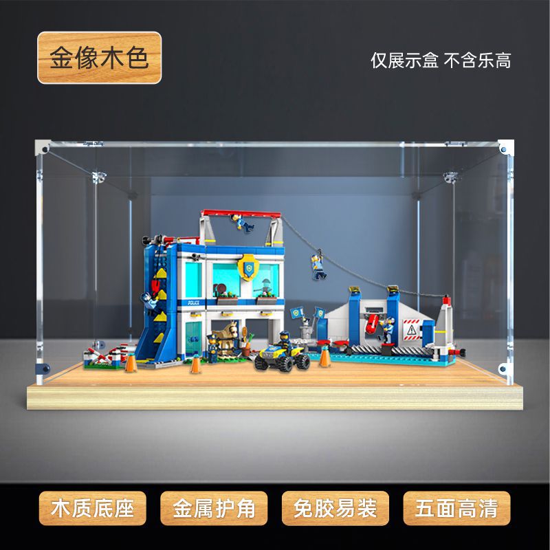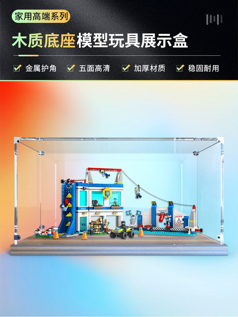 Lego 60372 경찰 훈련 아카데미에 적합한 HD 저장 상자 나무 조립 건물 블록 아크릴 디스플레이 상자