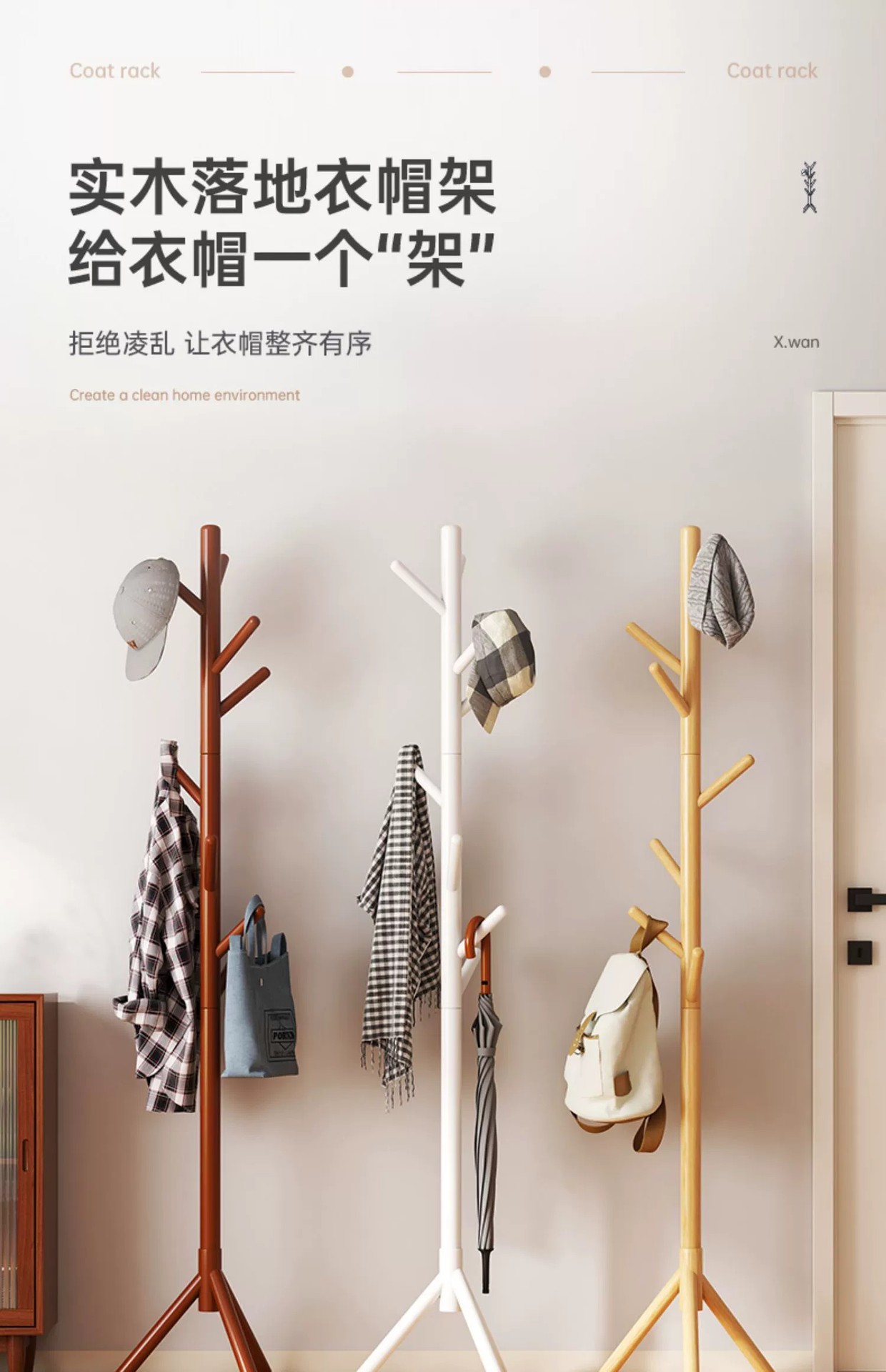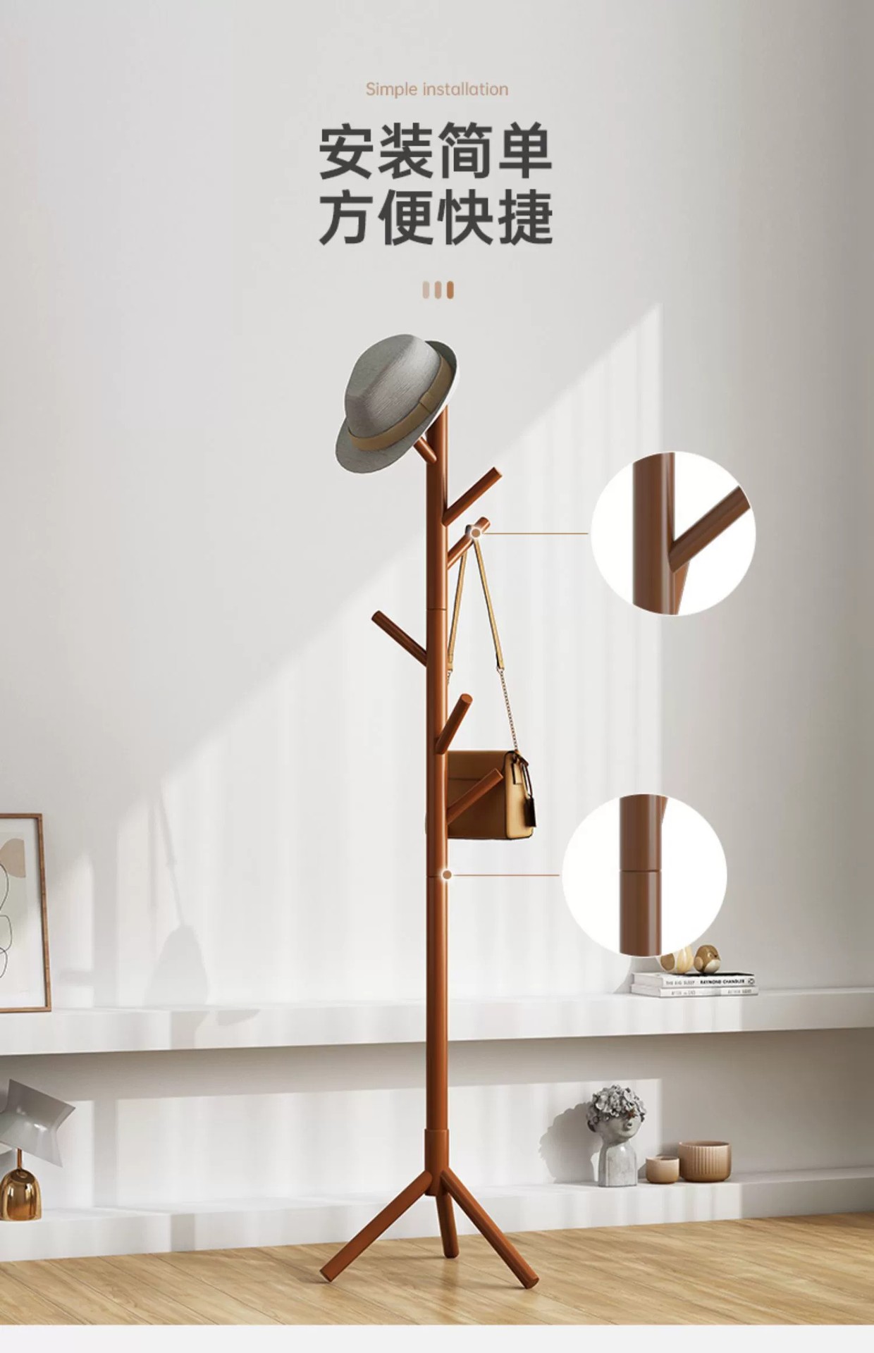 단단한 나무 바닥 옷걸이 가정용 침실 수직 간단한 코트 랙 작은 실내 옷걸이 거실 가방 랙스토어 가기