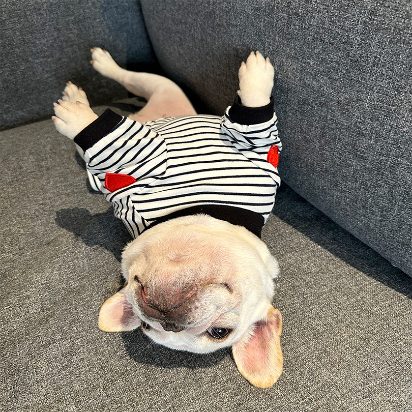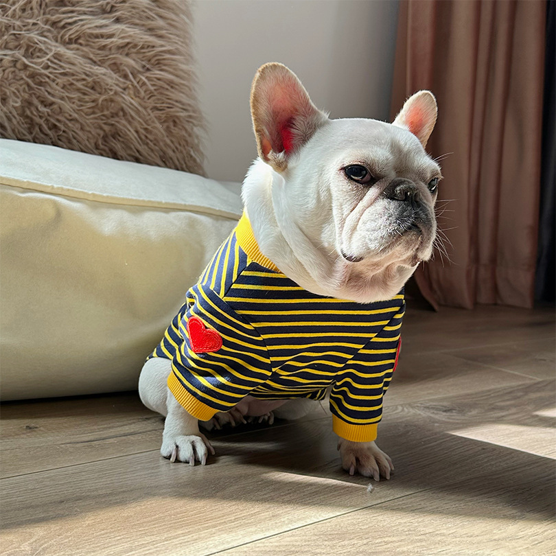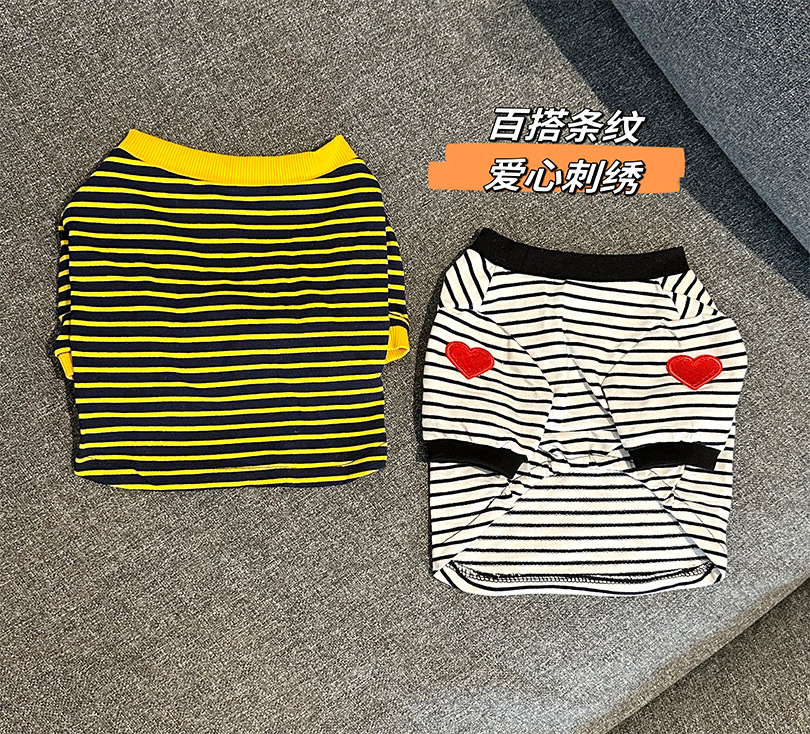 안티 린트 사랑 바닥 셔츠면 암모니아 탄성 줄무늬 사랑 고양이와 개 옷 애완 동물 옷 테디 체나리
