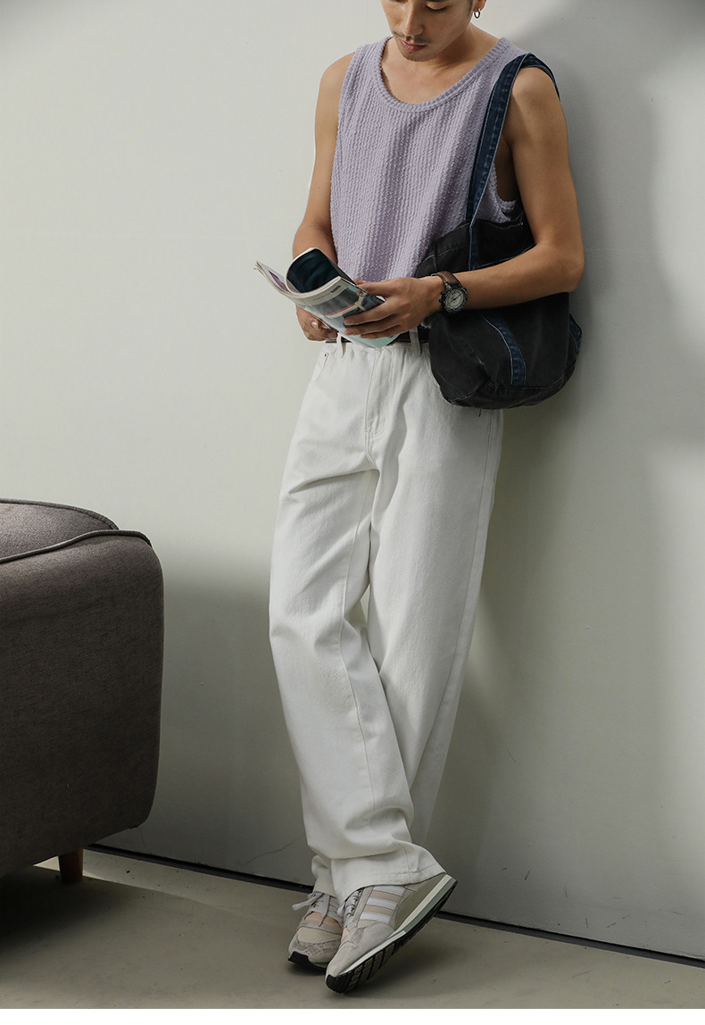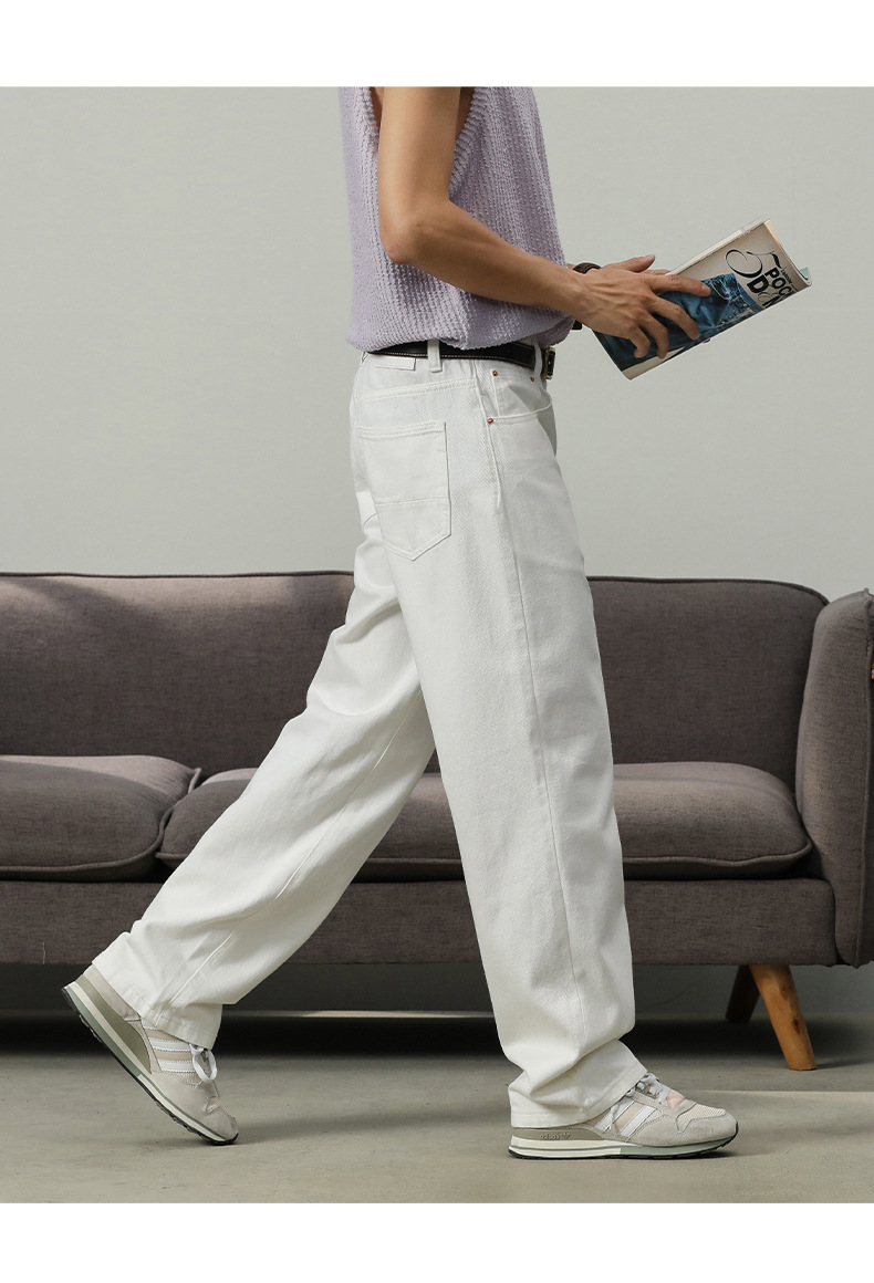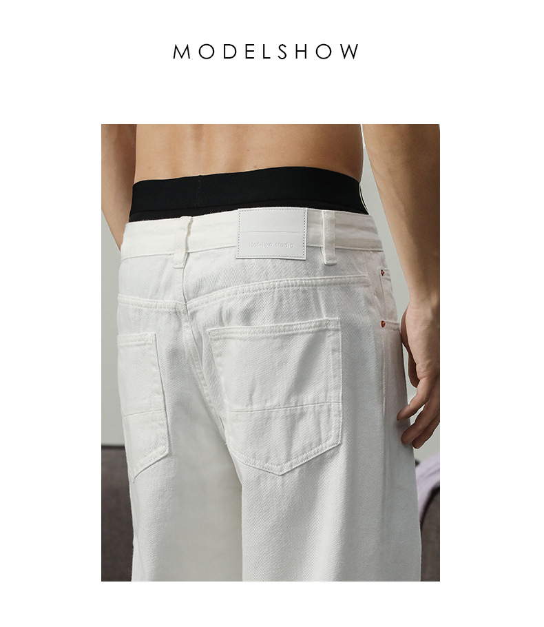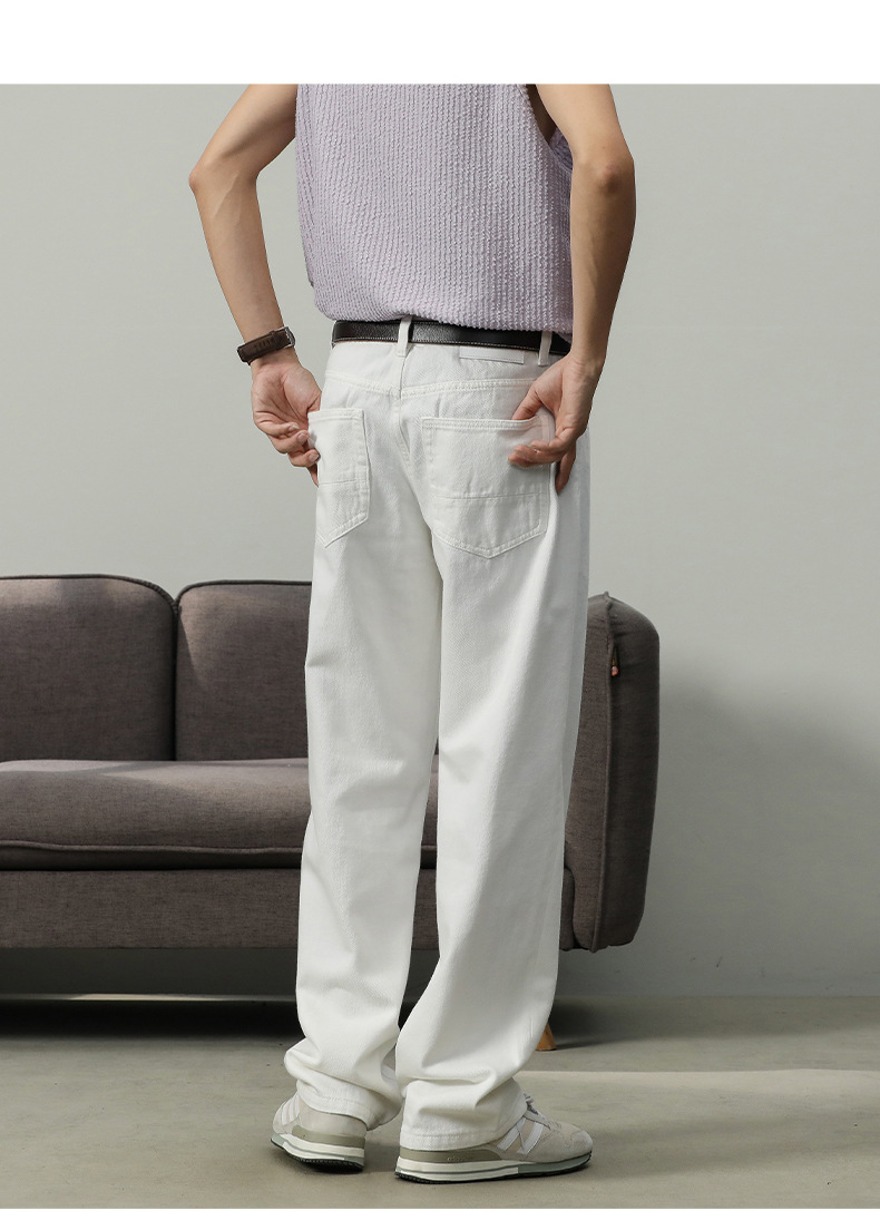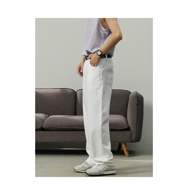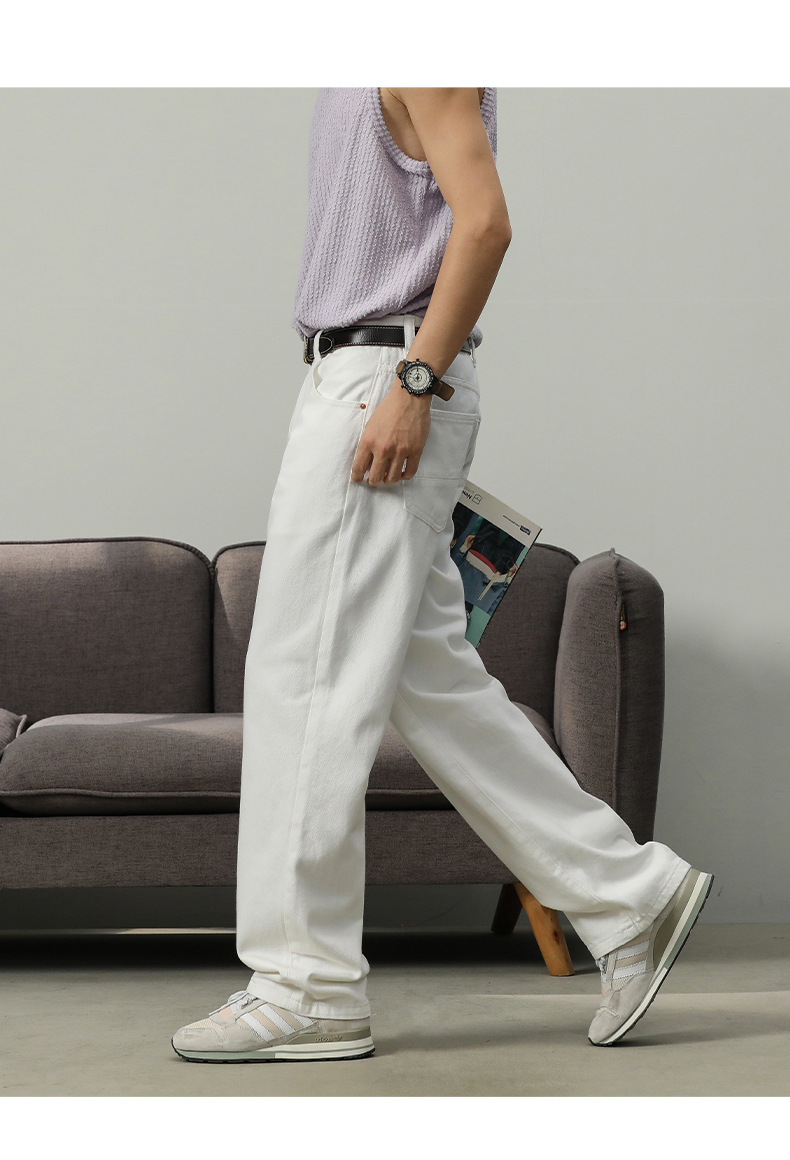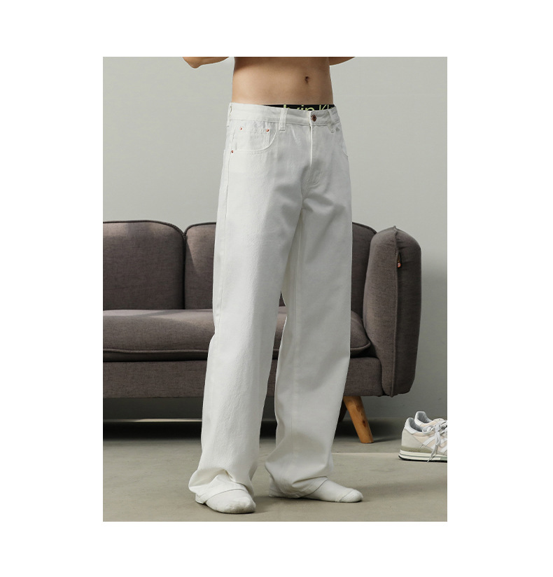 화이트 청바지 남성용 미국 하이 스트리트 패션 브랜드 느슨한 스트레이트 캐주얼 바지 패션 스트리트 패션 바지 남성스토어 가기