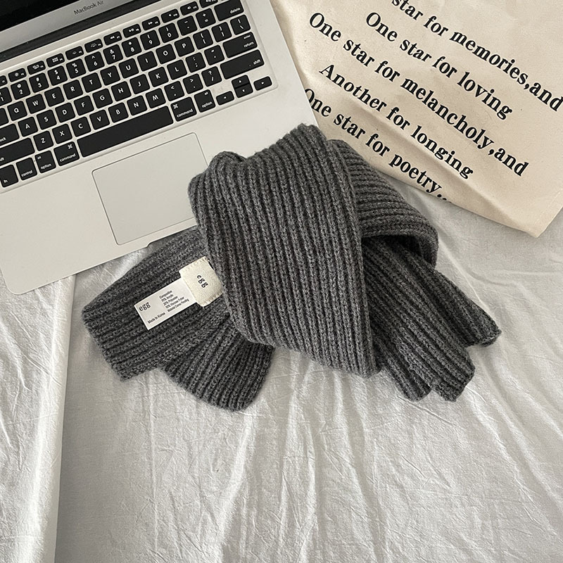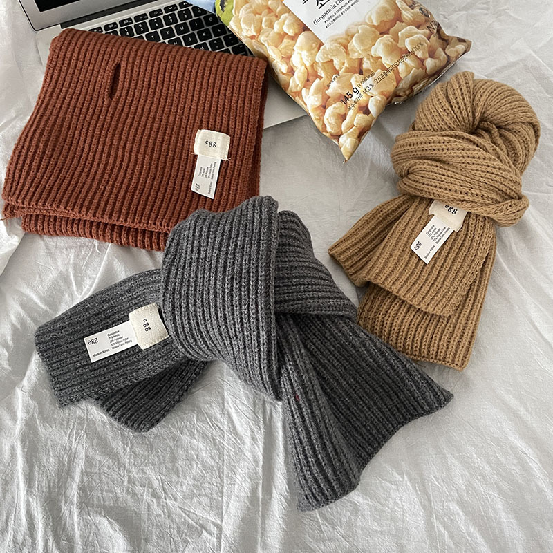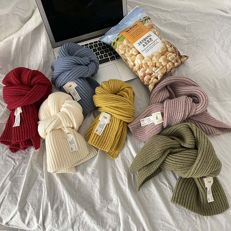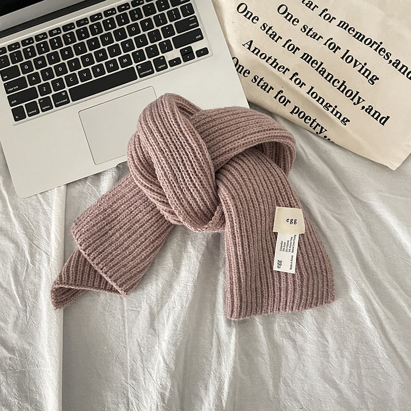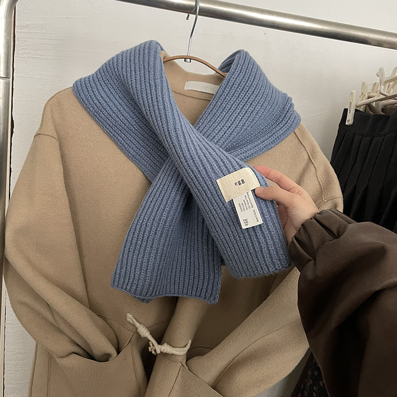 한국 스타일 우아한 간단한 계란 크로스 구멍 단색 작은 스카프 연령 감소 짧은 따뜻한 흰색 캐주얼 스카프스토어 가기