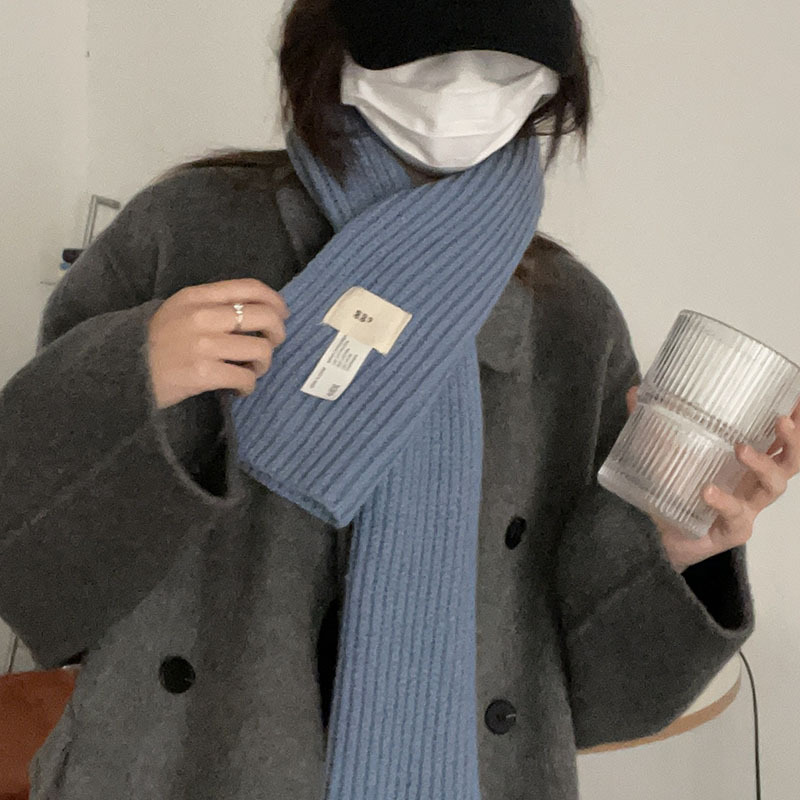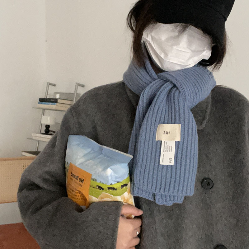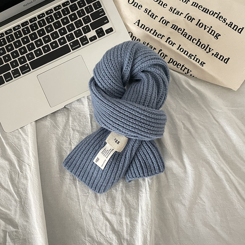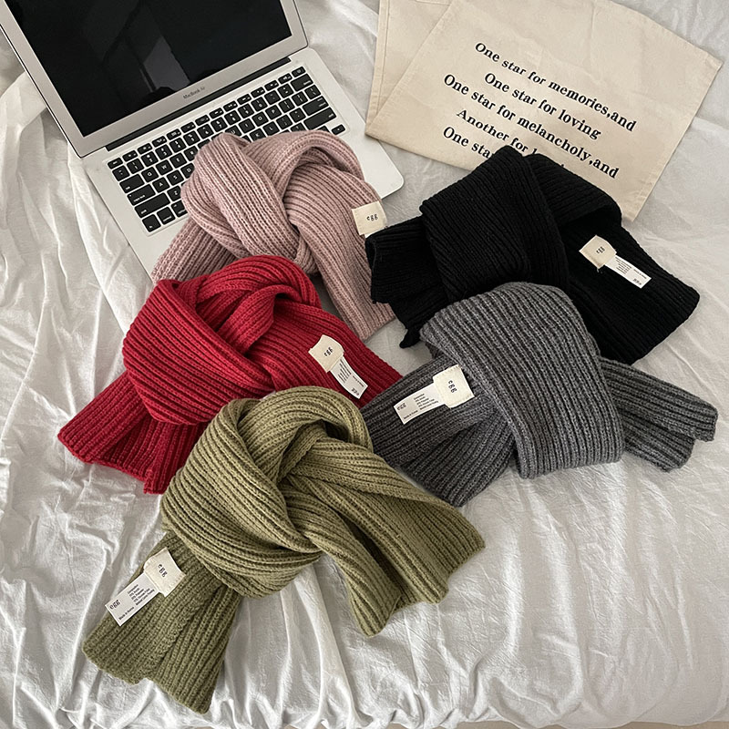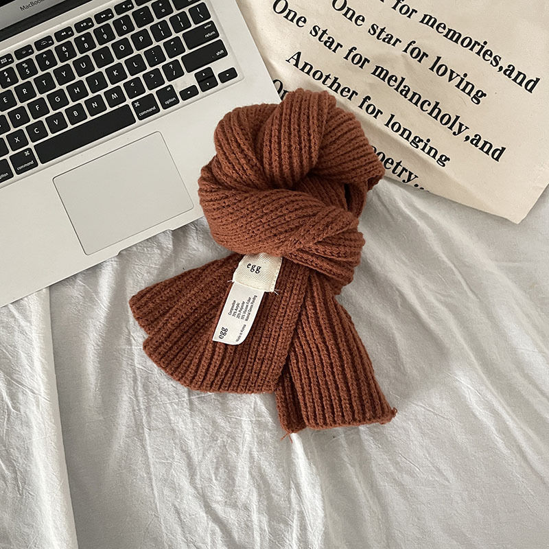 한국 스타일 우아한 간단한 계란 크로스 구멍 단색 작은 스카프 연령 감소 짧은 따뜻한 흰색 캐주얼 스카프스토어 가기