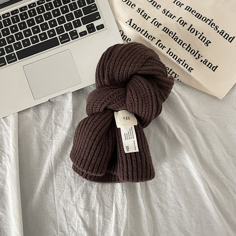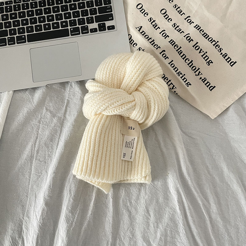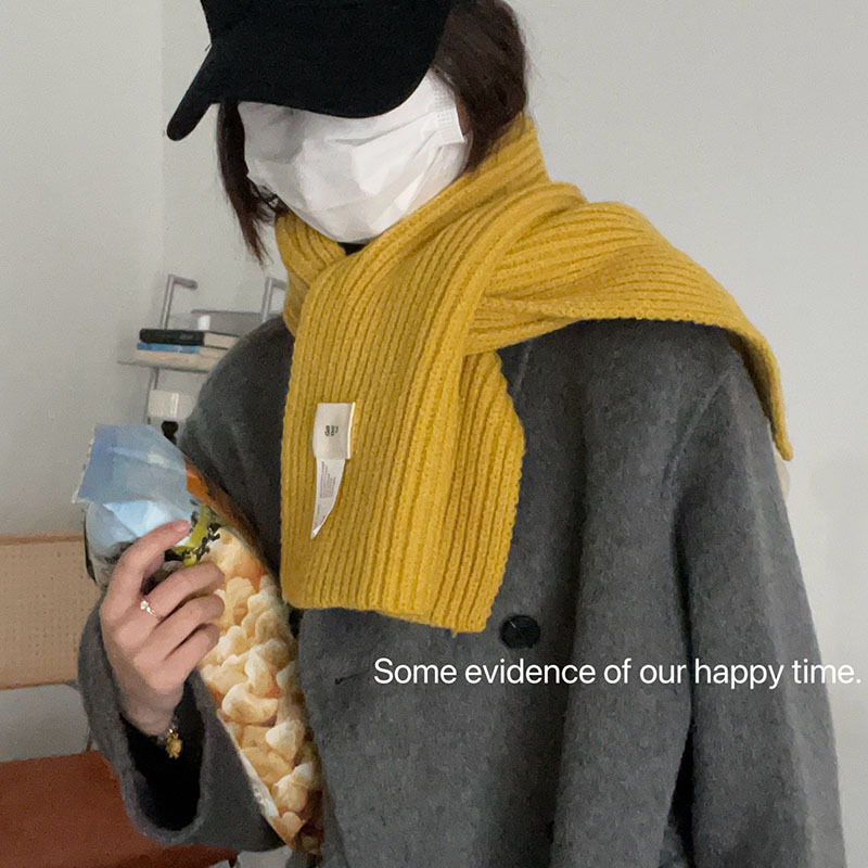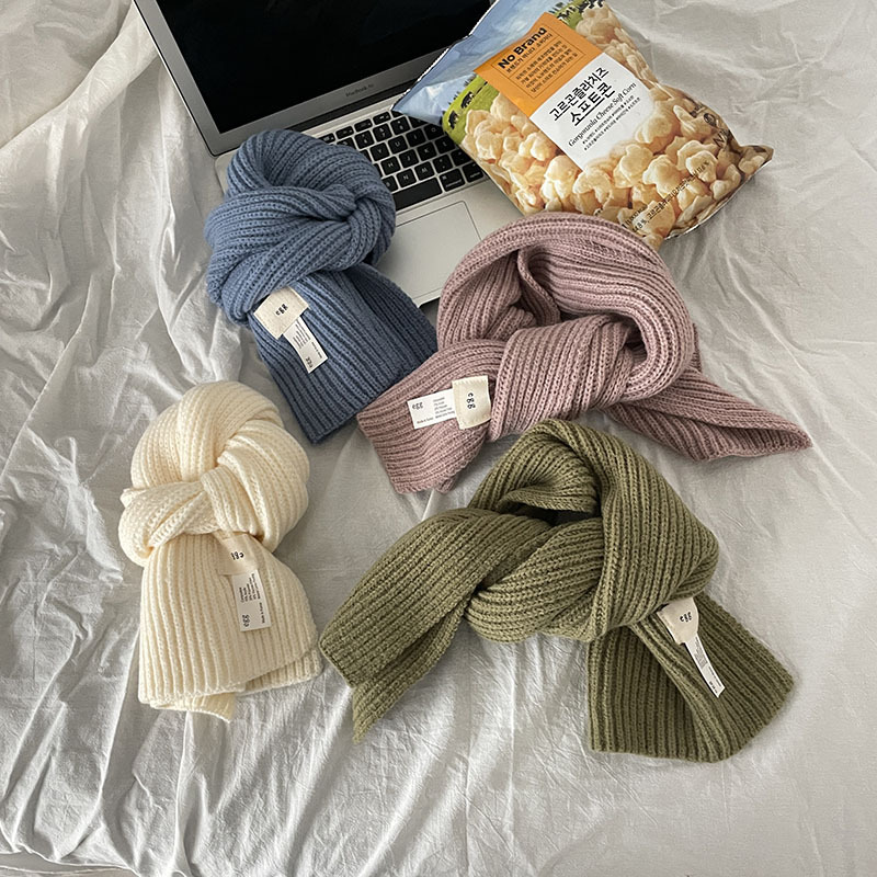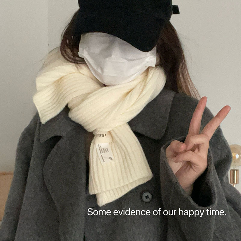 한국 스타일 우아한 간단한 계란 크로스 구멍 단색 작은 스카프 연령 감소 짧은 따뜻한 흰색 캐주얼 스카프