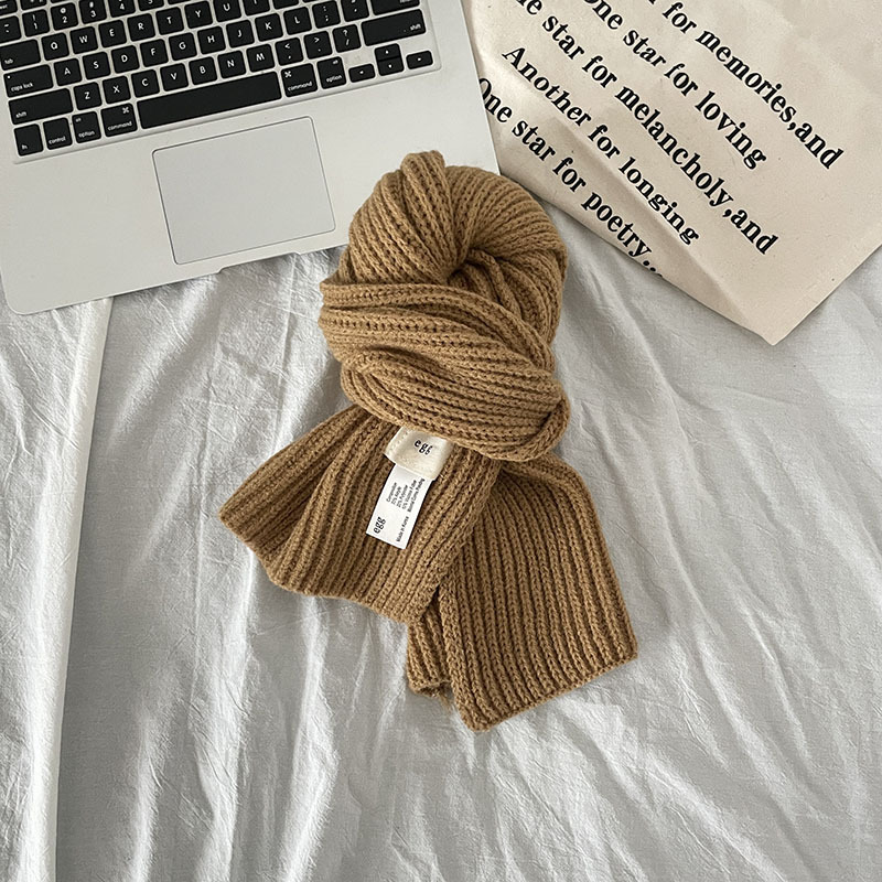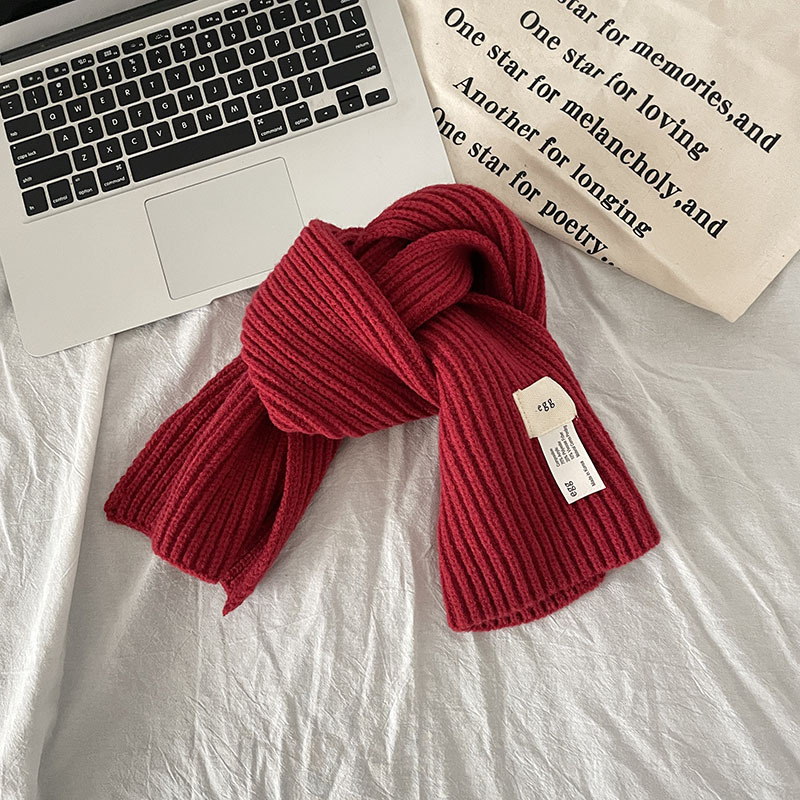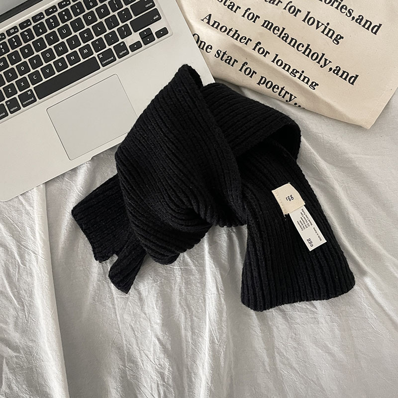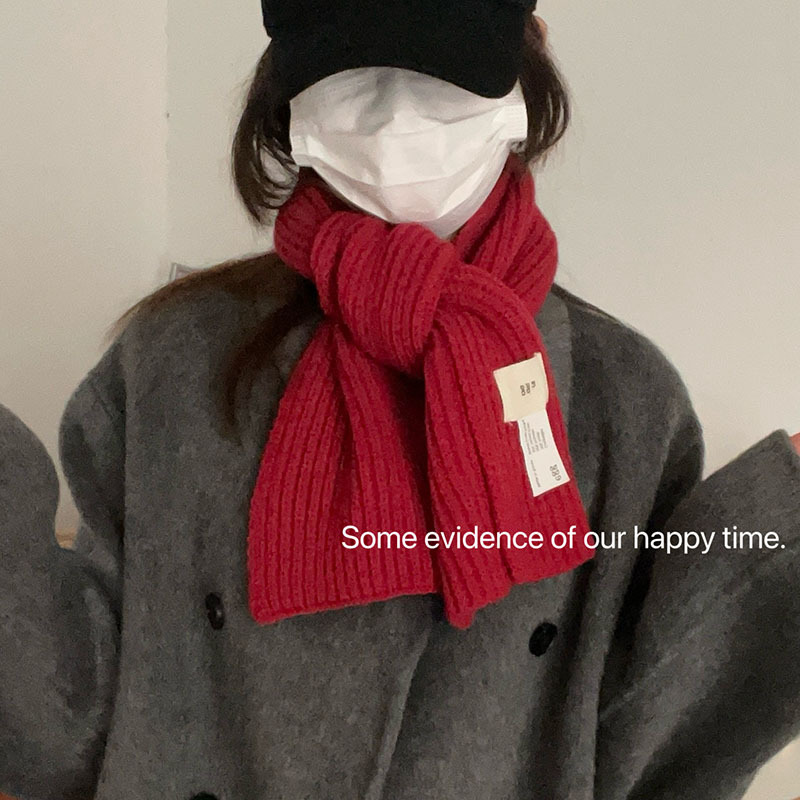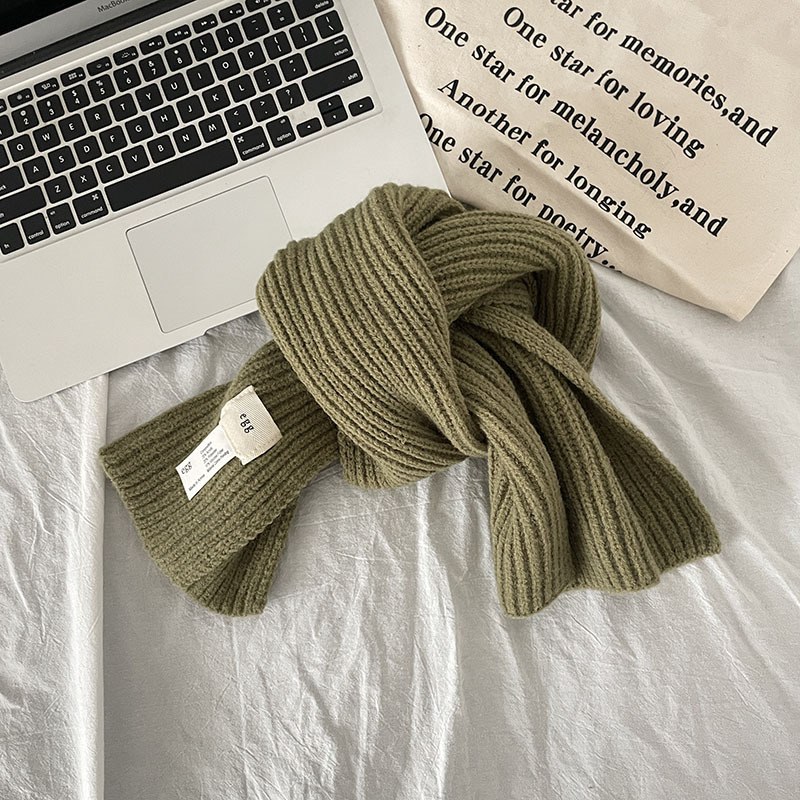 한국 스타일 우아한 간단한 계란 크로스 구멍 단색 작은 스카프 연령 감소 짧은 따뜻한 흰색 캐주얼 스카프