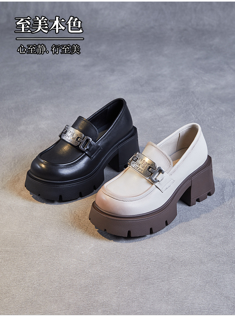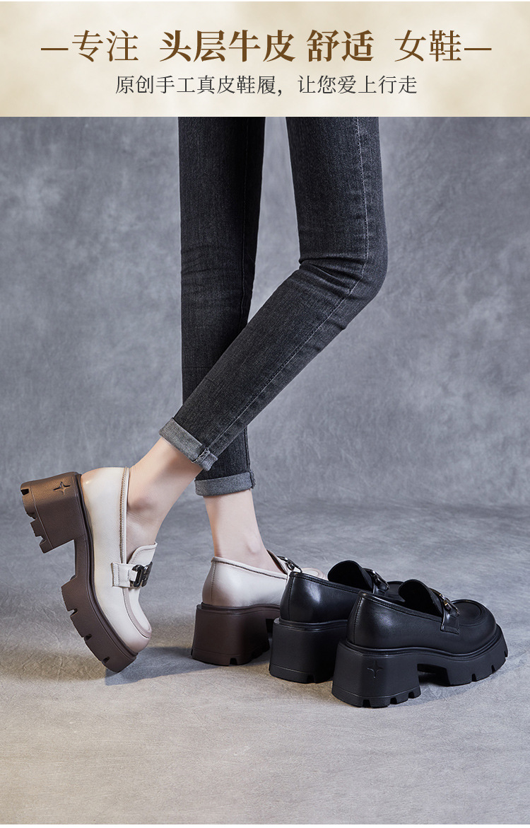 높이 증가 플랫폼 로퍼 2024 봄 새로운 두꺼운 하이힐 정품 가죽 영국 작은 가죽 신발 금속 버클 캐주얼 신발스토어 가기