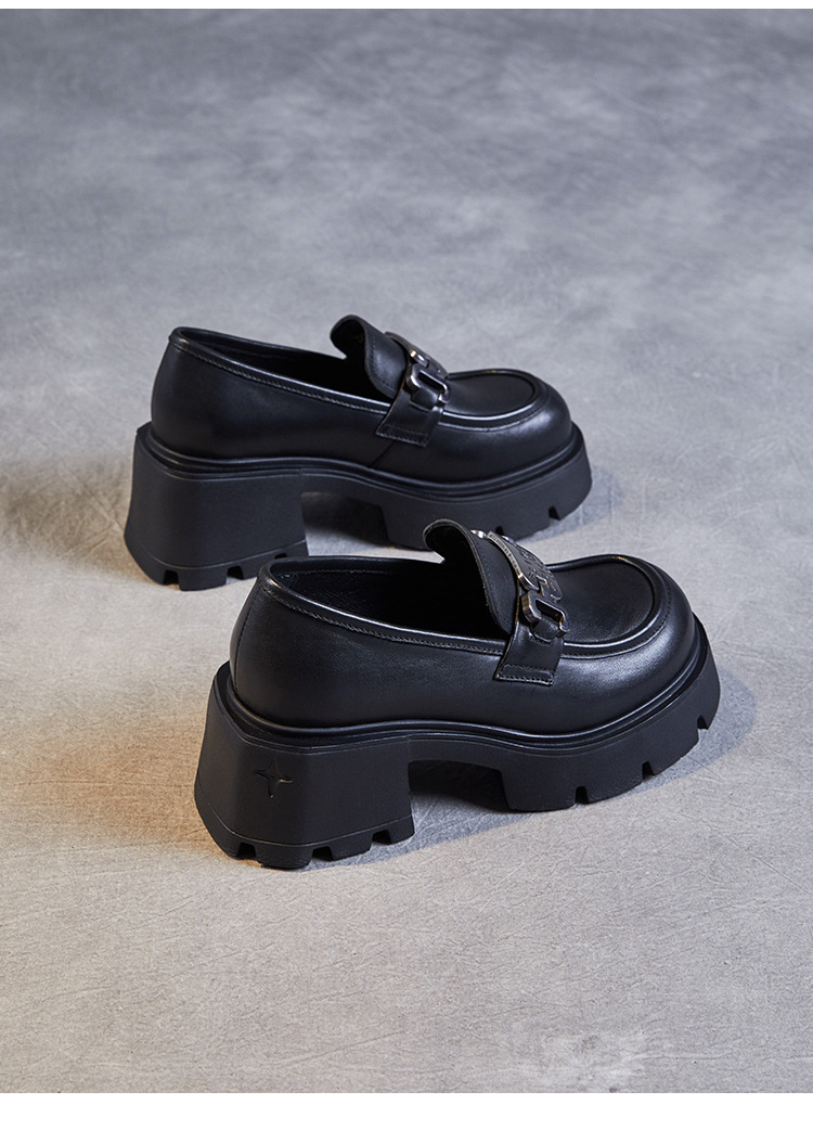 높이 증가 플랫폼 로퍼 2024 봄 새로운 두꺼운 하이힐 정품 가죽 영국 작은 가죽 신발 금속 버클 캐주얼 신발