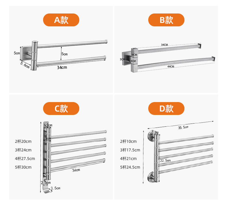회전 수건 랙 304 스테인레스 스틸 욕실 보관 랙 욕실 수건 랙 홀더 비 천공 수건 바스토어 가기