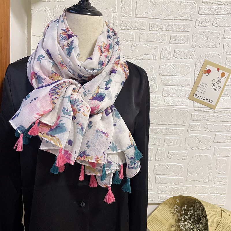 2024 이른 봄 새로운 토템 민족 스타일 여행 안티 DDoS 코튼 및 린넨 프린트 숄로 올 매치 실크 스카프 여성용 스카프