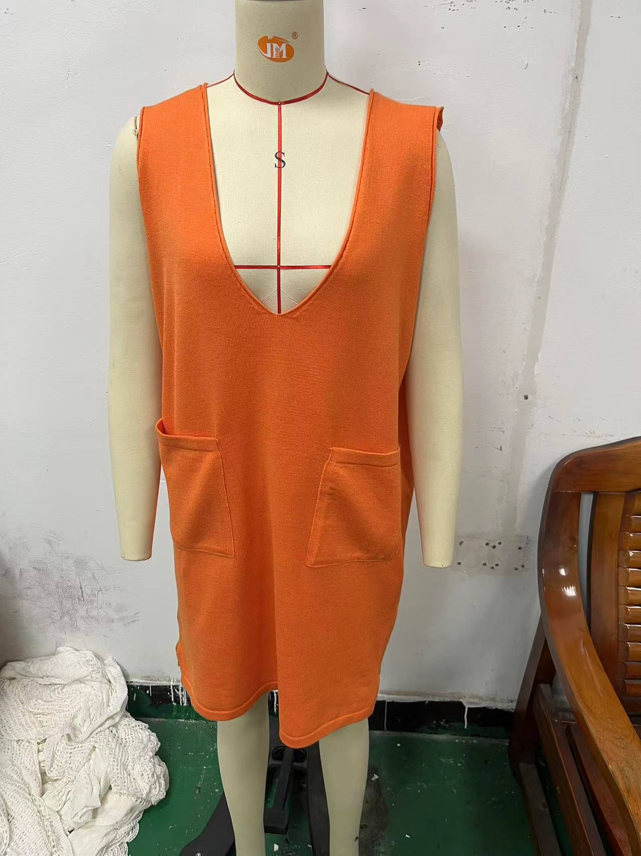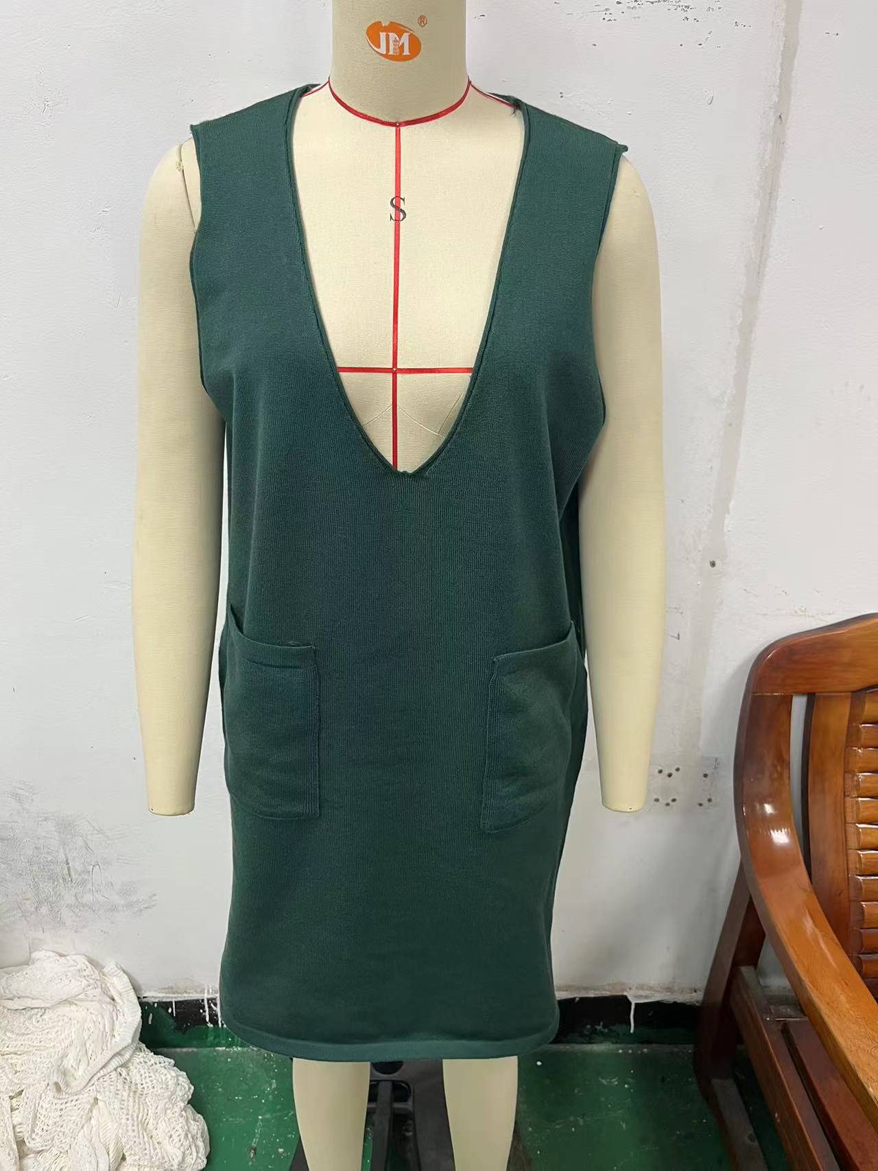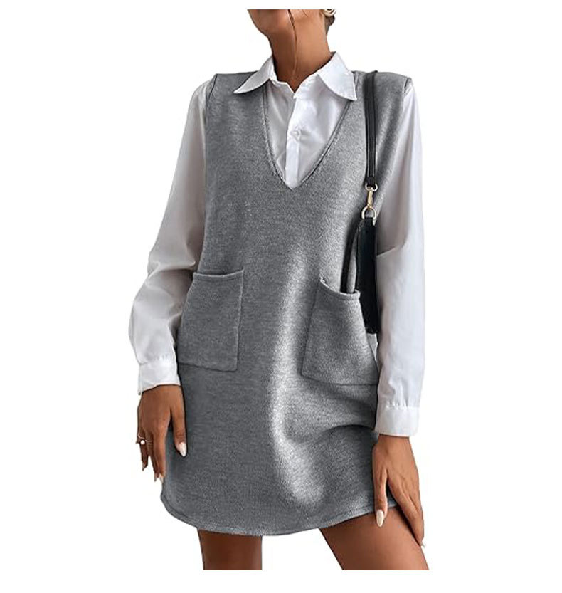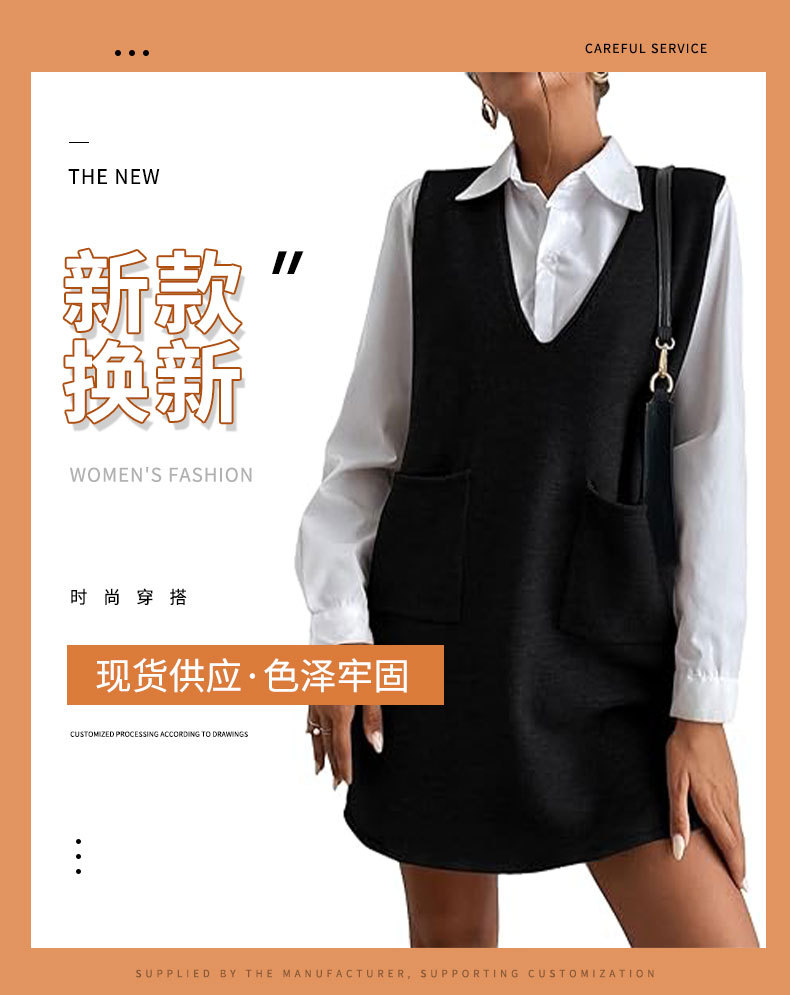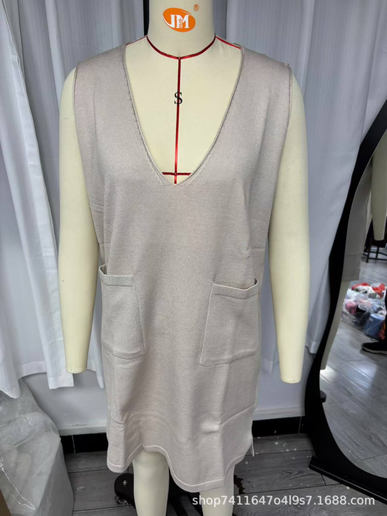 2024 유럽과 미국의 조끼 치마 울 중간 길이의 양면 조끼 조끼 스커트 스커트 한국식 단색 민소매 올 매칭 원피스