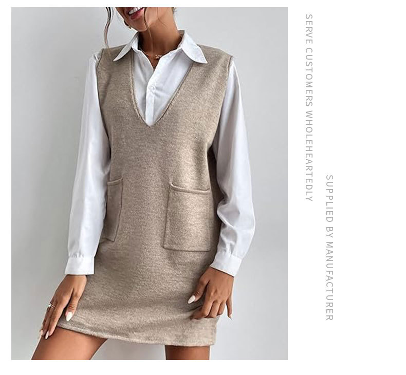 2024 유럽과 미국의 조끼 치마 울 중간 길이의 양면 조끼 조끼 스커트 스커트 한국식 단색 민소매 올 매칭 원피스스토어 가기