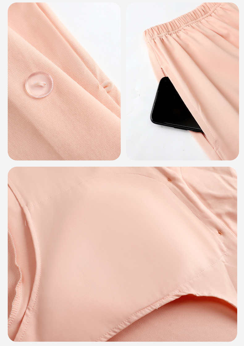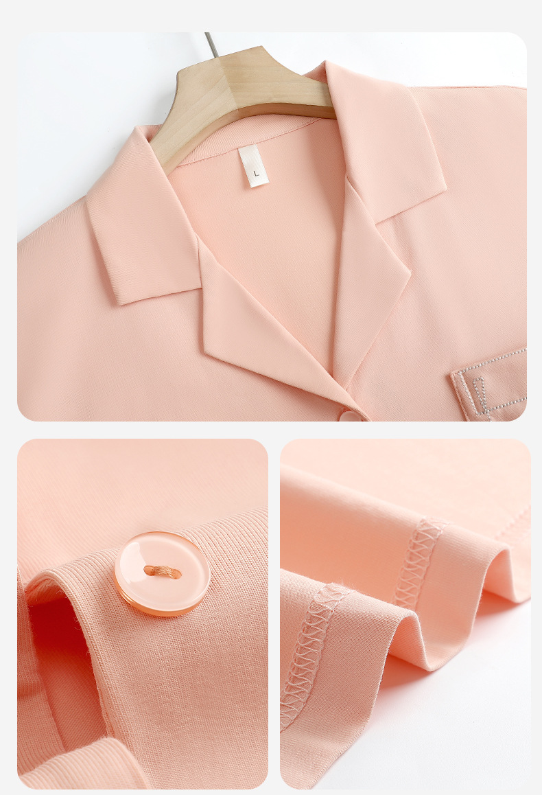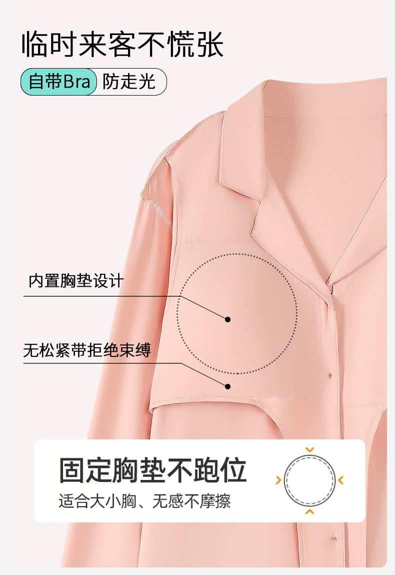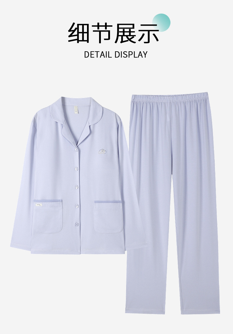 가슴 패드가 달린 여성 잠옷 봄과 가을면 긴팔 바지 옷깃 카디건 2024 새로운 야외 홈웨어 세트스토어 가기