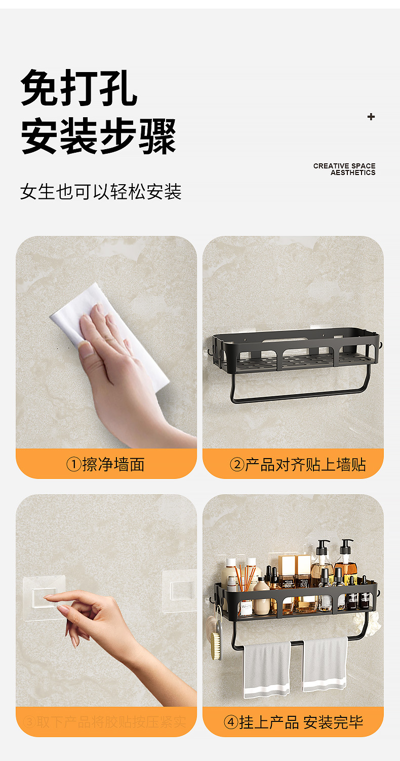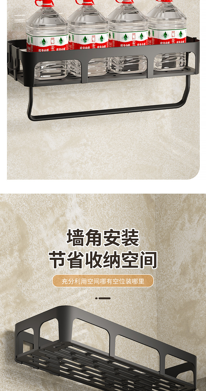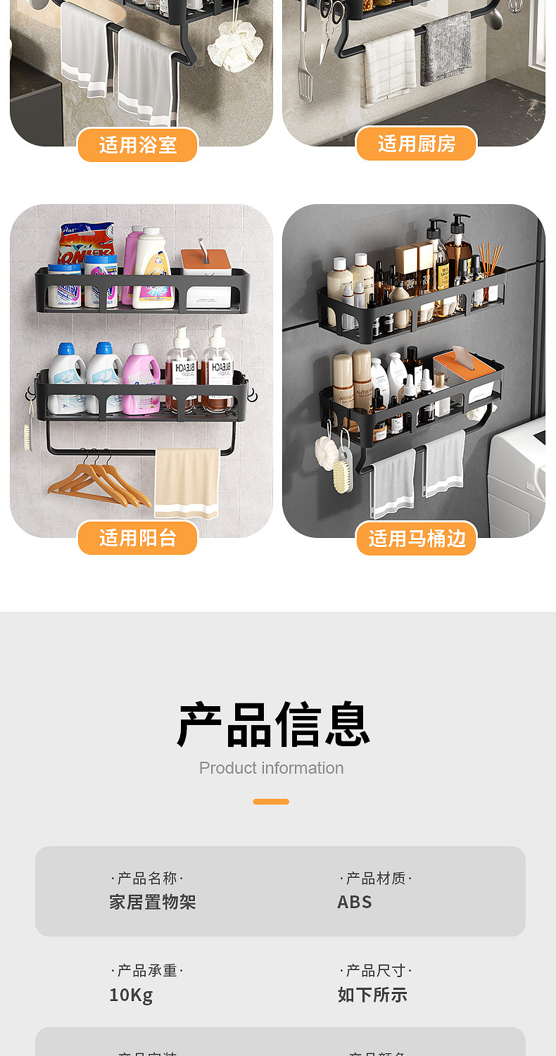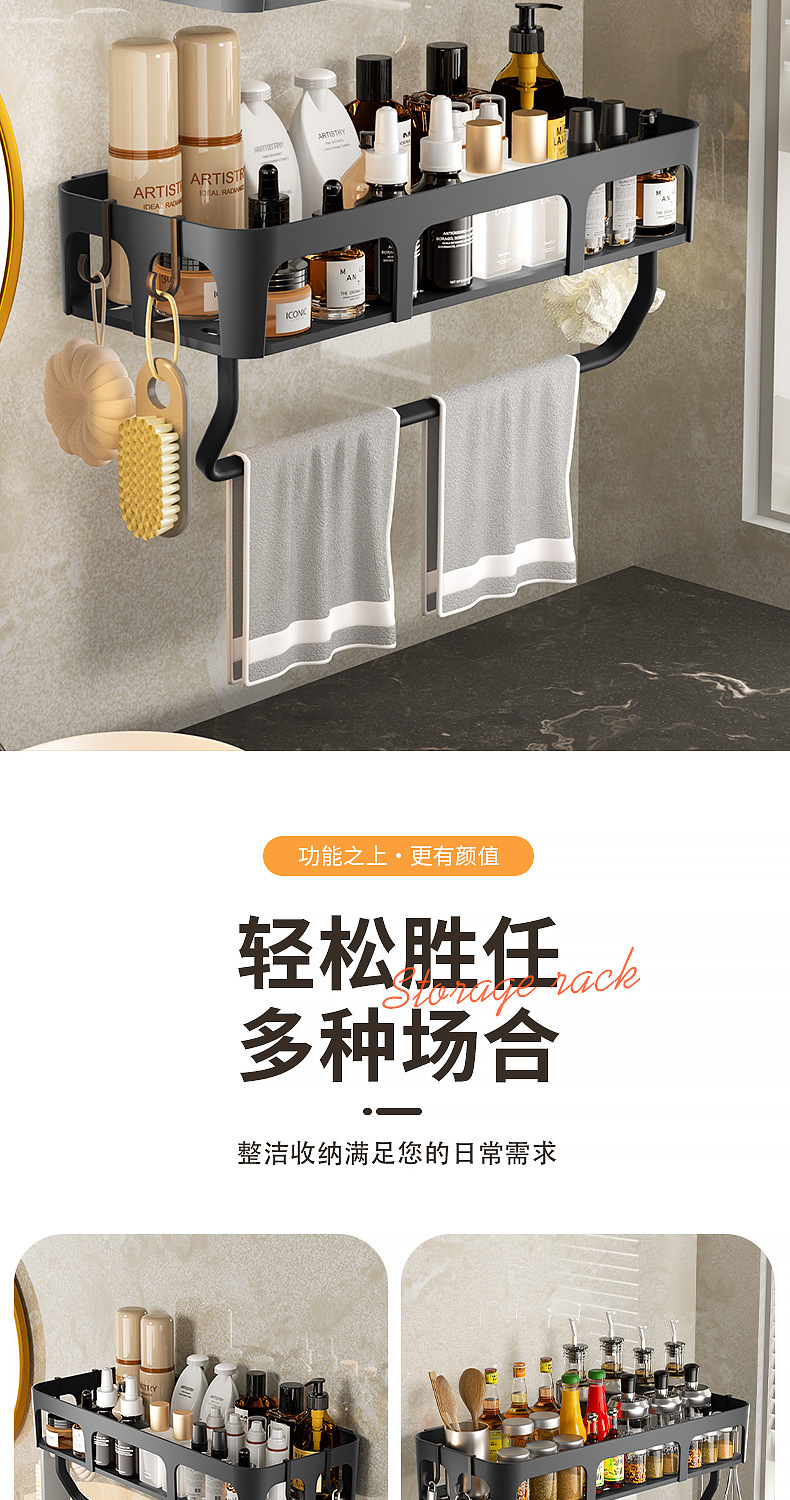 • 블랙 [박스세트] 수납선반 + 수건걸이 + 후크