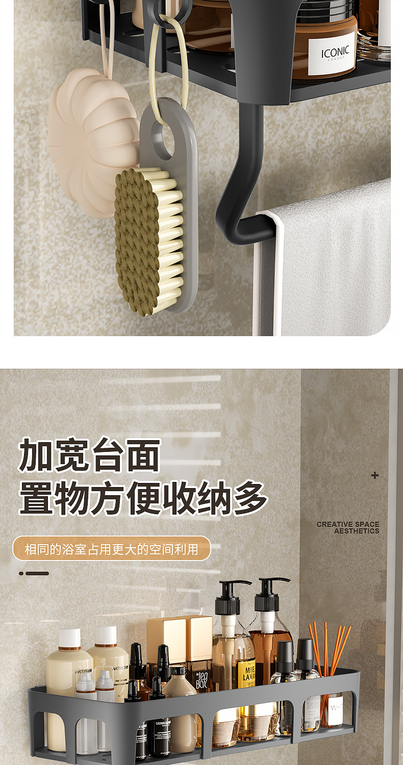 • 건그레이 [박스세트] 수납선반 + 수건걸이 + 후크