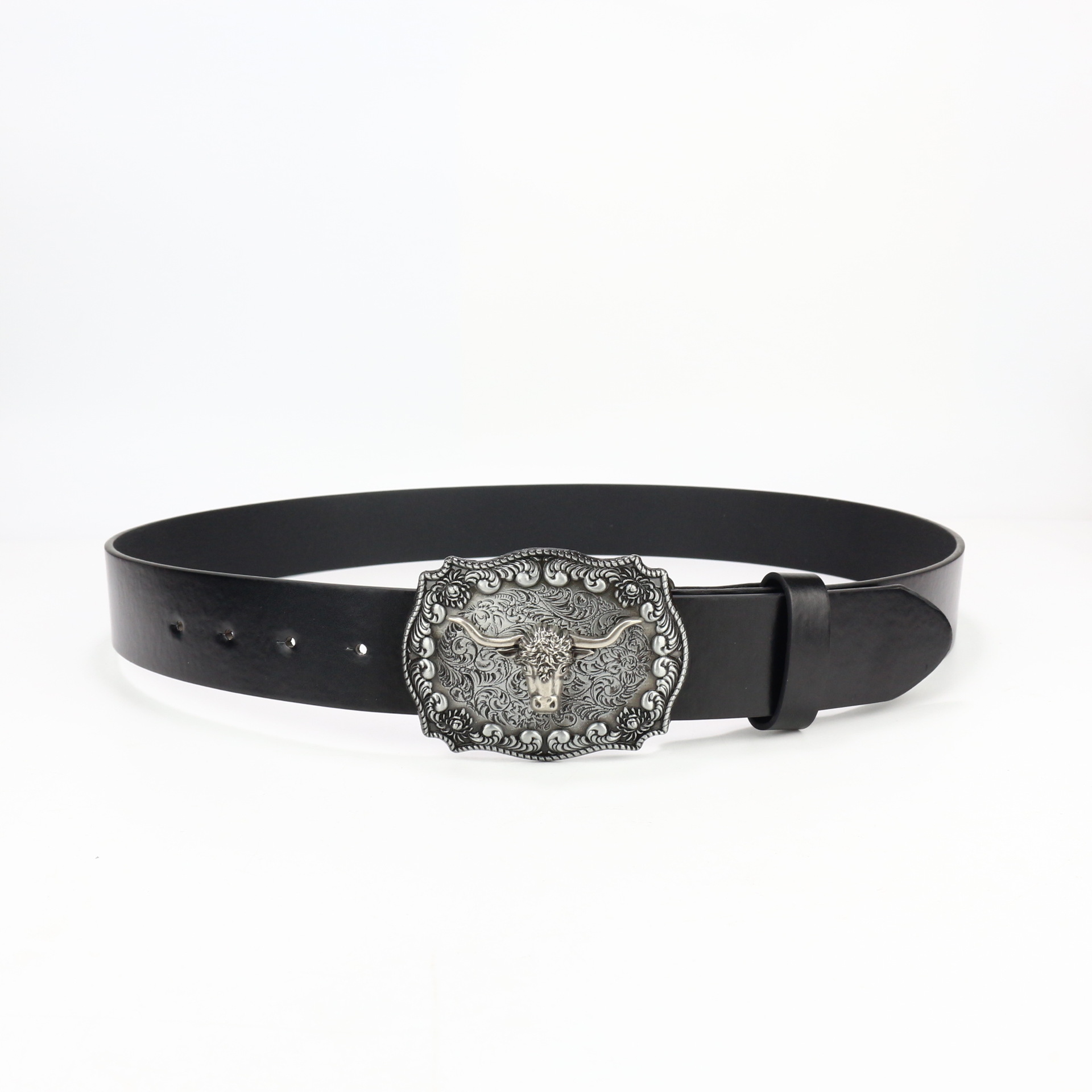 국경 간 서부 데님 벨트 실버 소 머리 대형 플레이트 입 복고풍 남성과 여성의 양각 Pu 틈새 펑크 가죽 벨트