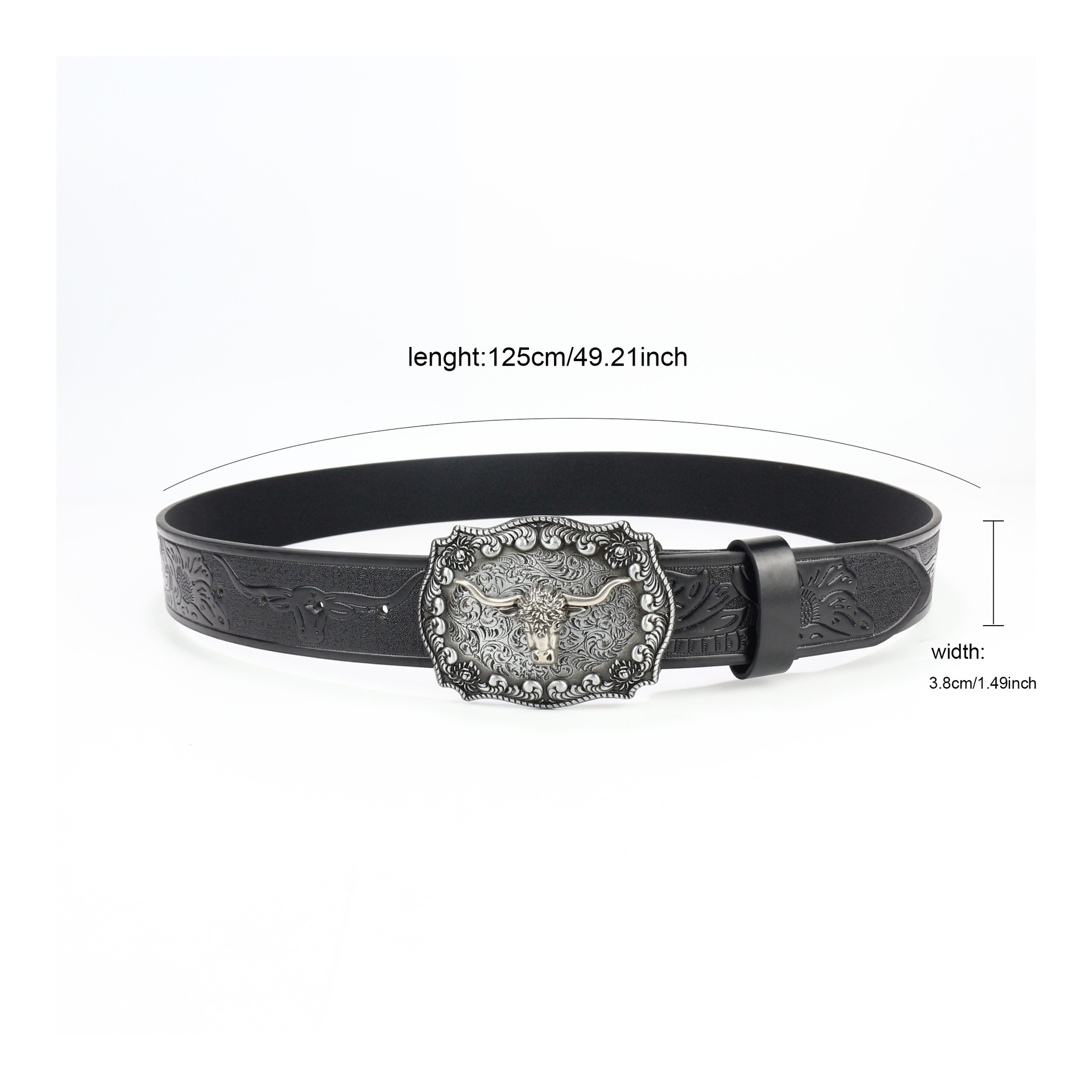 국경 간 서부 데님 벨트 실버 소 머리 대형 플레이트 입 복고풍 남성과 여성의 양각 Pu 틈새 펑크 가죽 벨트스토어 가기