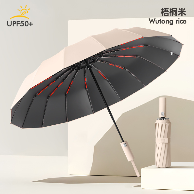 • 24 뼈 자동 검은 접착제 우산-Sycamore 쌀