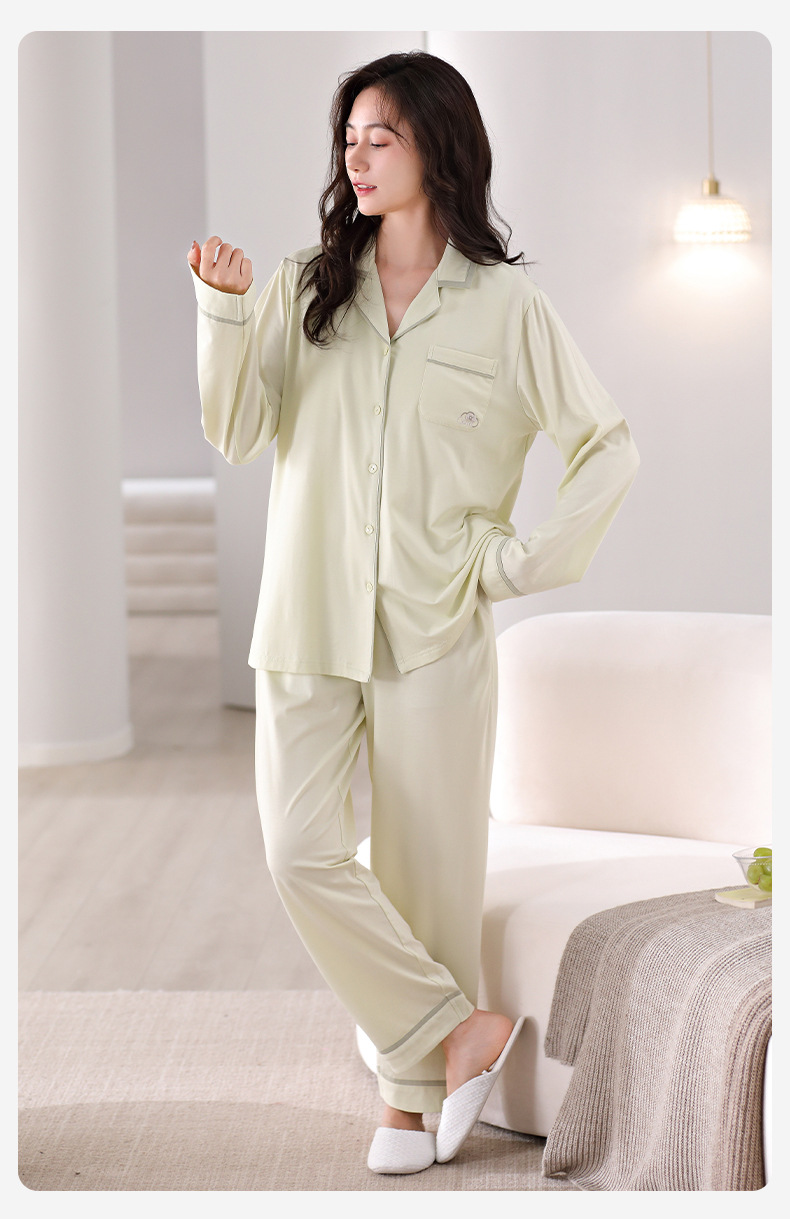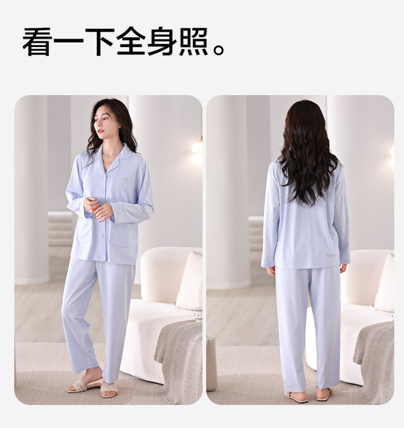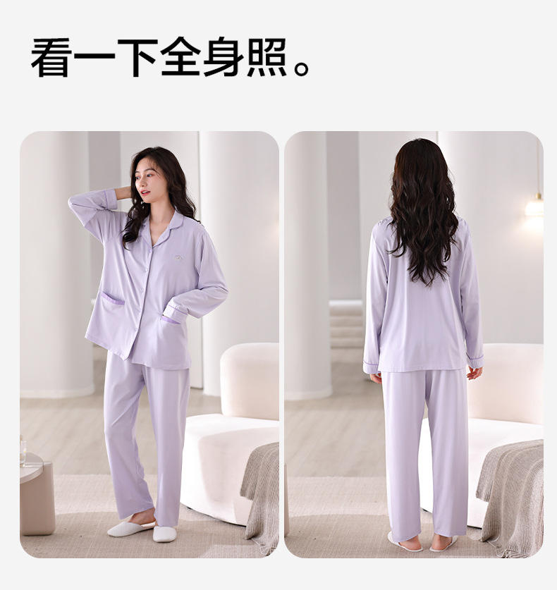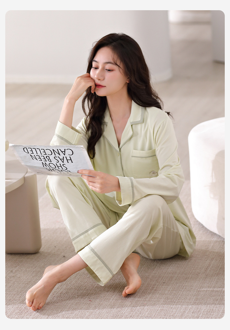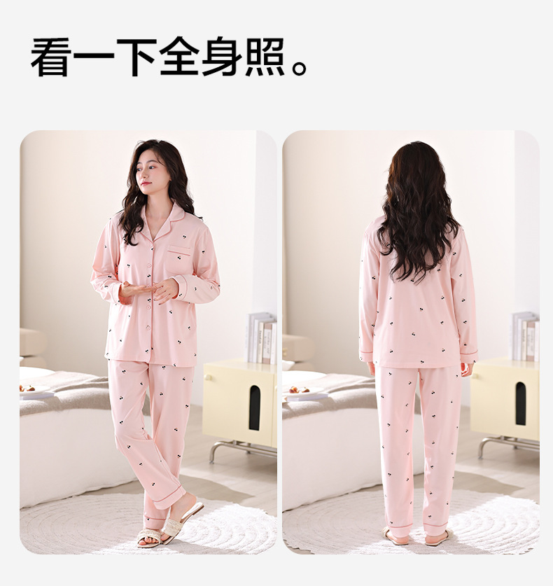 파자마 여성의 봄과 가을 면화 긴팔 가을 카디건은 가슴 패드 홈웨어 세트 2024 착용 할 수 있습니다.스토어 가기