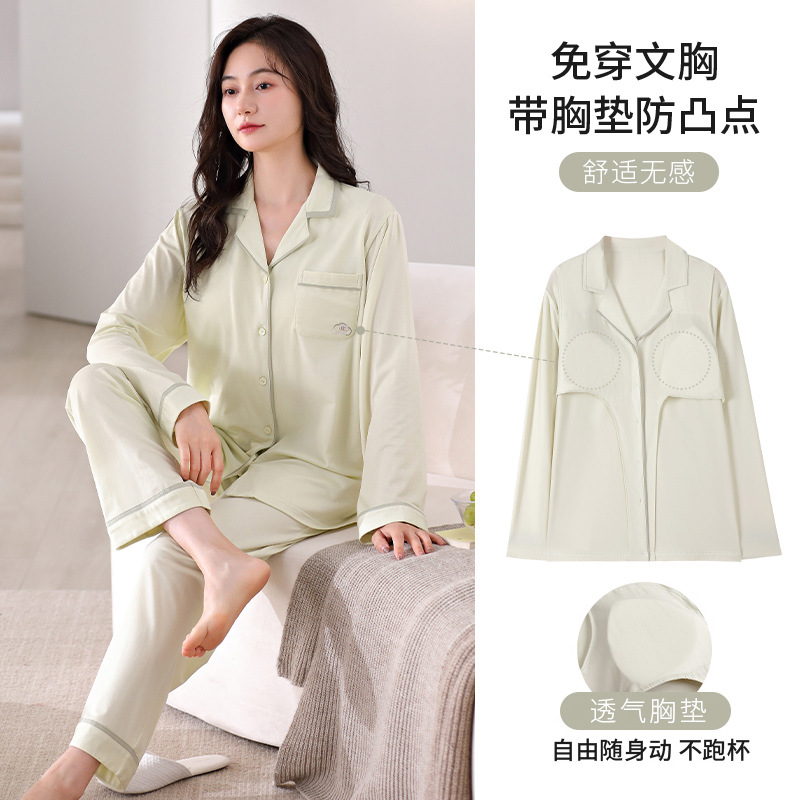 파자마 여성의 봄과 가을 면화 긴팔 가을 카디건은 가슴 패드 홈웨어 세트 2024 착용 할 수 있습니다.